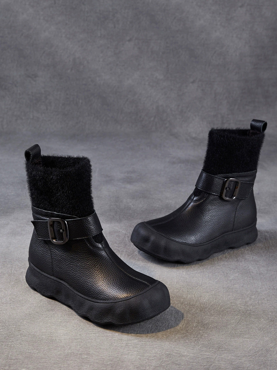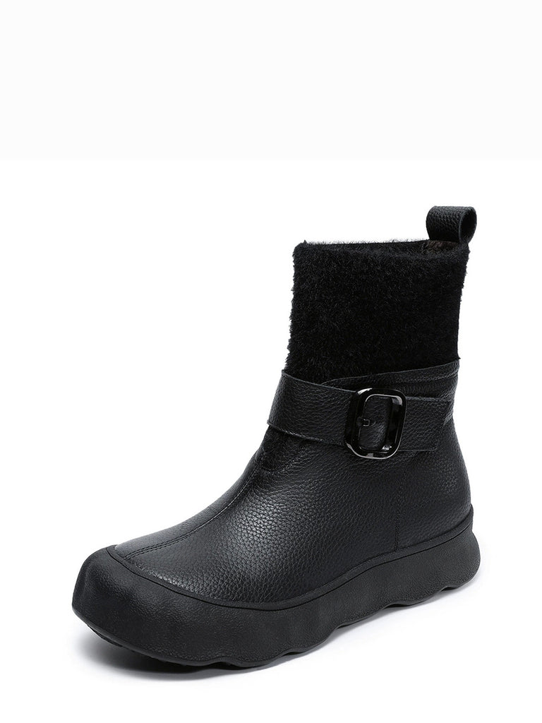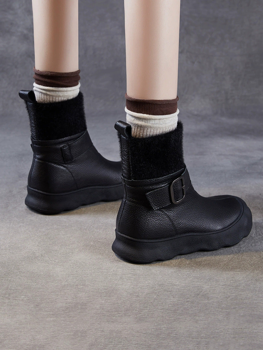 Women Winter Genuine Leather Spliced Fleece-lined Boots