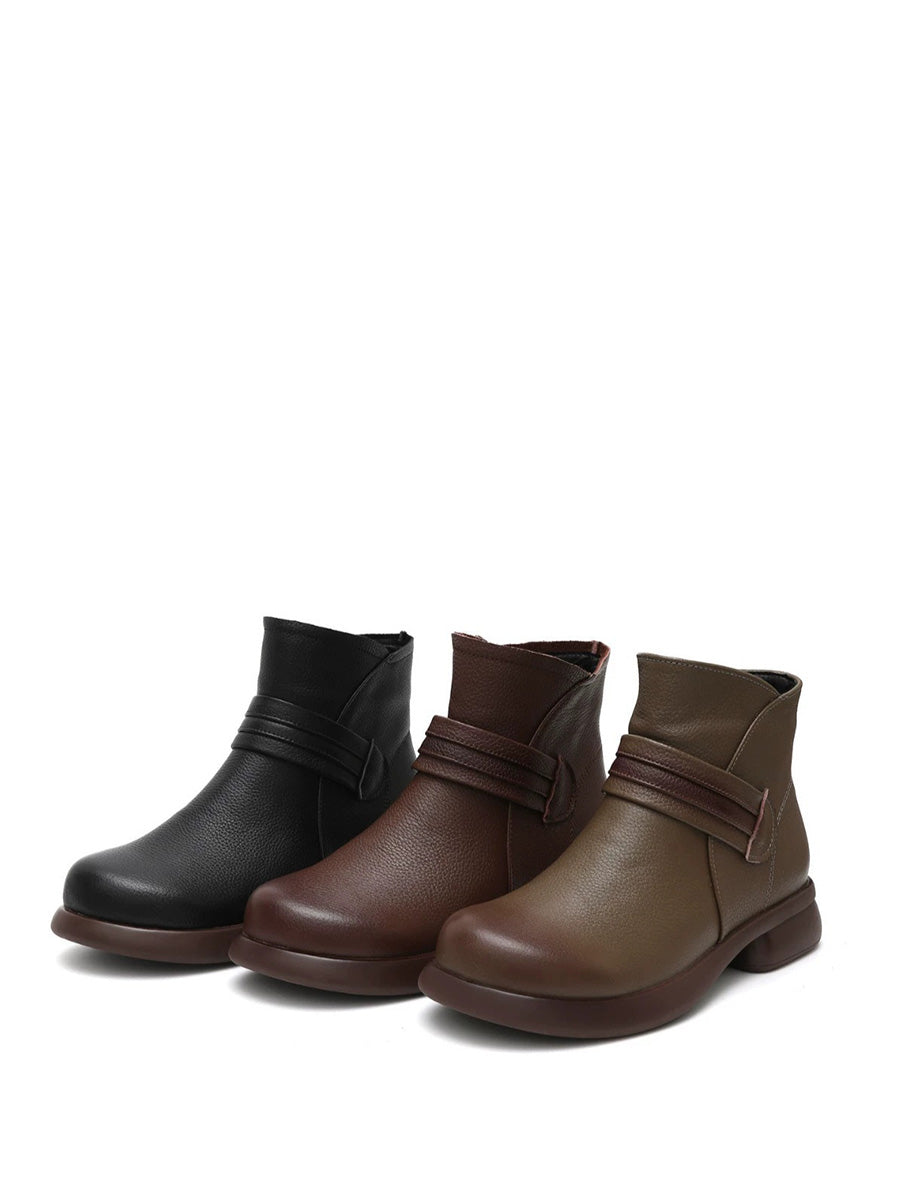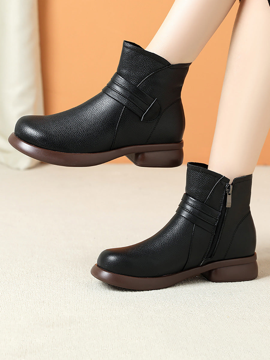 Women Winter Genuine Leather Spliced Low Heel Boots