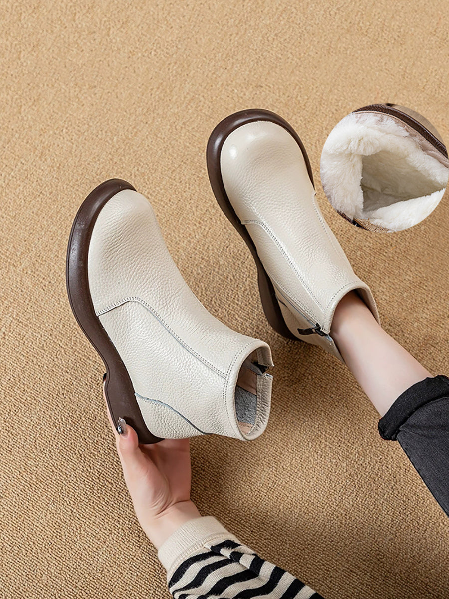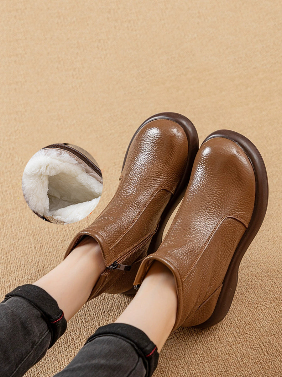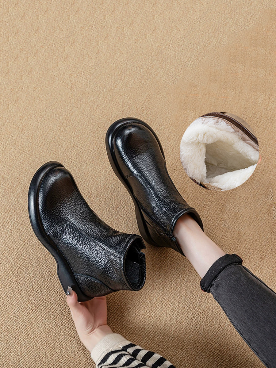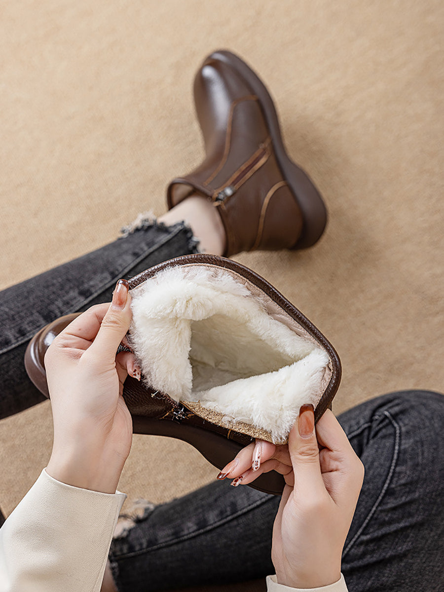 Women Winter Genuine Leather Woolen-lined Boots