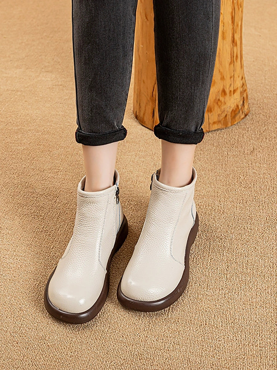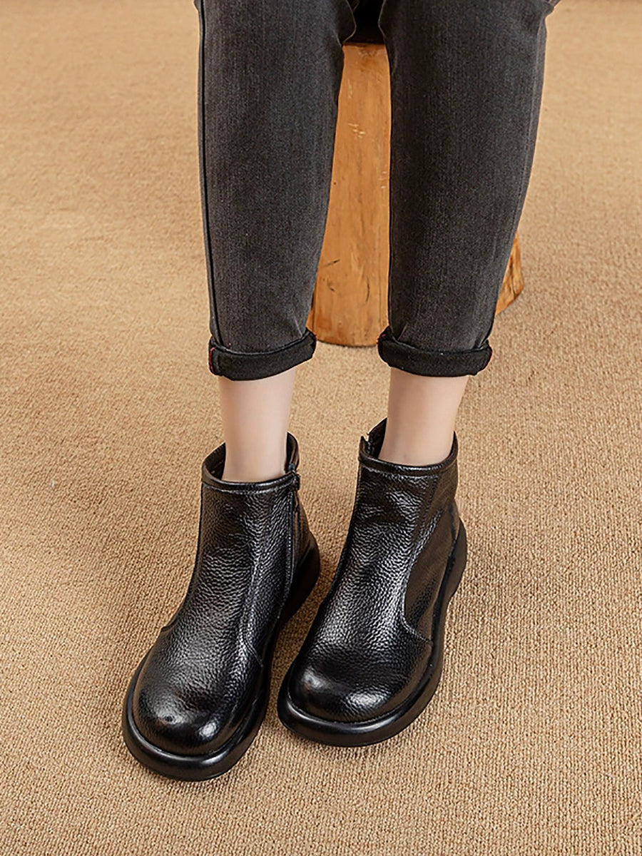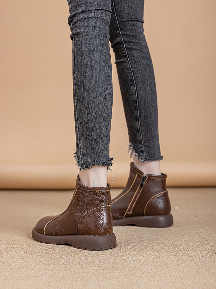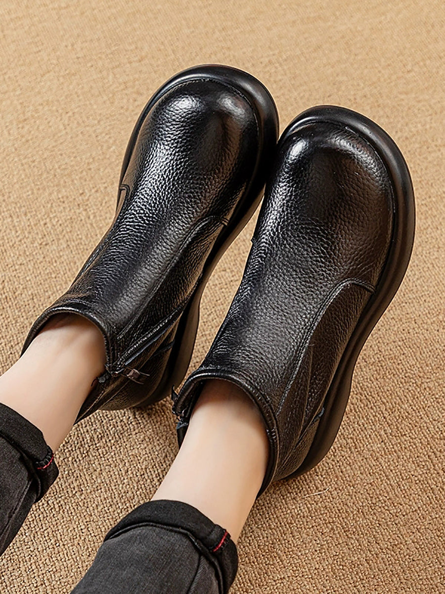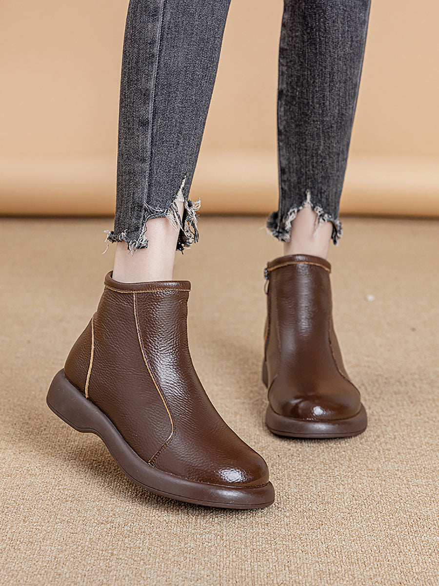 Women Winter Genuine Leather Woolen-lined Boots