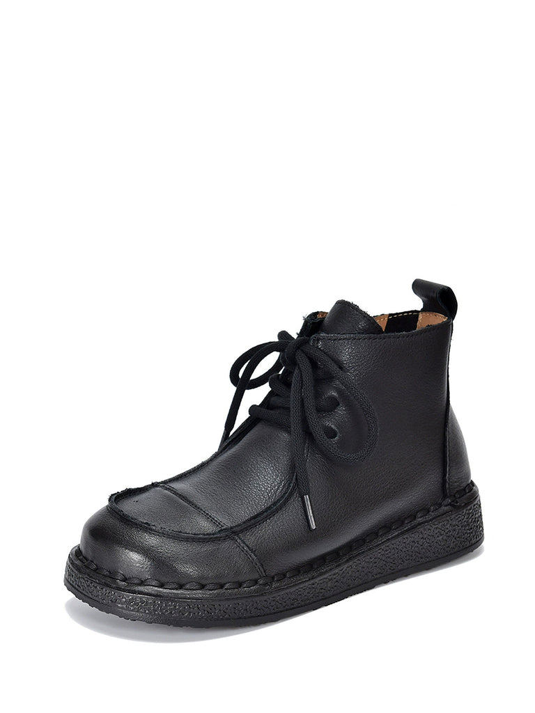 Women Winter Pure Color Genuine Leather Flat Ankle Boots