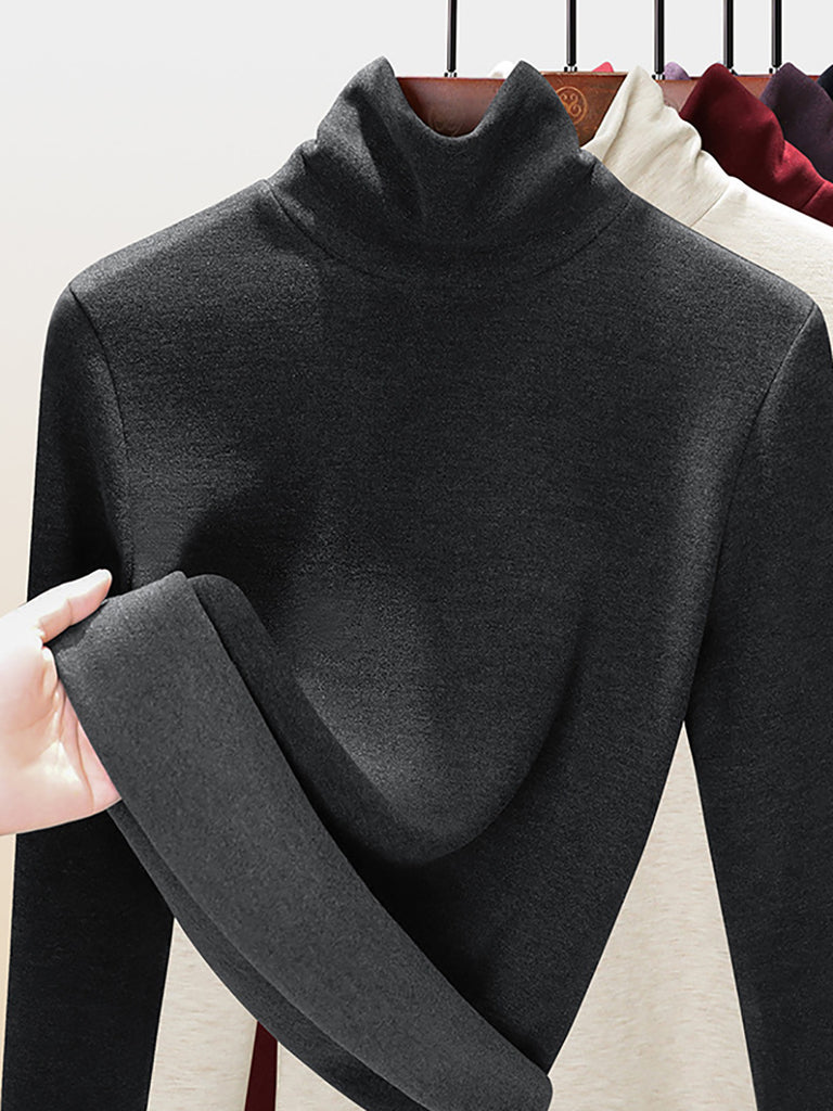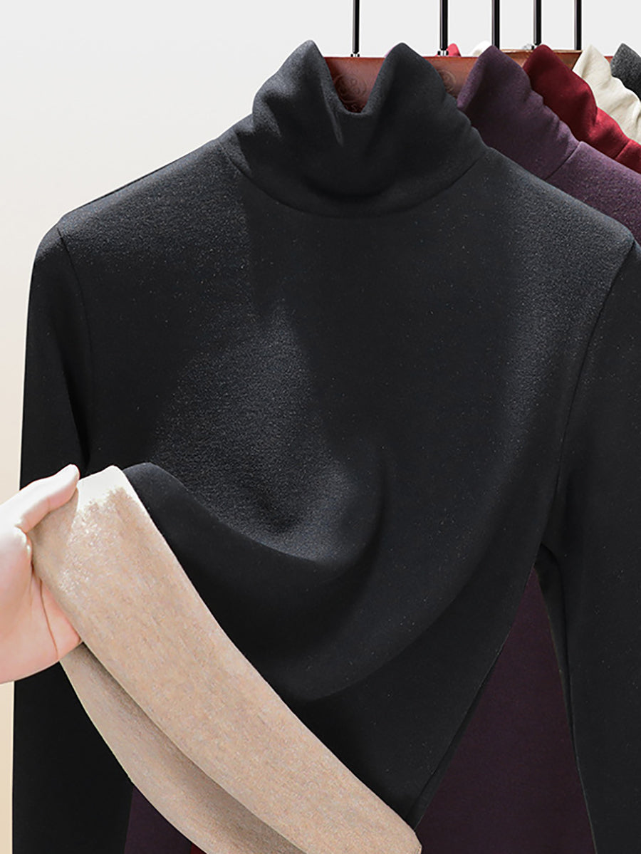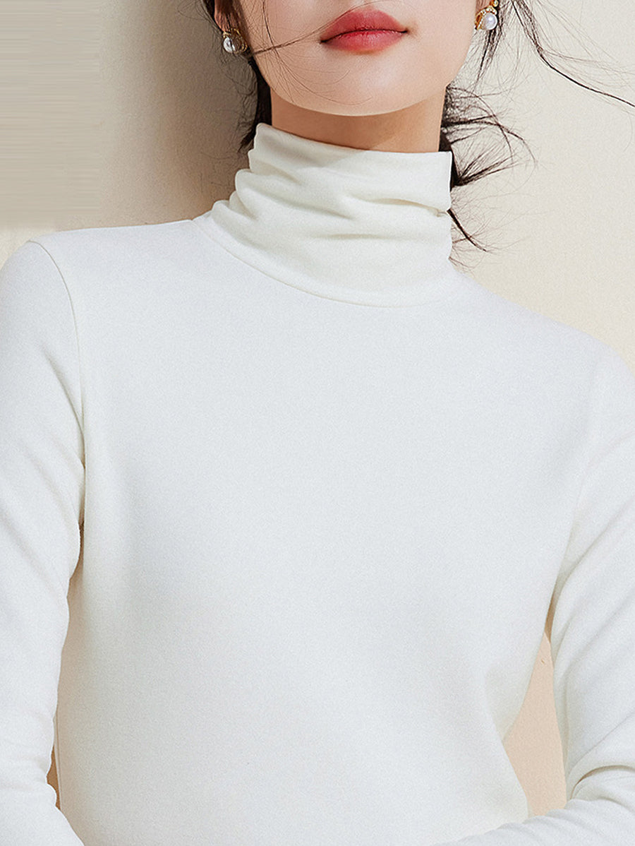 Women Winter Pure Color Warm Turtleneck Bottom Blouse