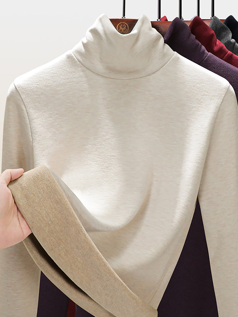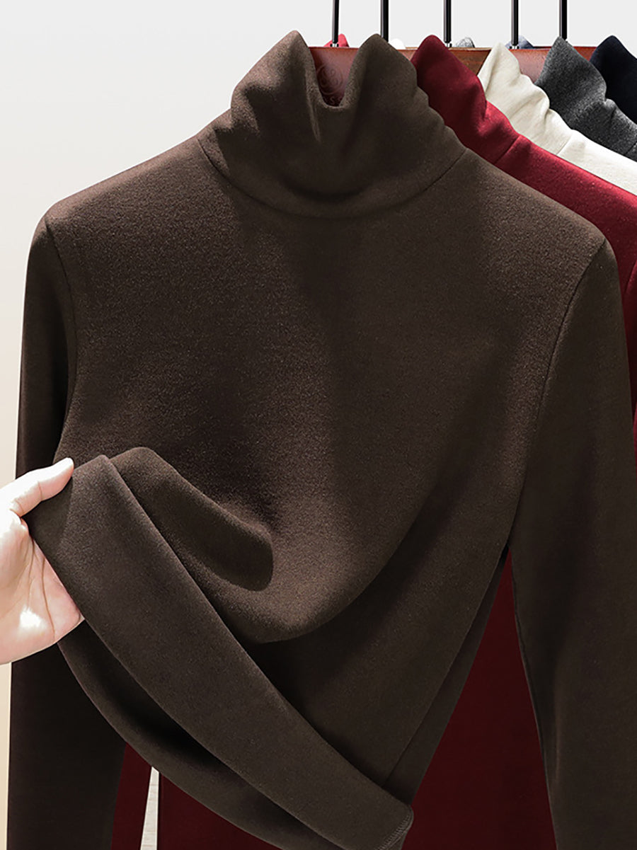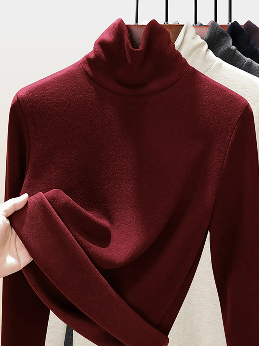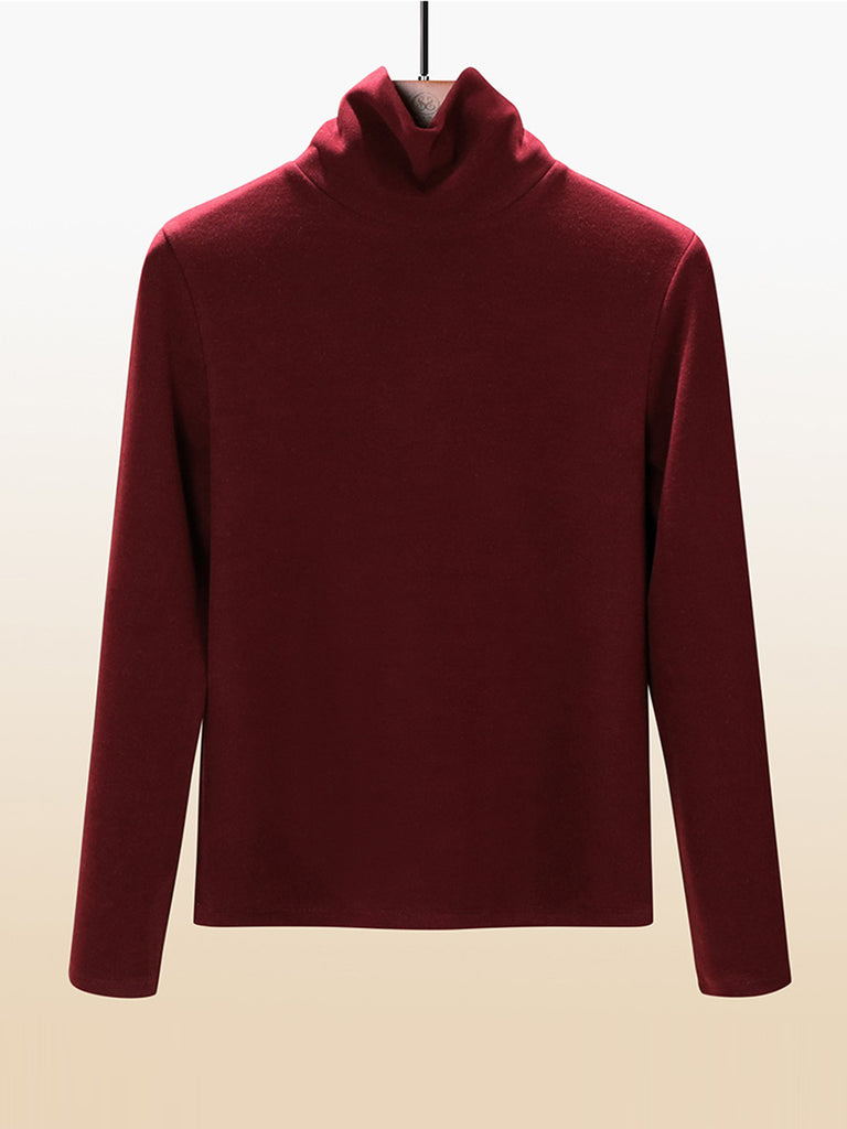 Women Winter Pure Color Warm Turtleneck Bottom Blouse