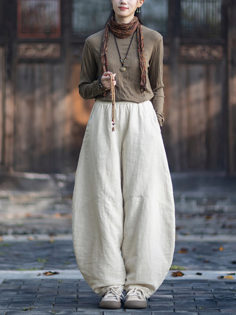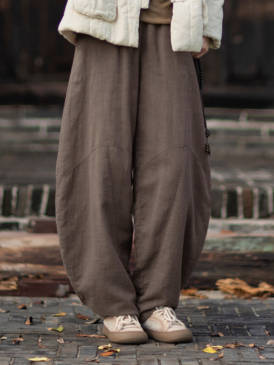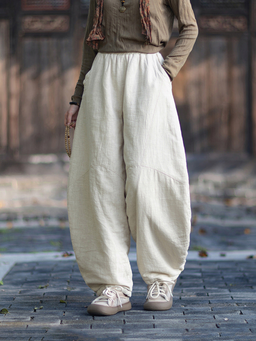 Women Winter Retro Pure Color Padded Harem Pants