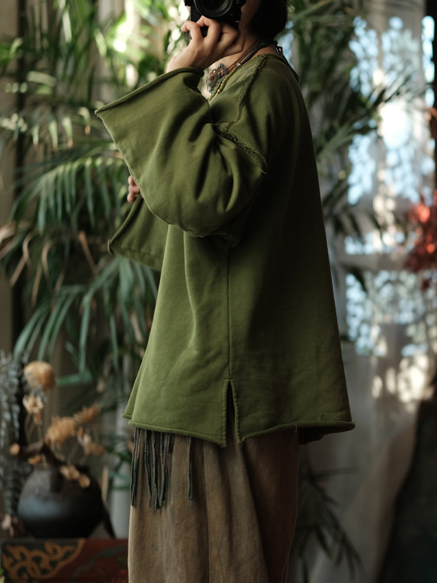 Women Winter Retro Pure Color Stitching O-Neck Blouse