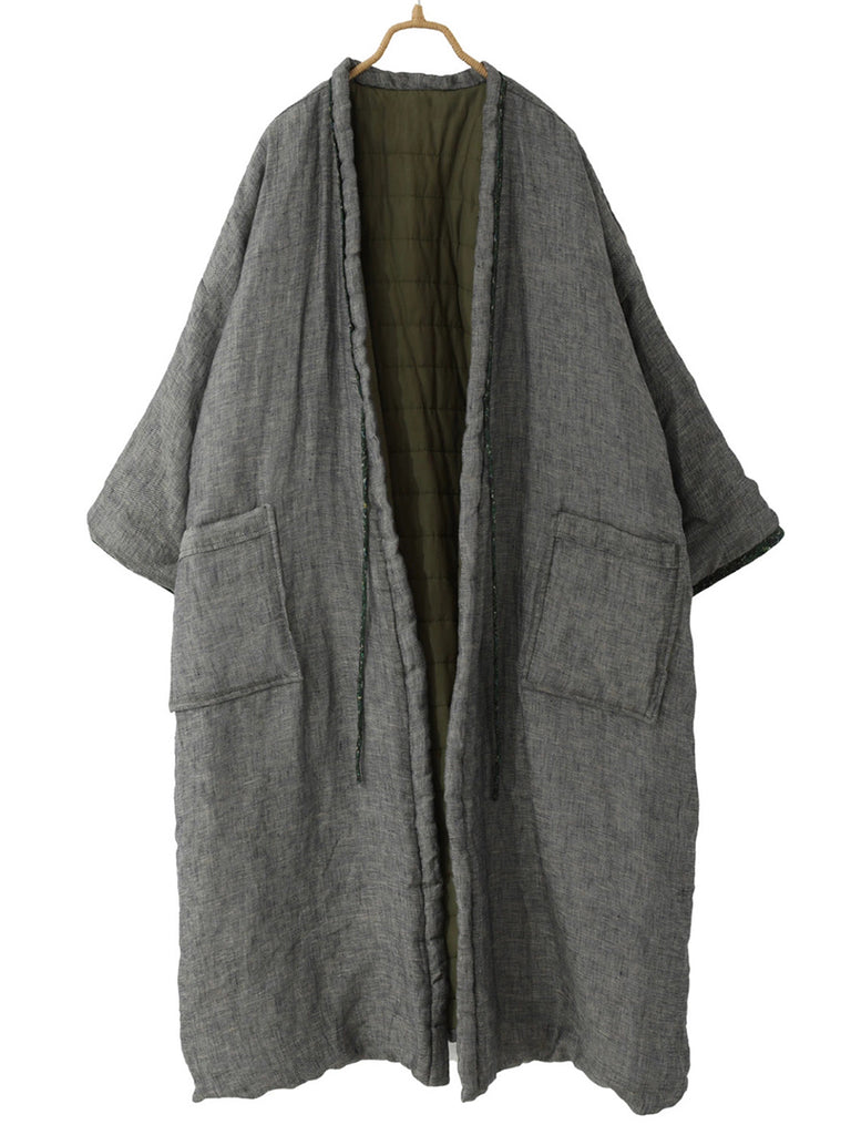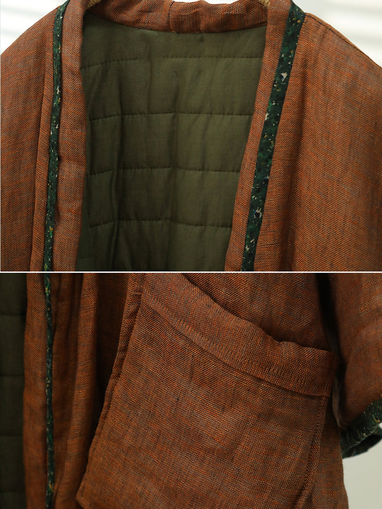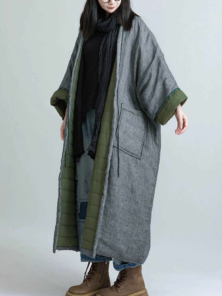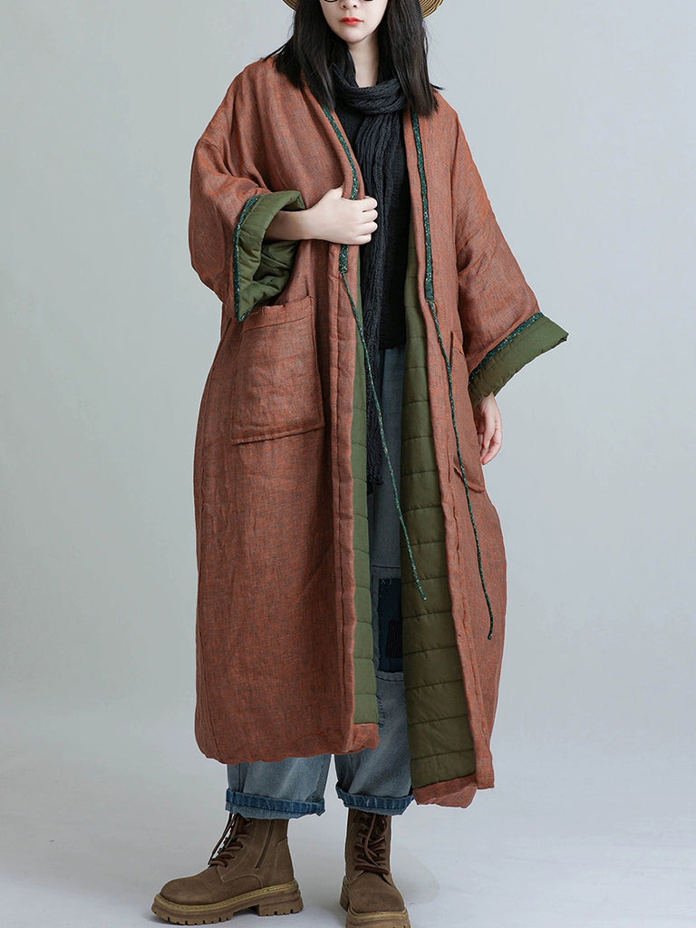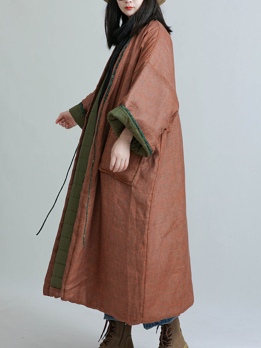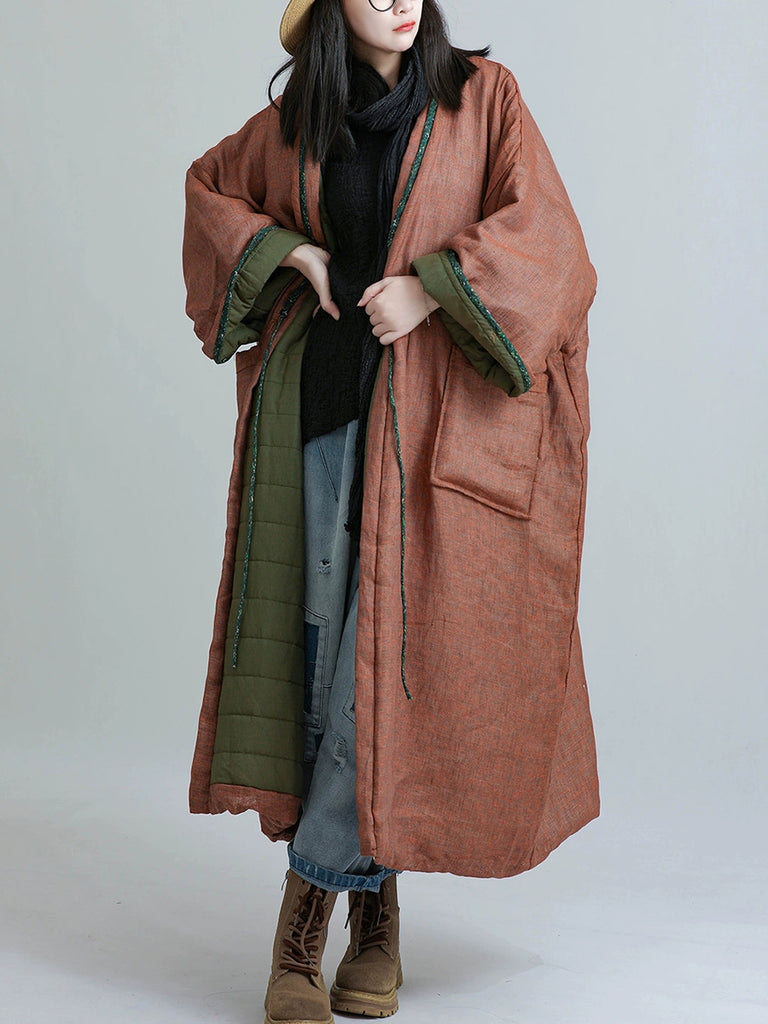 Women Winter Retro Pure Color V-Neck Padded Coat