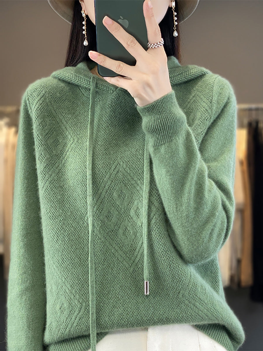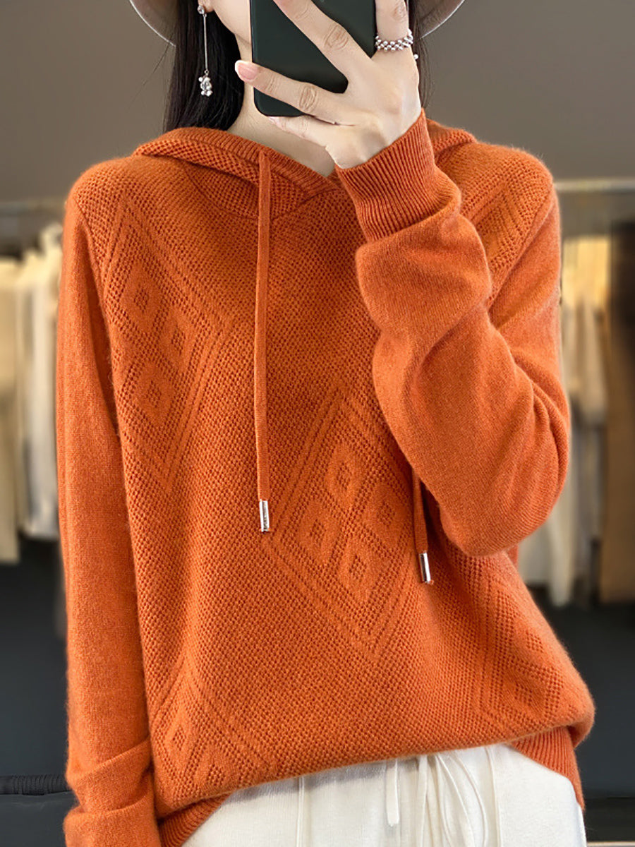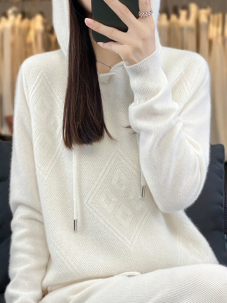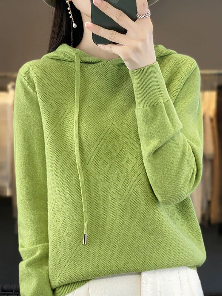 Women Winter Rhomboids Hooded Knitted Wool Sweater