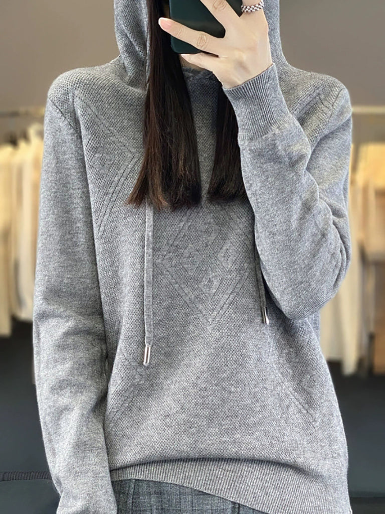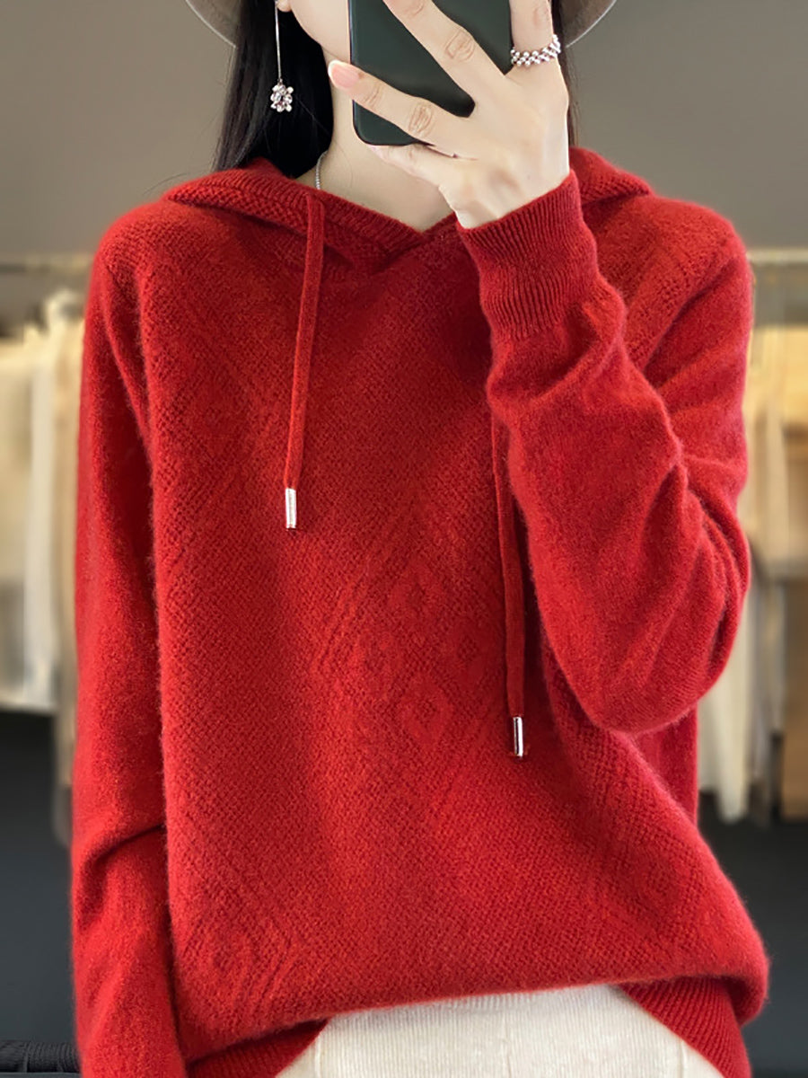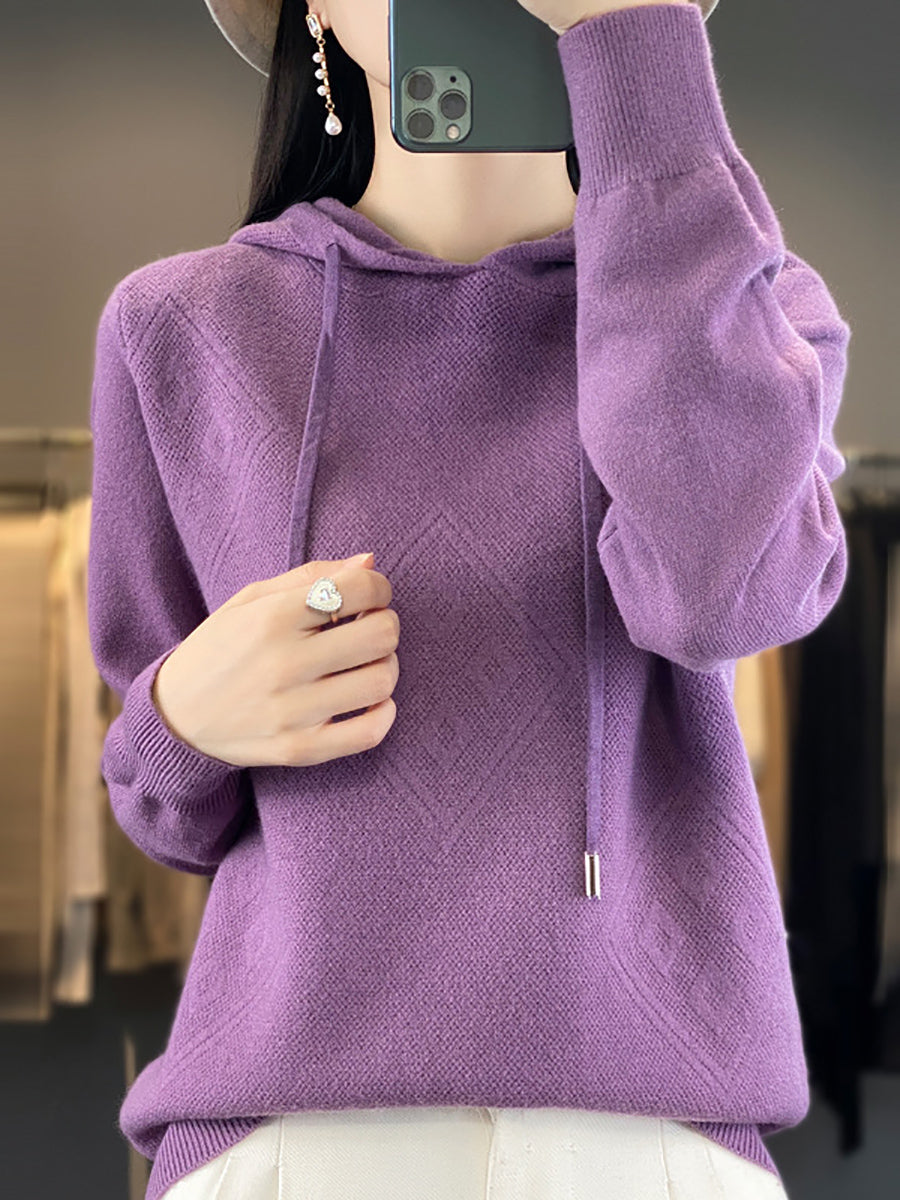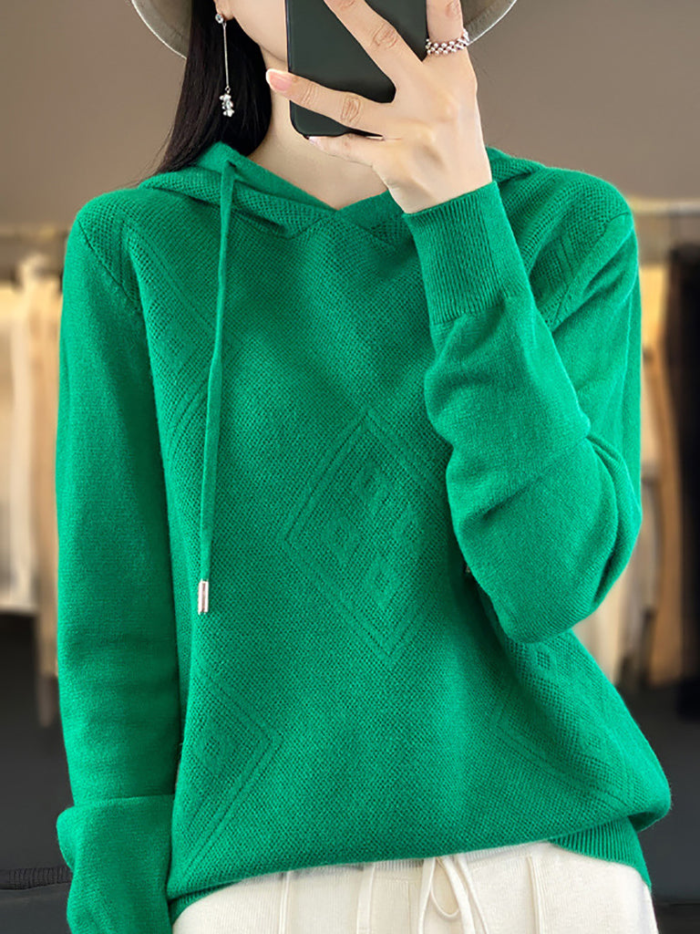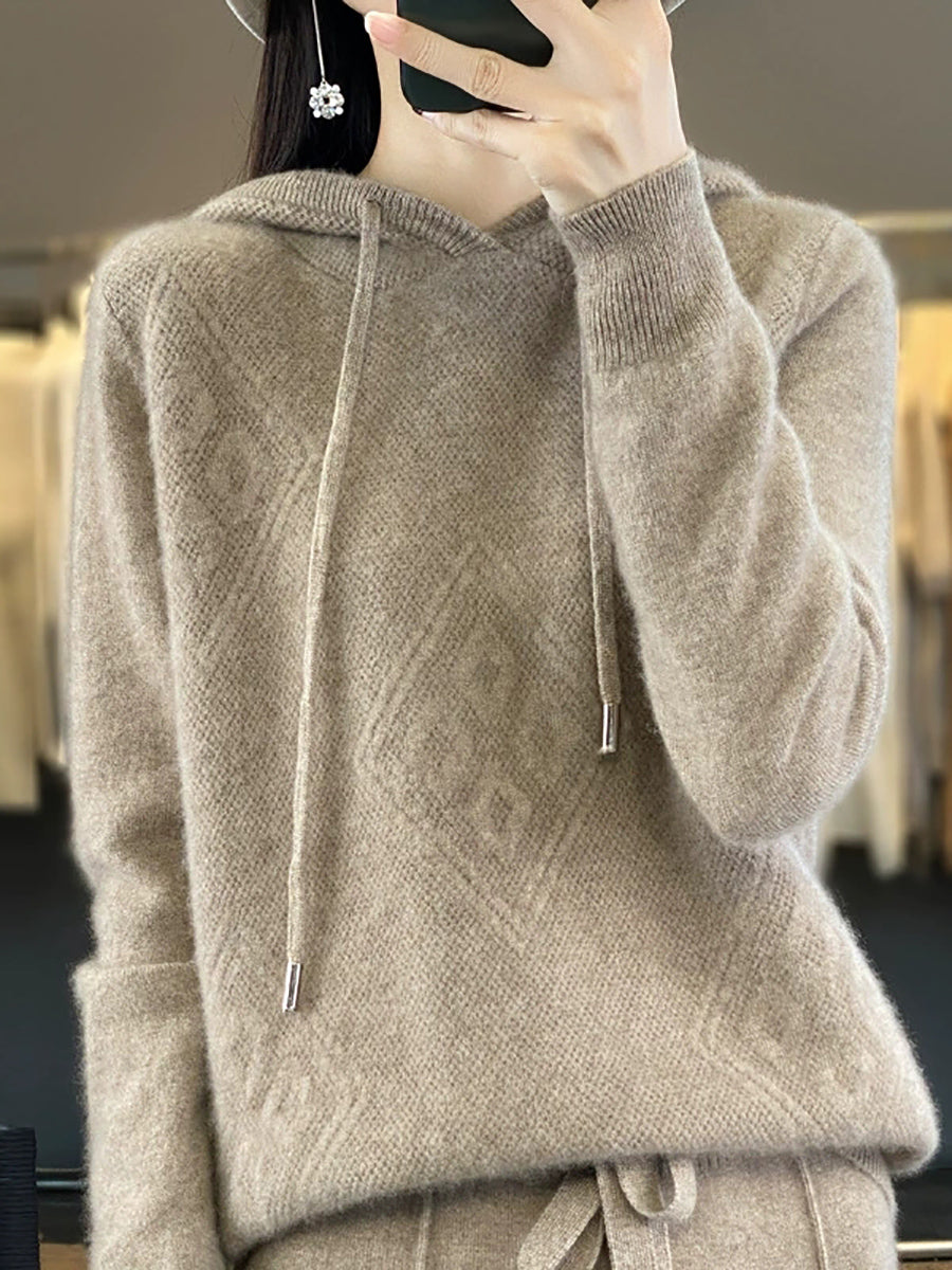 Women Winter Rhomboids Hooded Knitted Wool Sweater