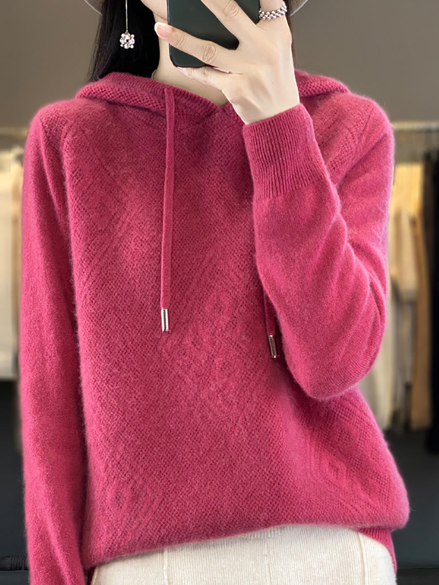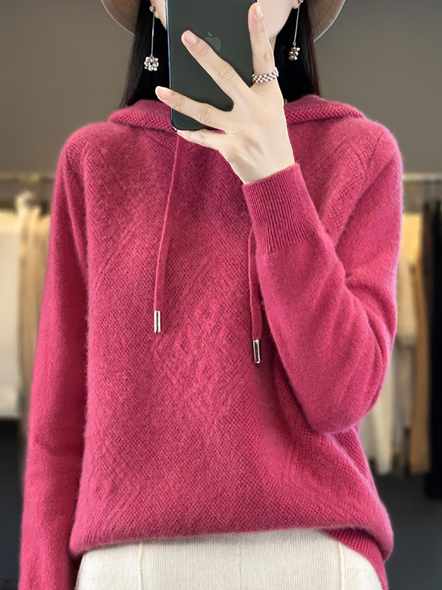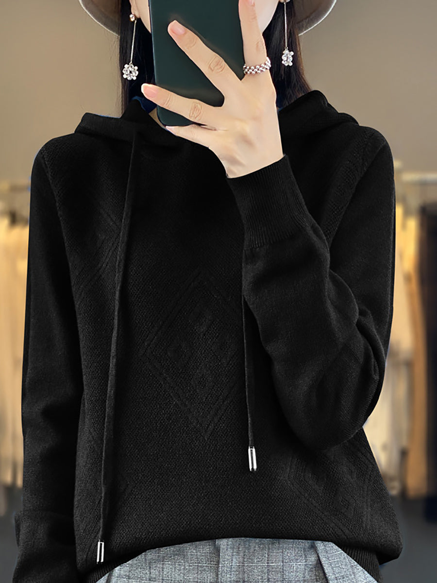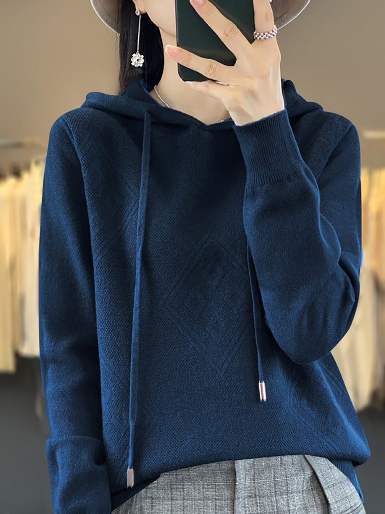 Women Winter Rhomboids Hooded Knitted Wool Sweater