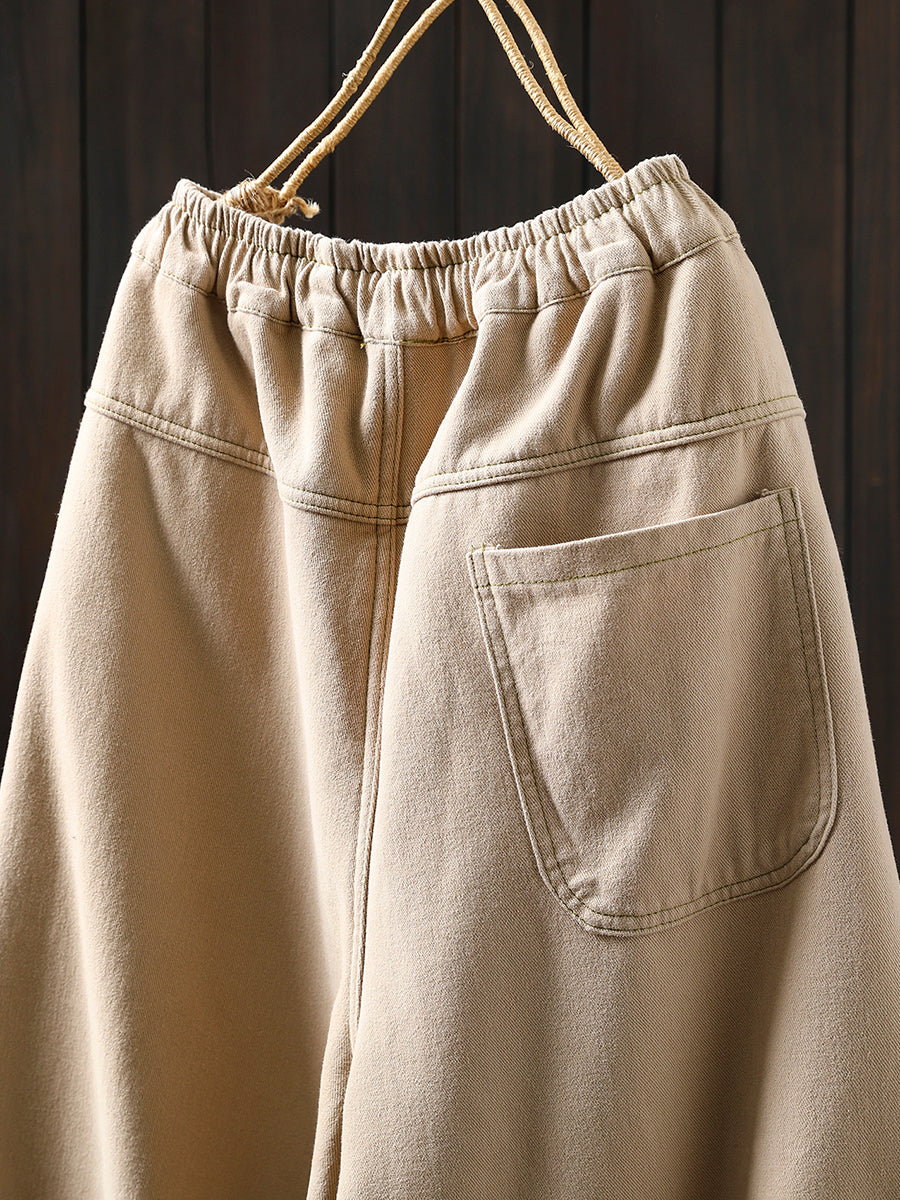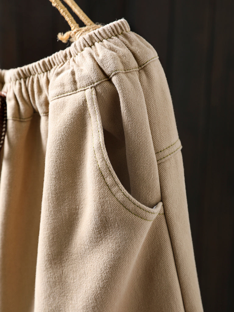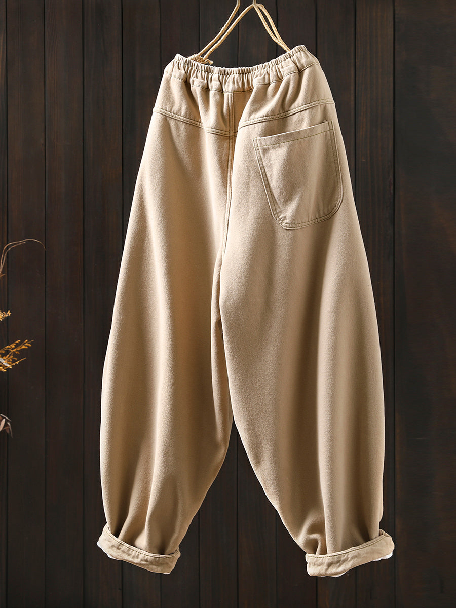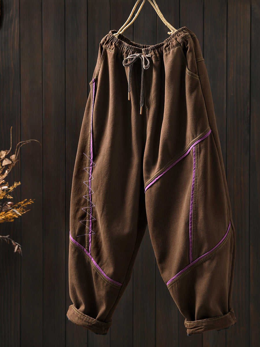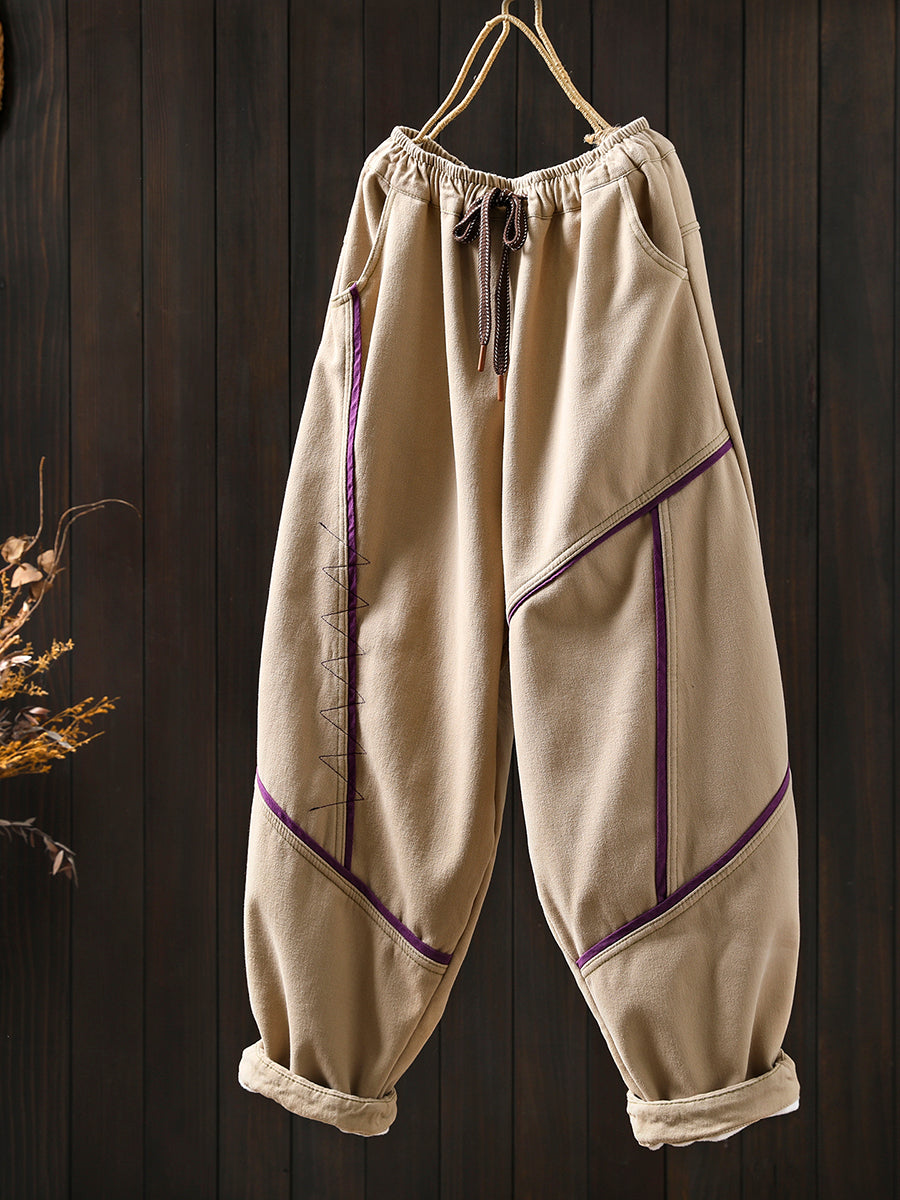 Women Winter Vintage Spliced Cotton Fleece-lined Harem Pants