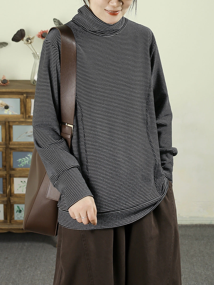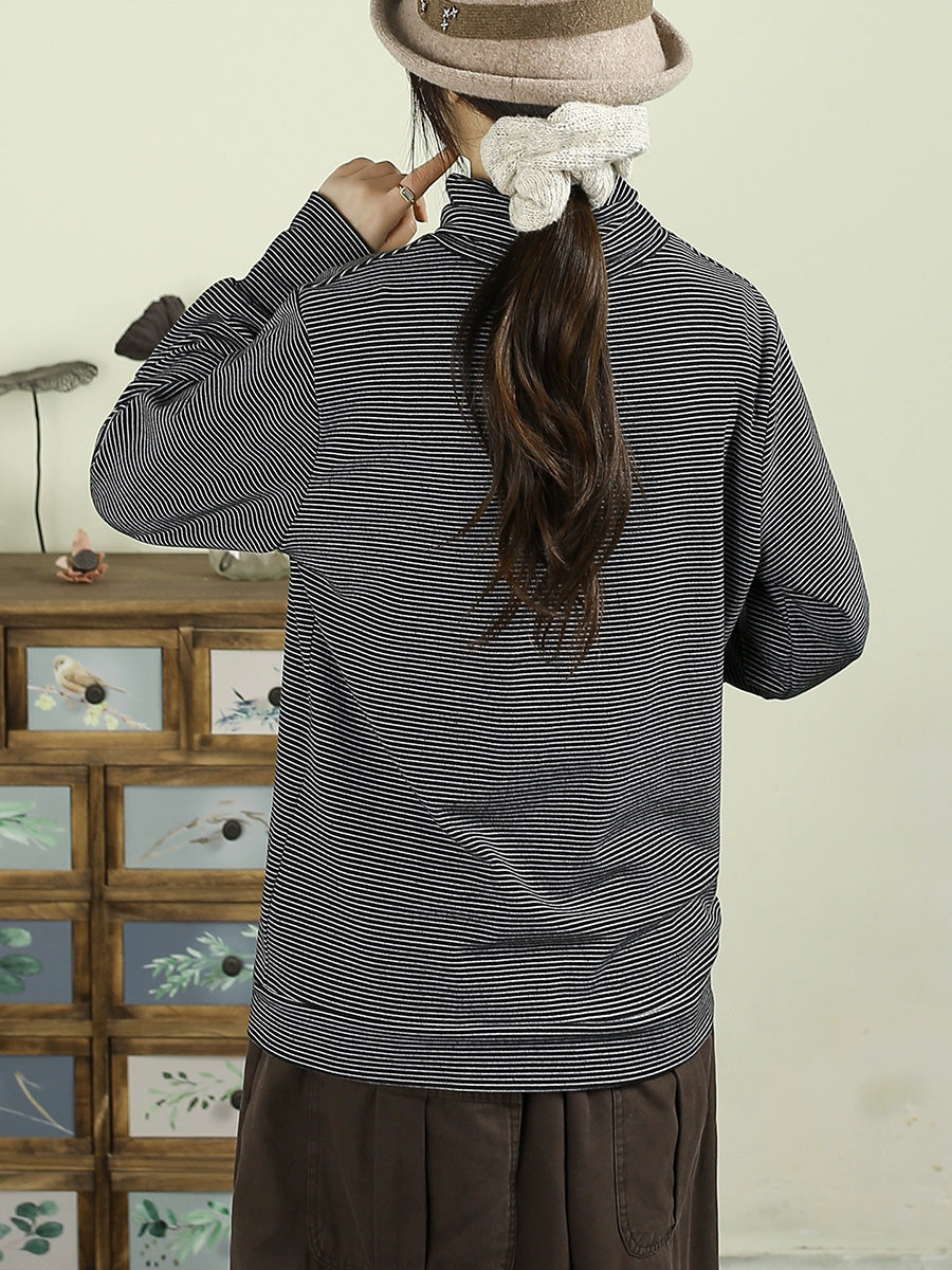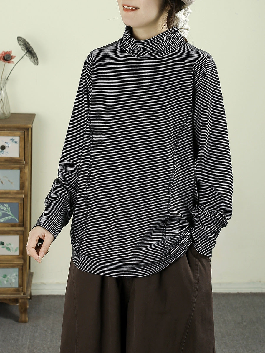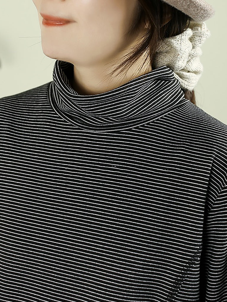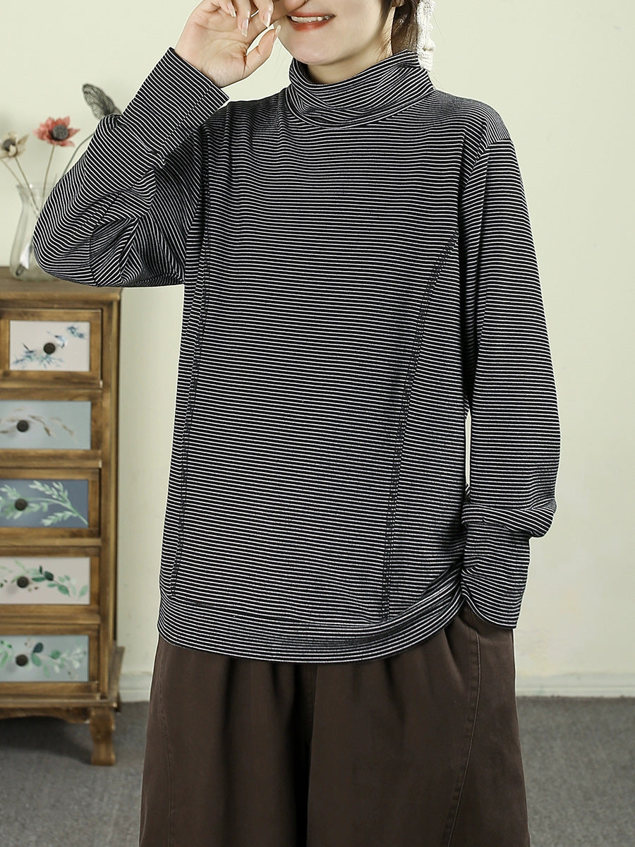 Crafted from a premium blend of 93.1% polyester and 6.9% spandex, this women's turtleneck blouse delivers exceptional comfort and durability. The classic stripe pattern adds timeless sophistication, while the full-length regular sleeves provide versatile layering options. Designed with a casual aesthetic, this piece transitions seamlessly from autumn into winter, making it an essential addition to any seasonal wardrobe.
