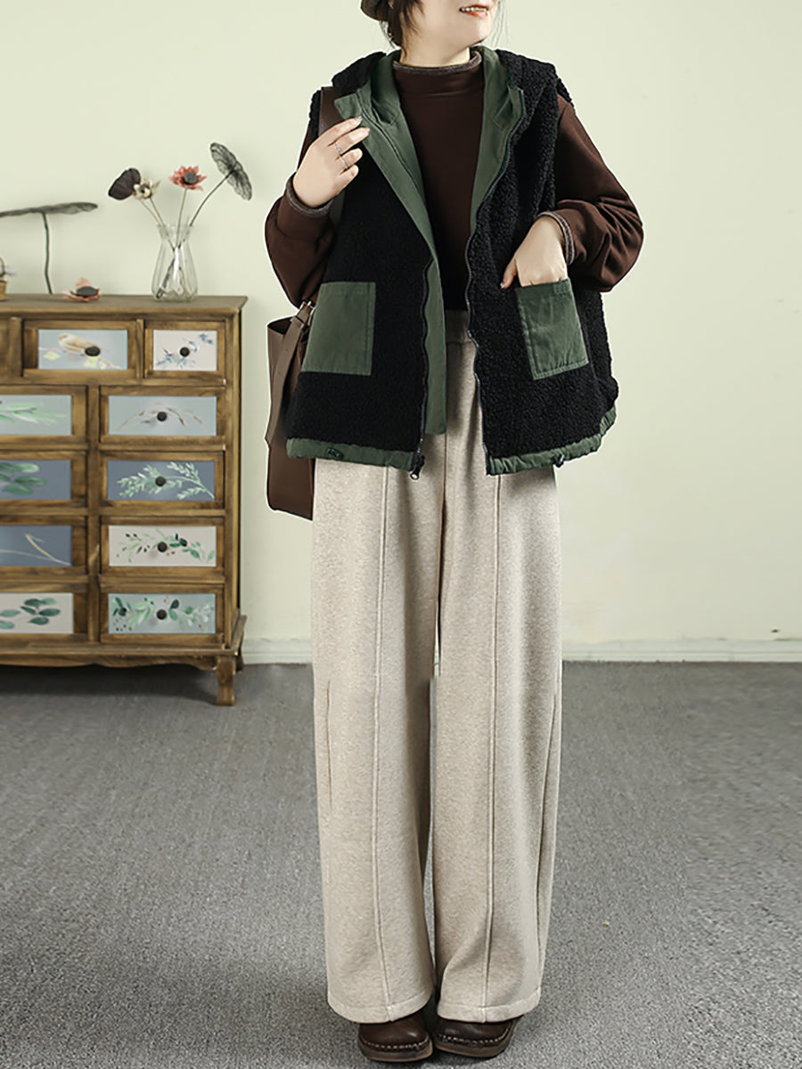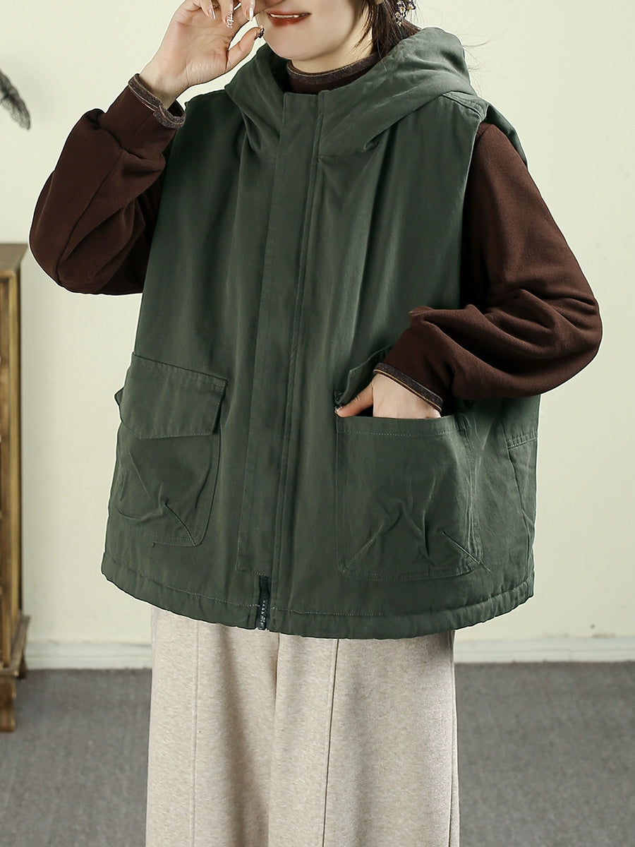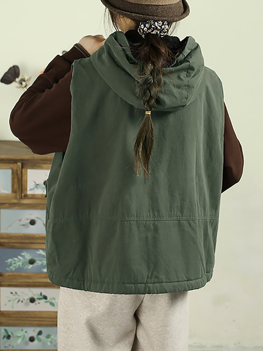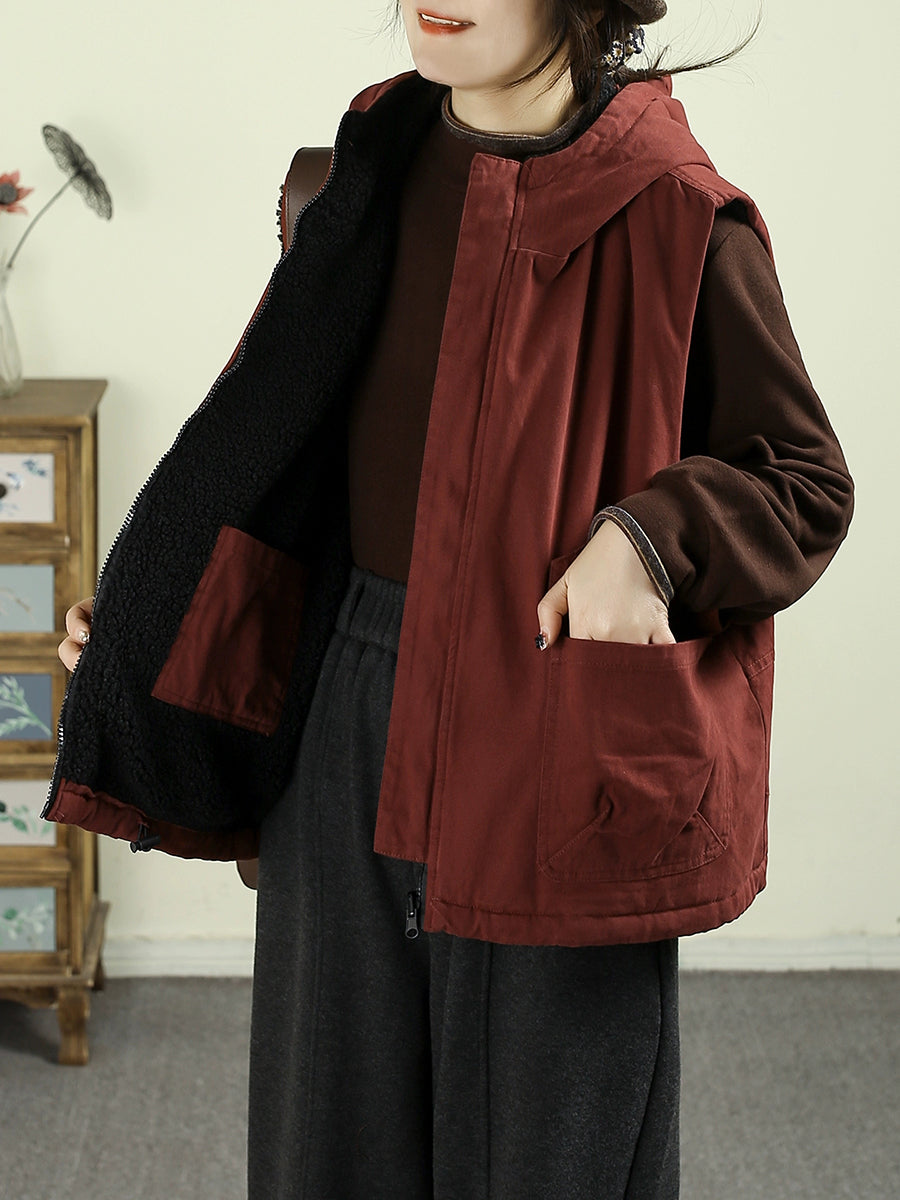 Women Winter Vintage Two-side Wearing Feece Hooded Vest