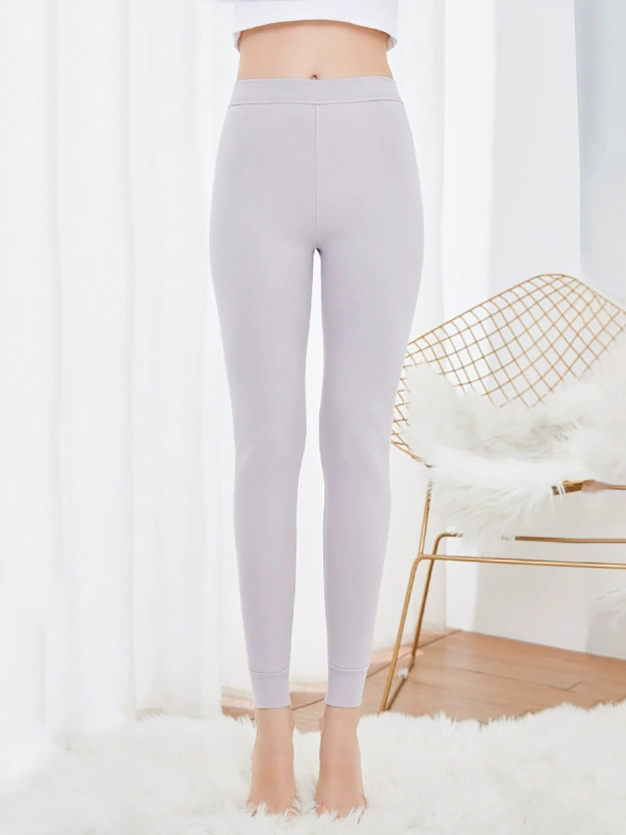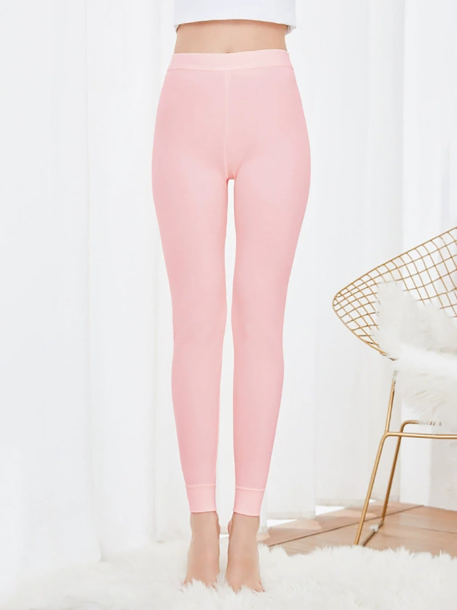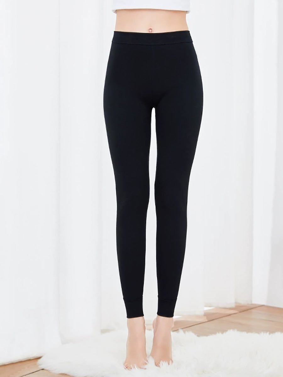 Women Winter Warm Pure Color High-Waist Leggings