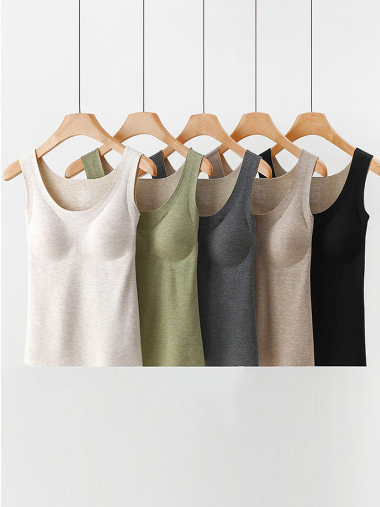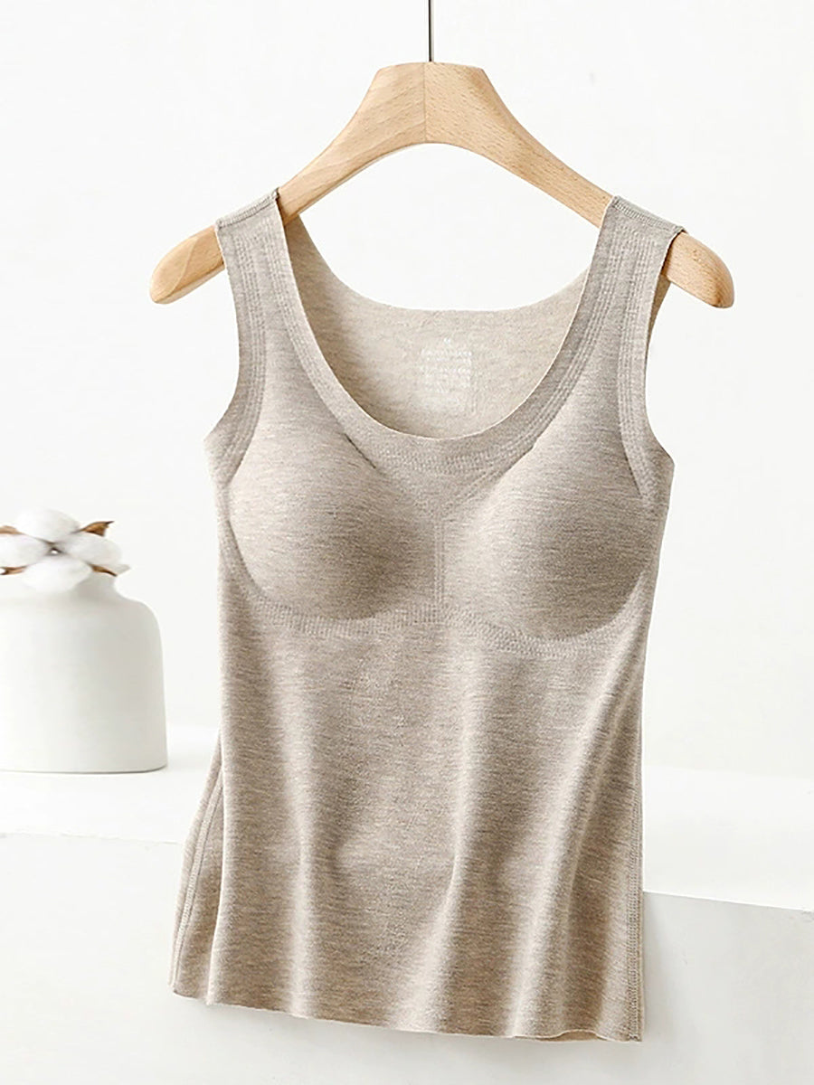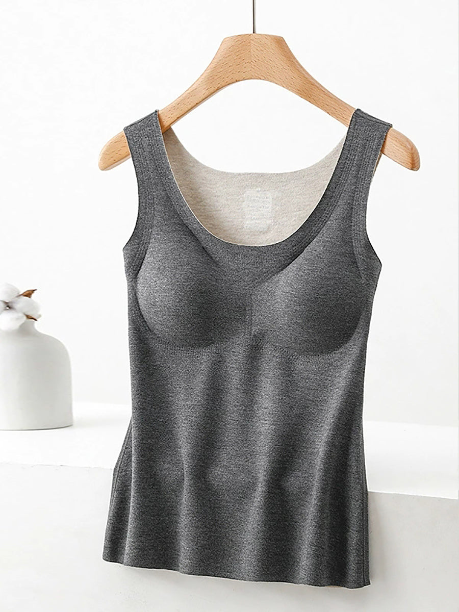 Women Winter Warm Pure Color With Bar Pads Base Vest