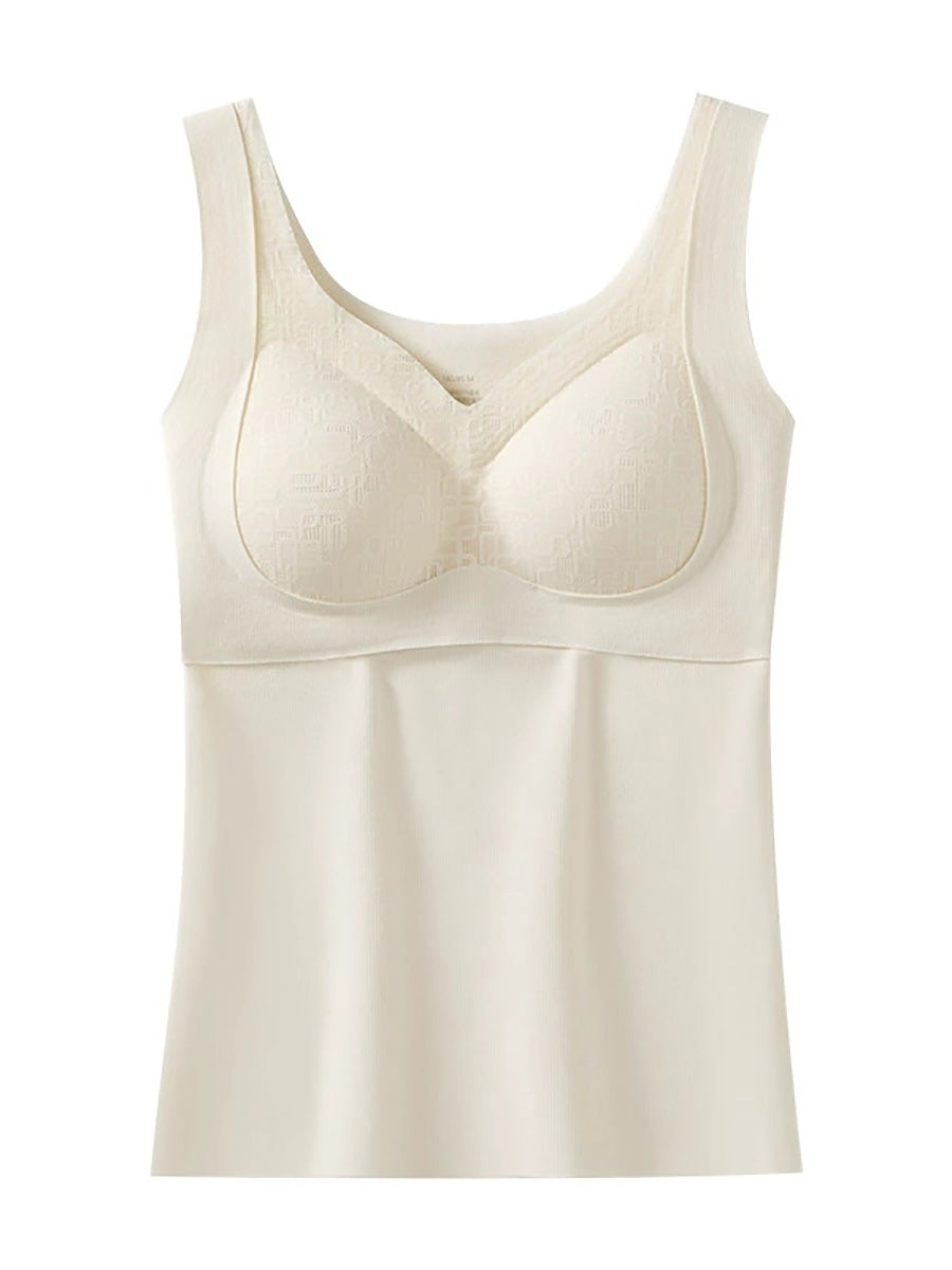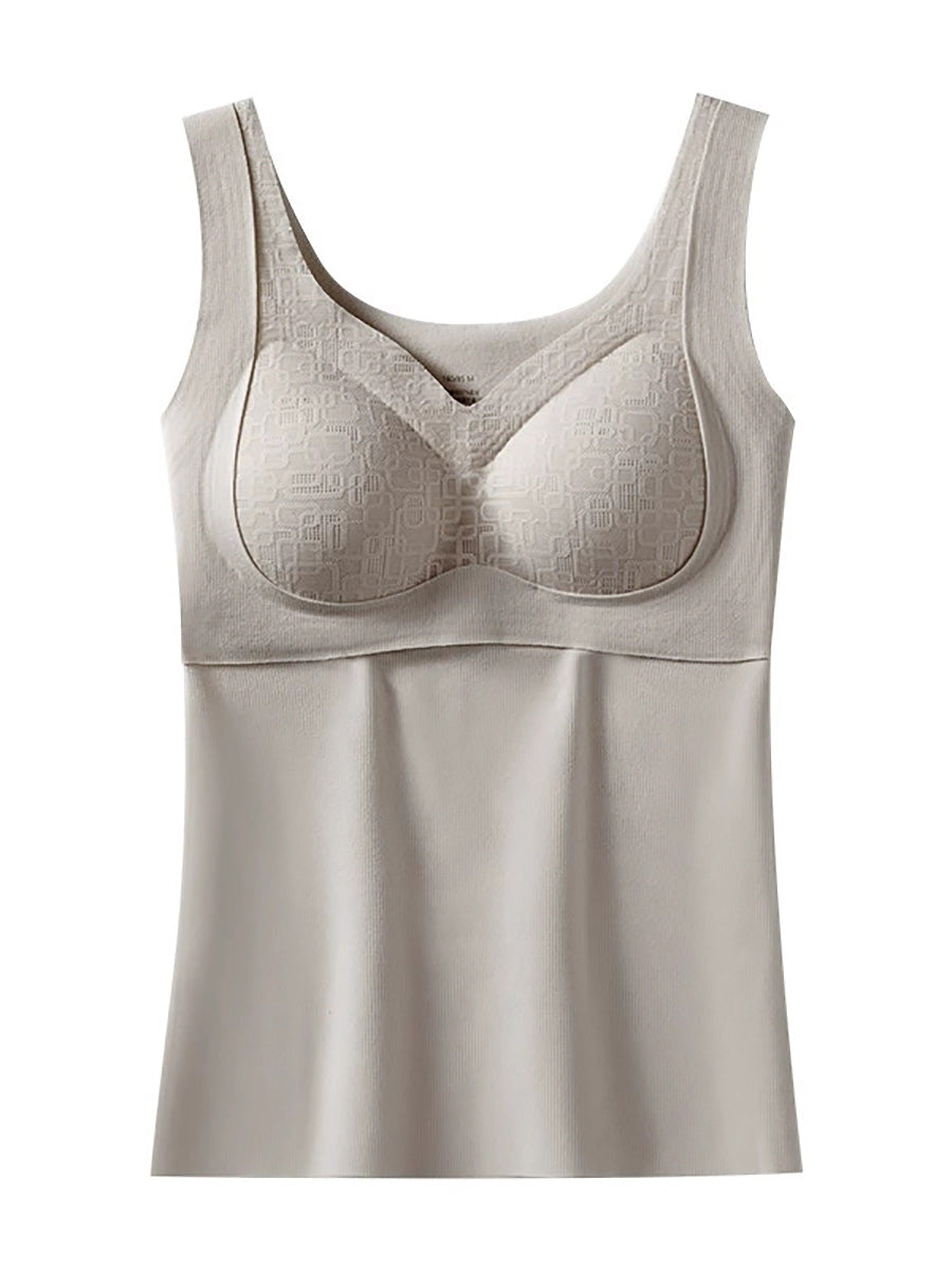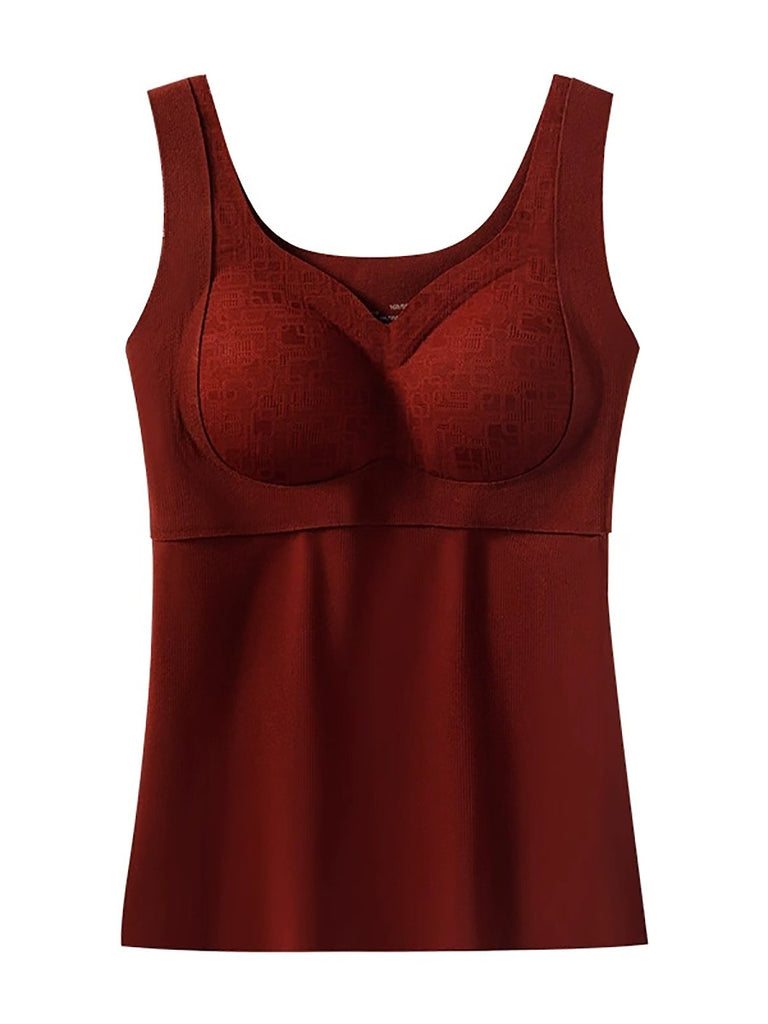 Women Winter Warm Pure Color With Bra Pads Base Vest