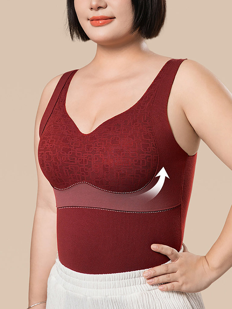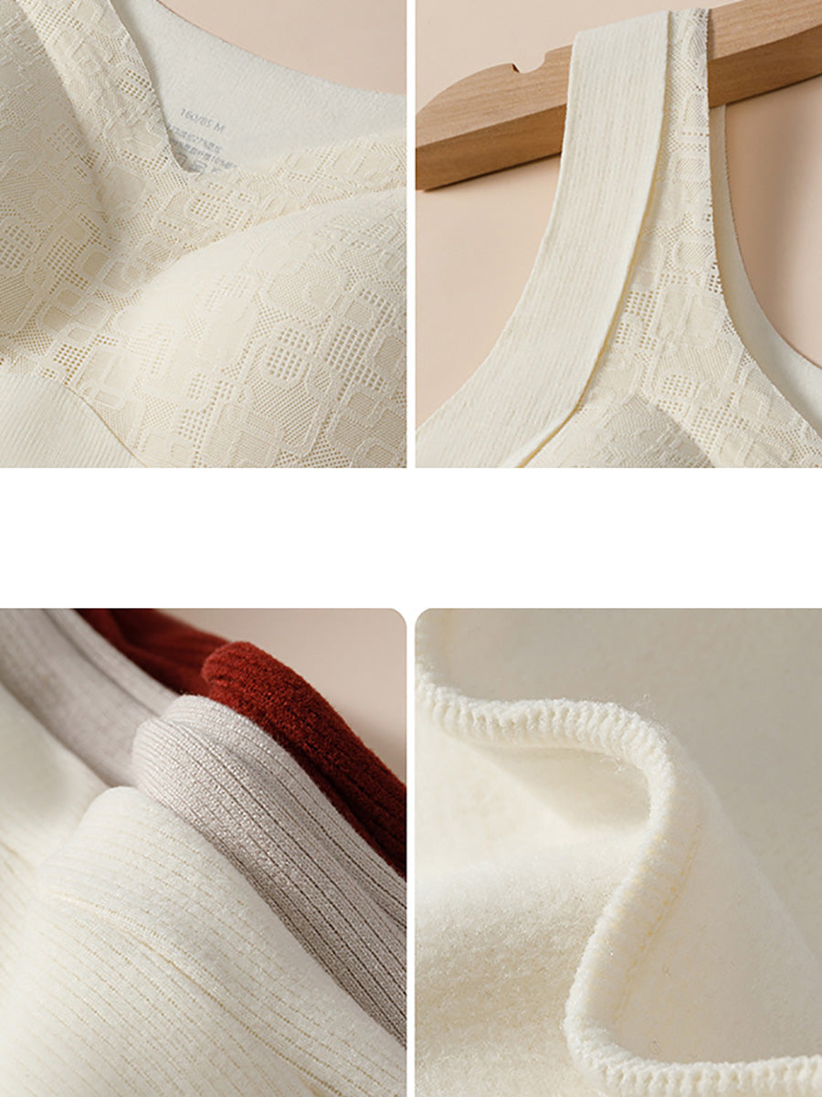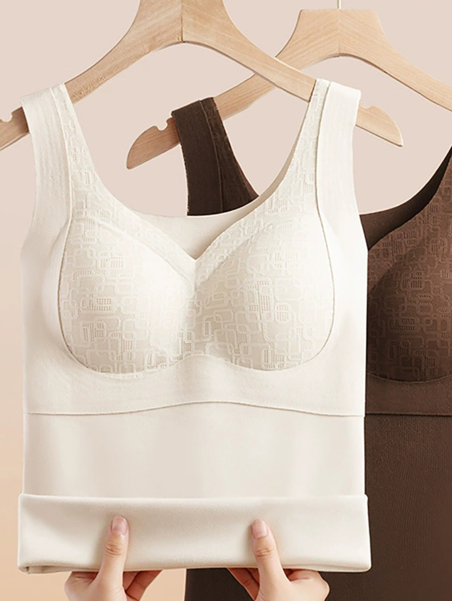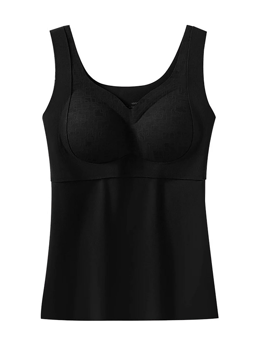 Women Winter Warm Pure Color With Bra Pads Base Vest