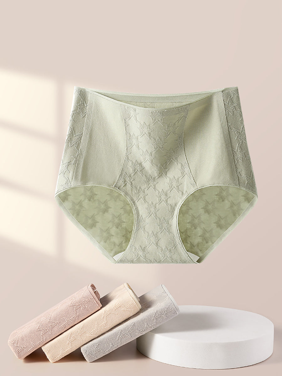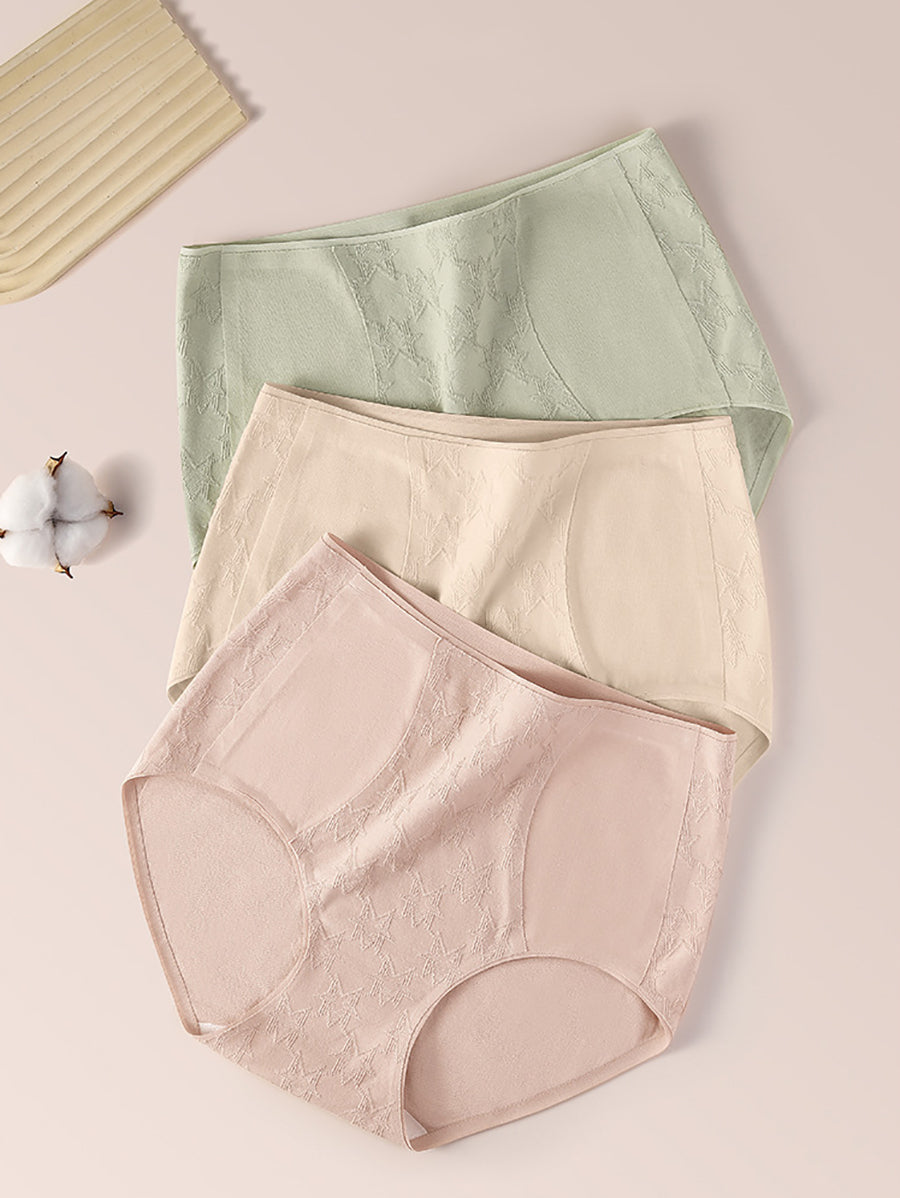 Conjunto de 3 peças de calcinha feminina de cintura alta com estampa jacquard artística