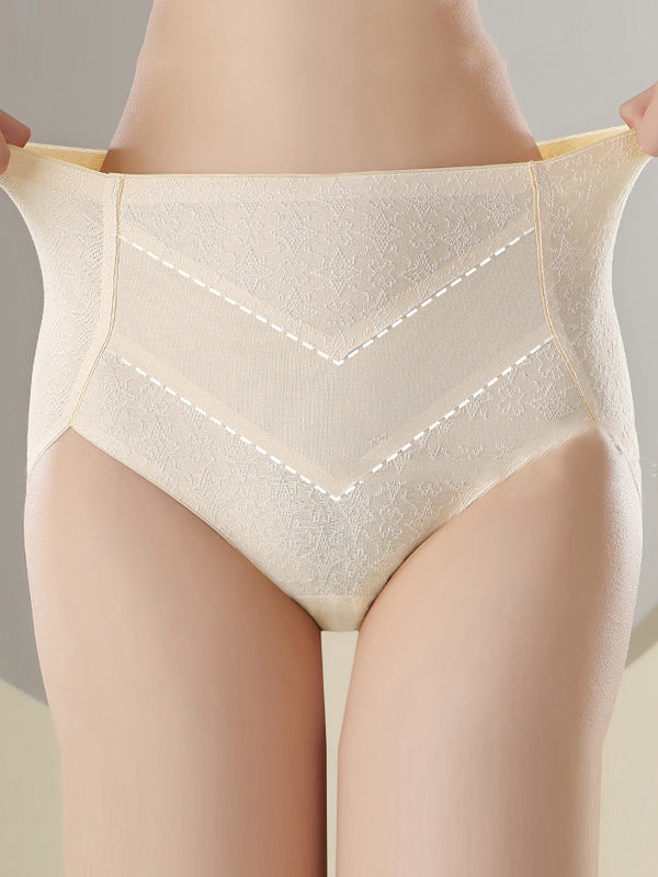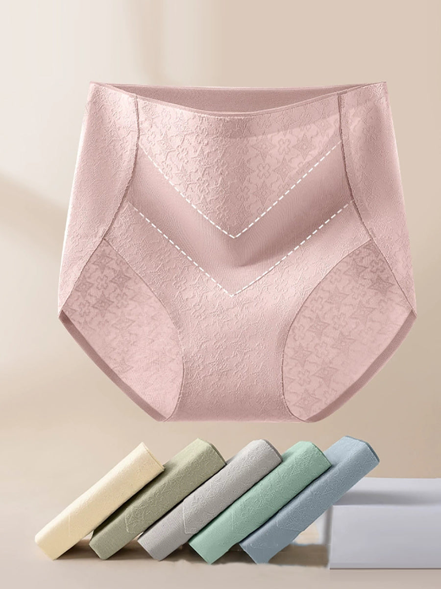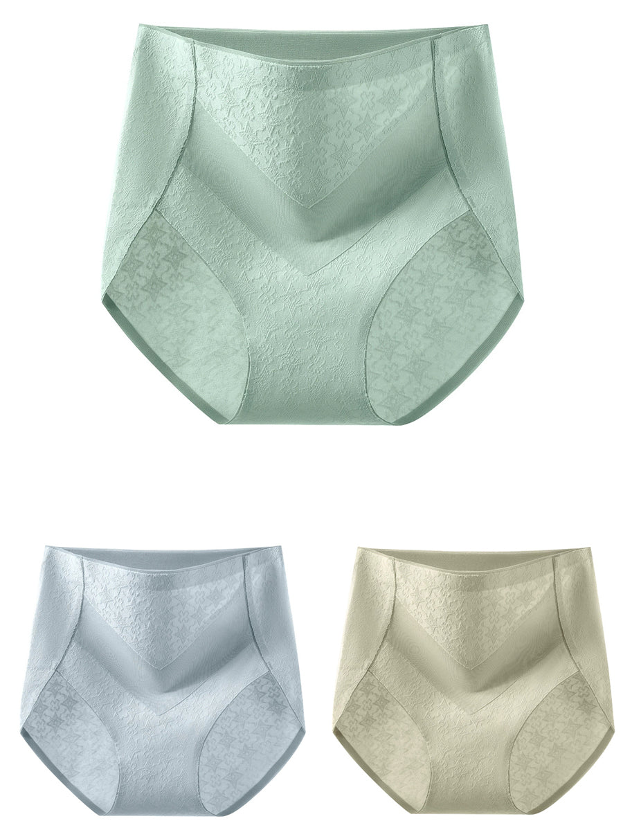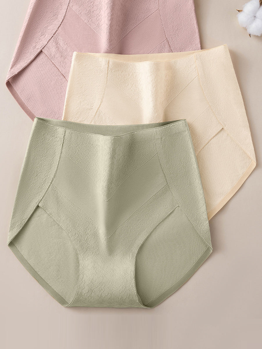 Conjunto de 3 peças de calcinha feminina de cintura alta com estampa jacquard artística