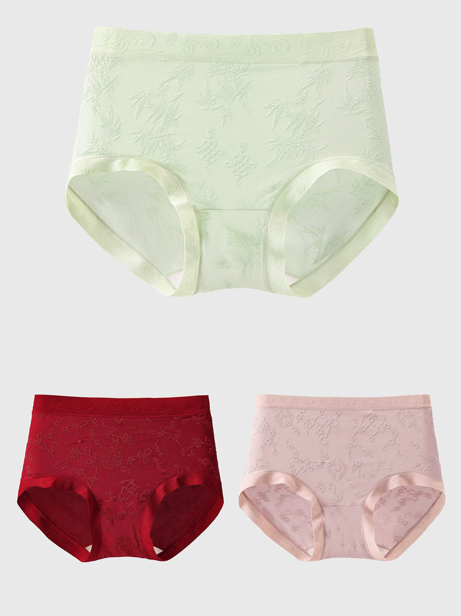 Conjunto de 3 peças de calcinha feminina de cintura alta com estampa jacquard artística