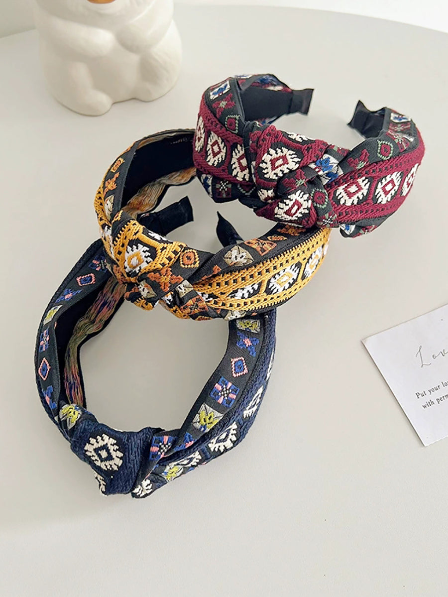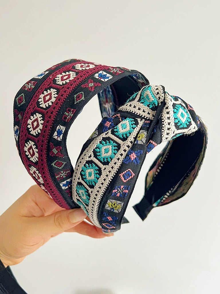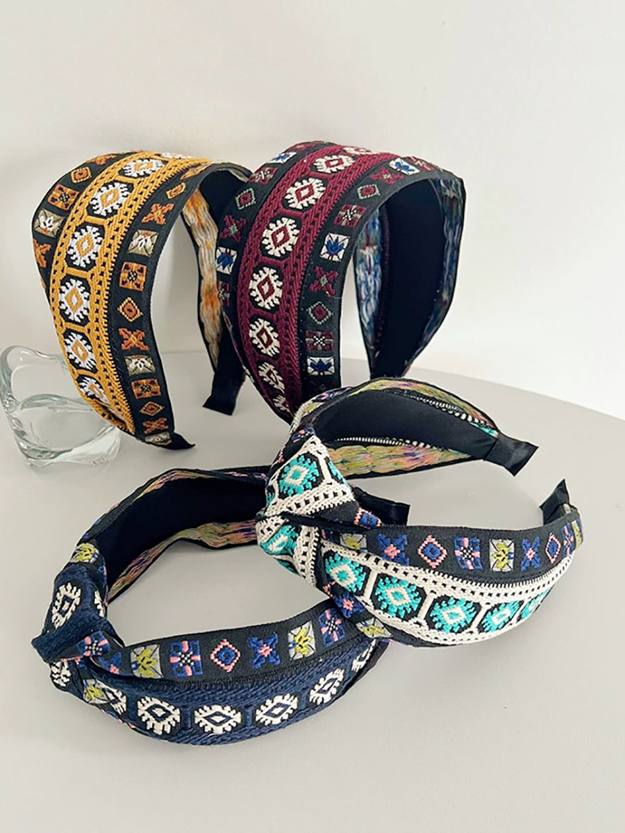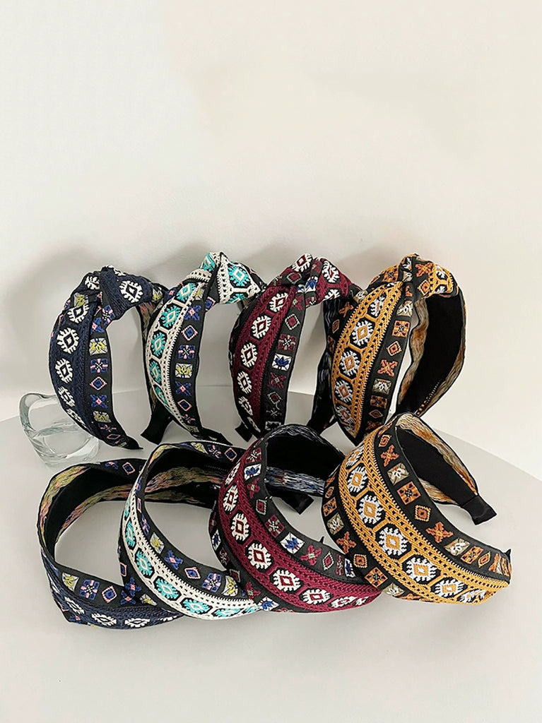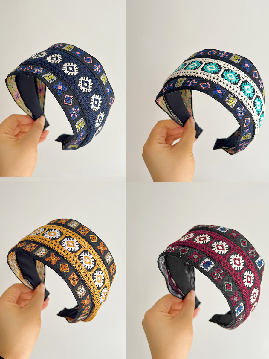 Conjunto de 4 faixas de cabelo largas tricotadas com flores para o inverno.