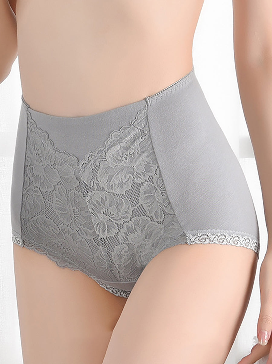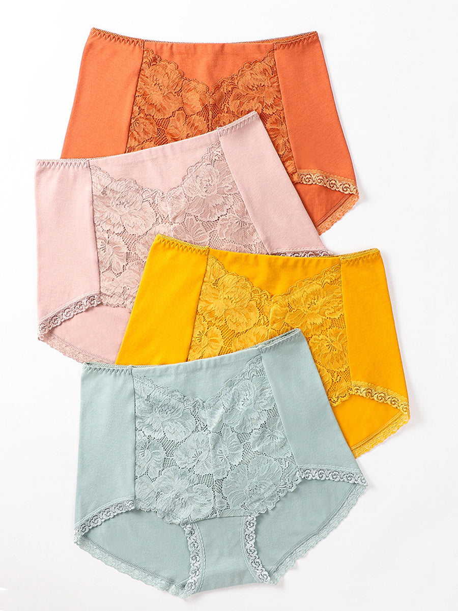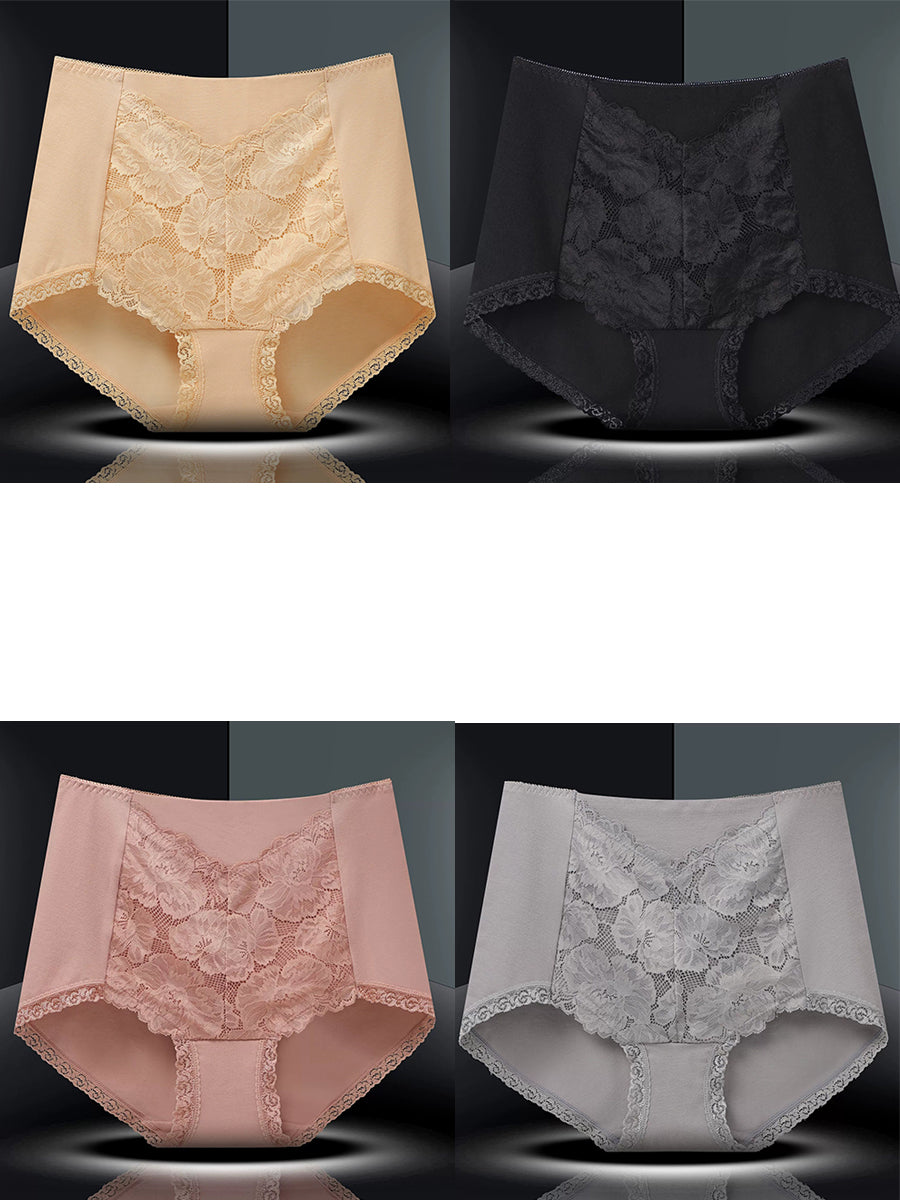 Conjunto de 4 peças de calcinhas femininas de cintura alta com detalhes florais artísticos.