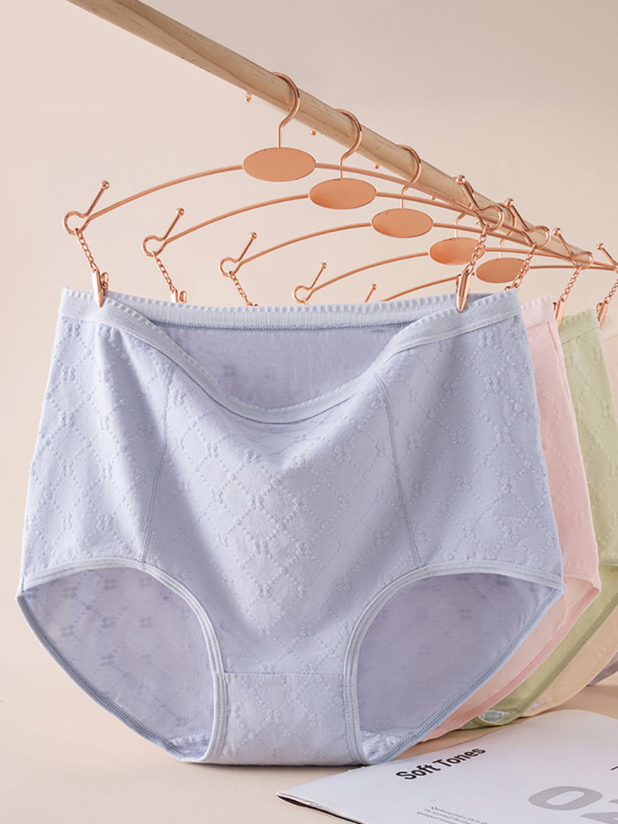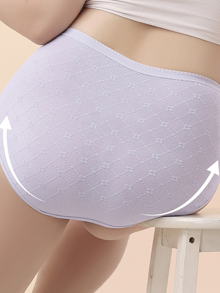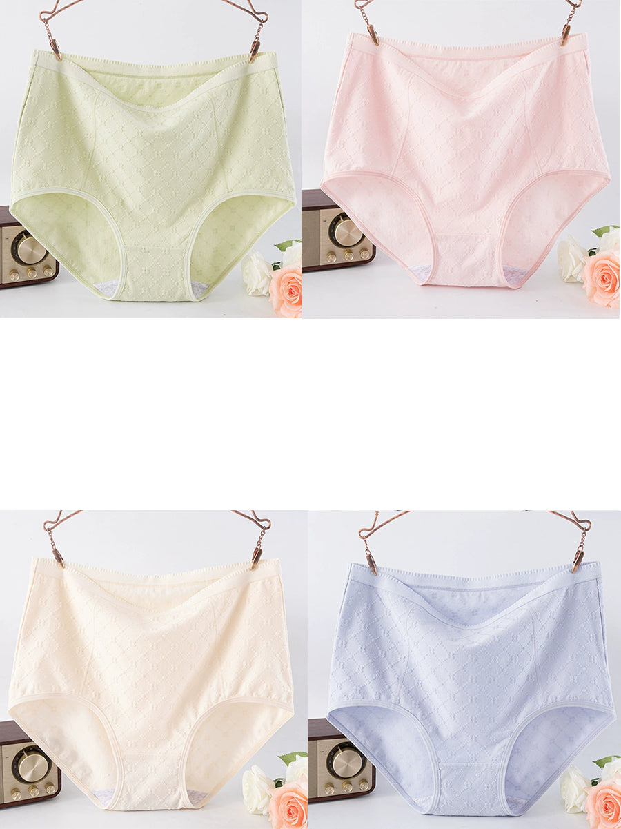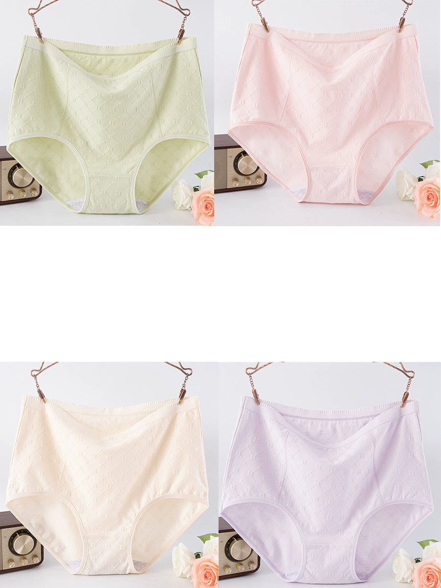Conjunto de 4 peças de calcinha feminina de cintura alta com estampa jacquard artística.