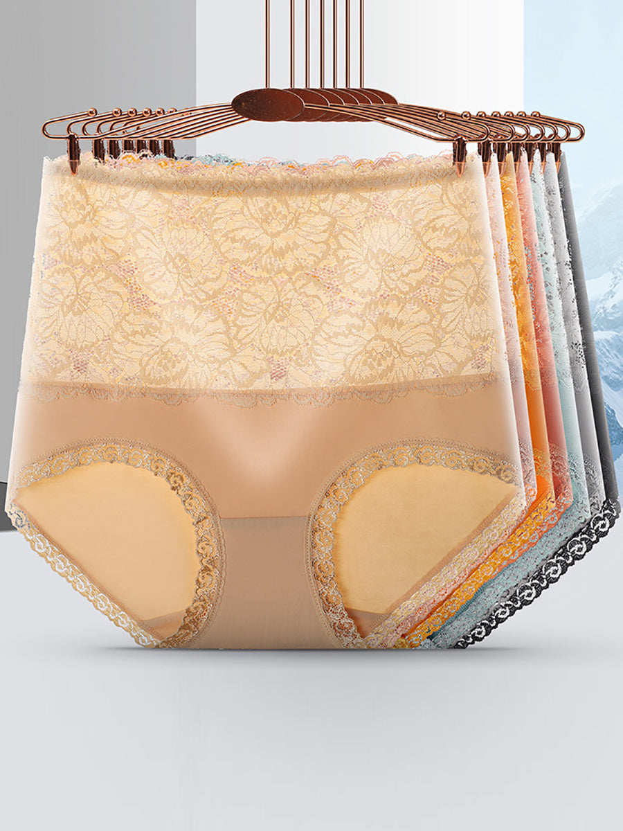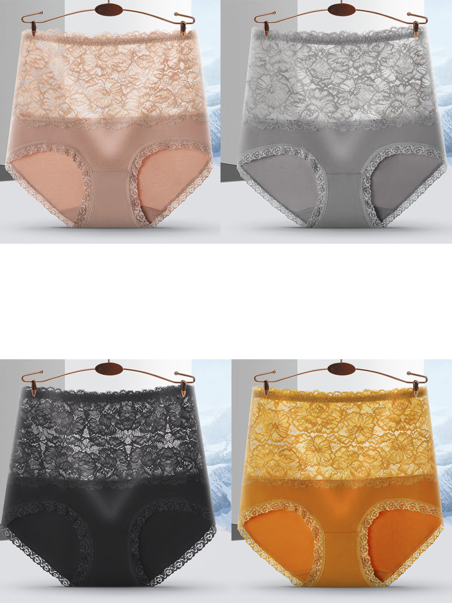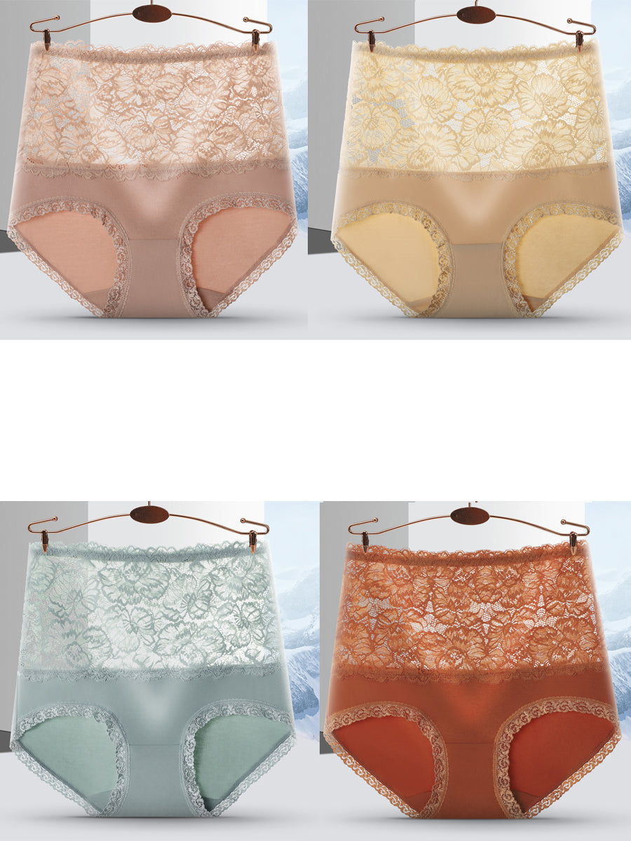 Conjunto de 4 peças de calcinha feminina de renda com cintura alta.
