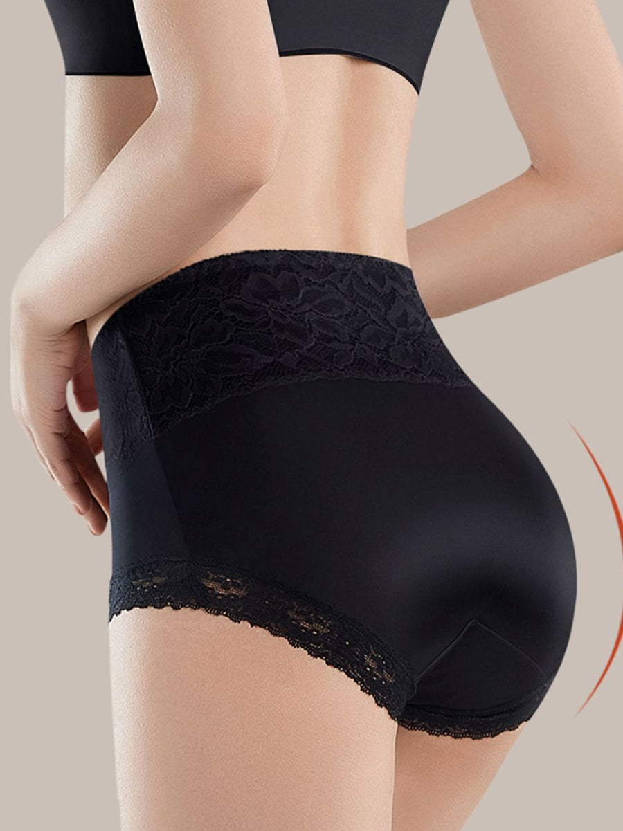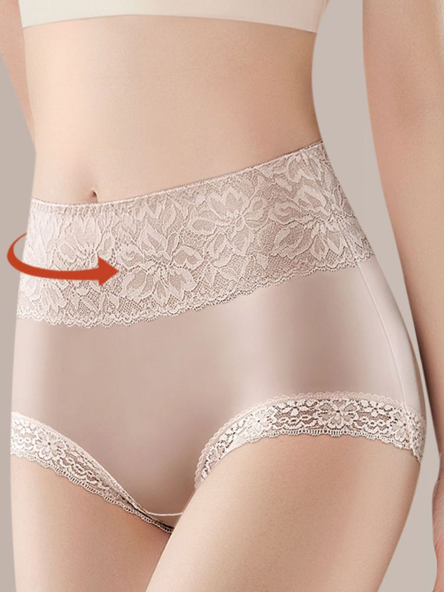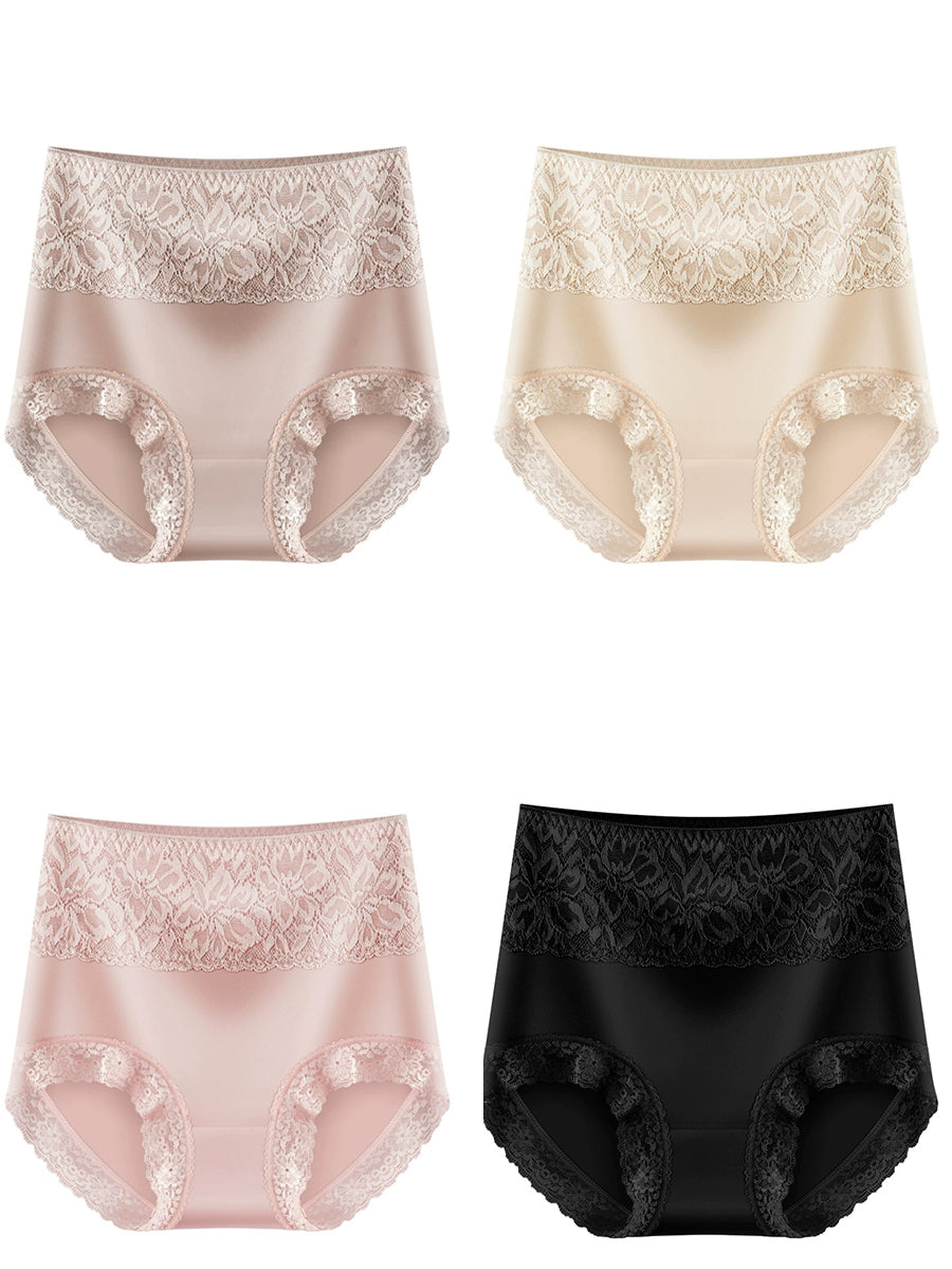 Conjunto de 4 peças de calcinha feminina de renda com cintura alta.