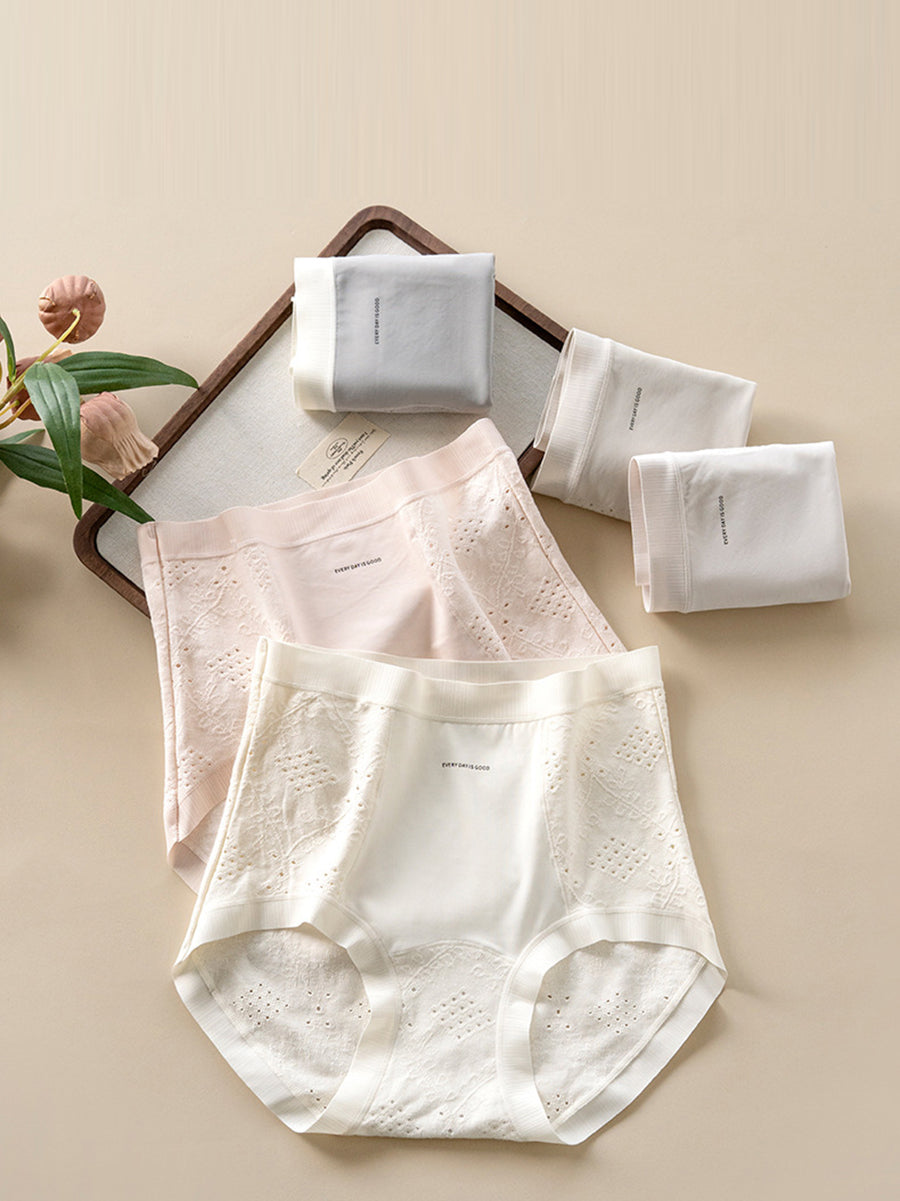 Conjunto de 4 peças de calcinha feminina casual de cintura alta em jacquard.