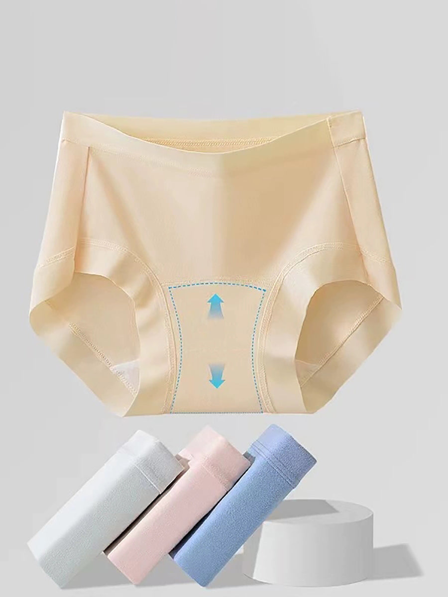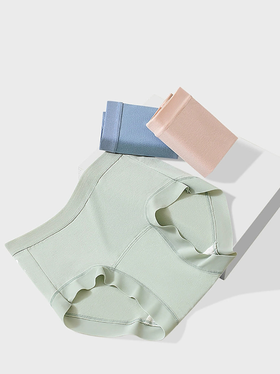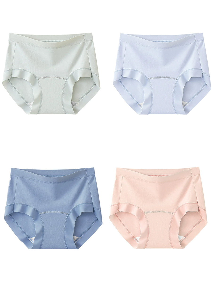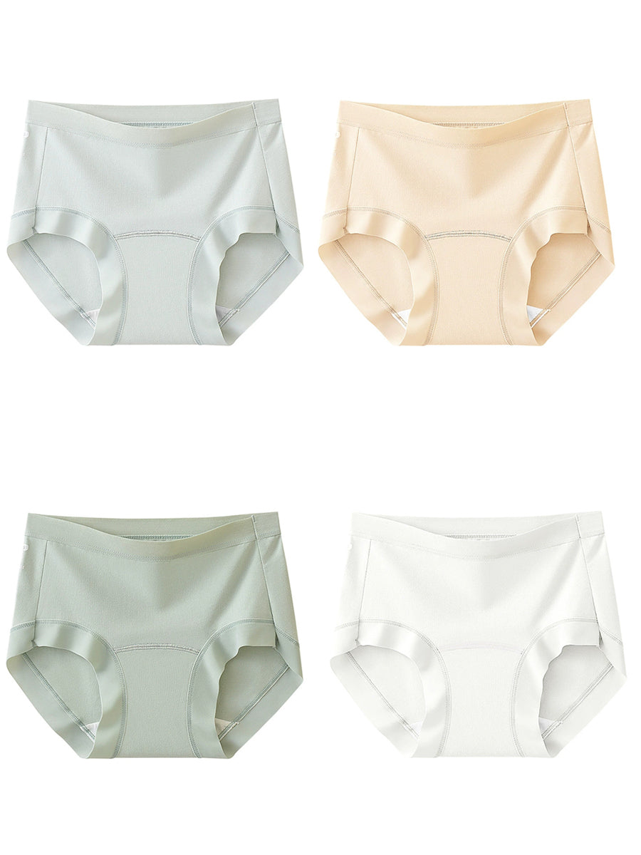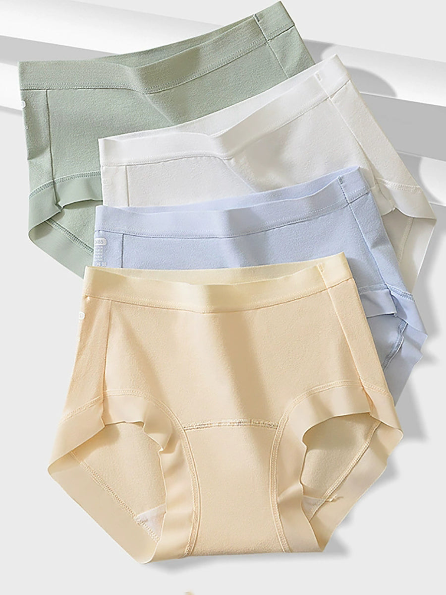 Conjunto de 4 peças de calcinhas femininas casuais de cintura alta em cor lisa.
