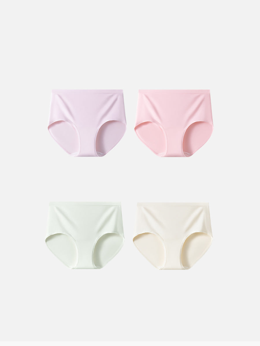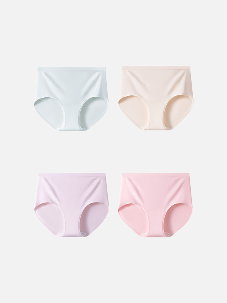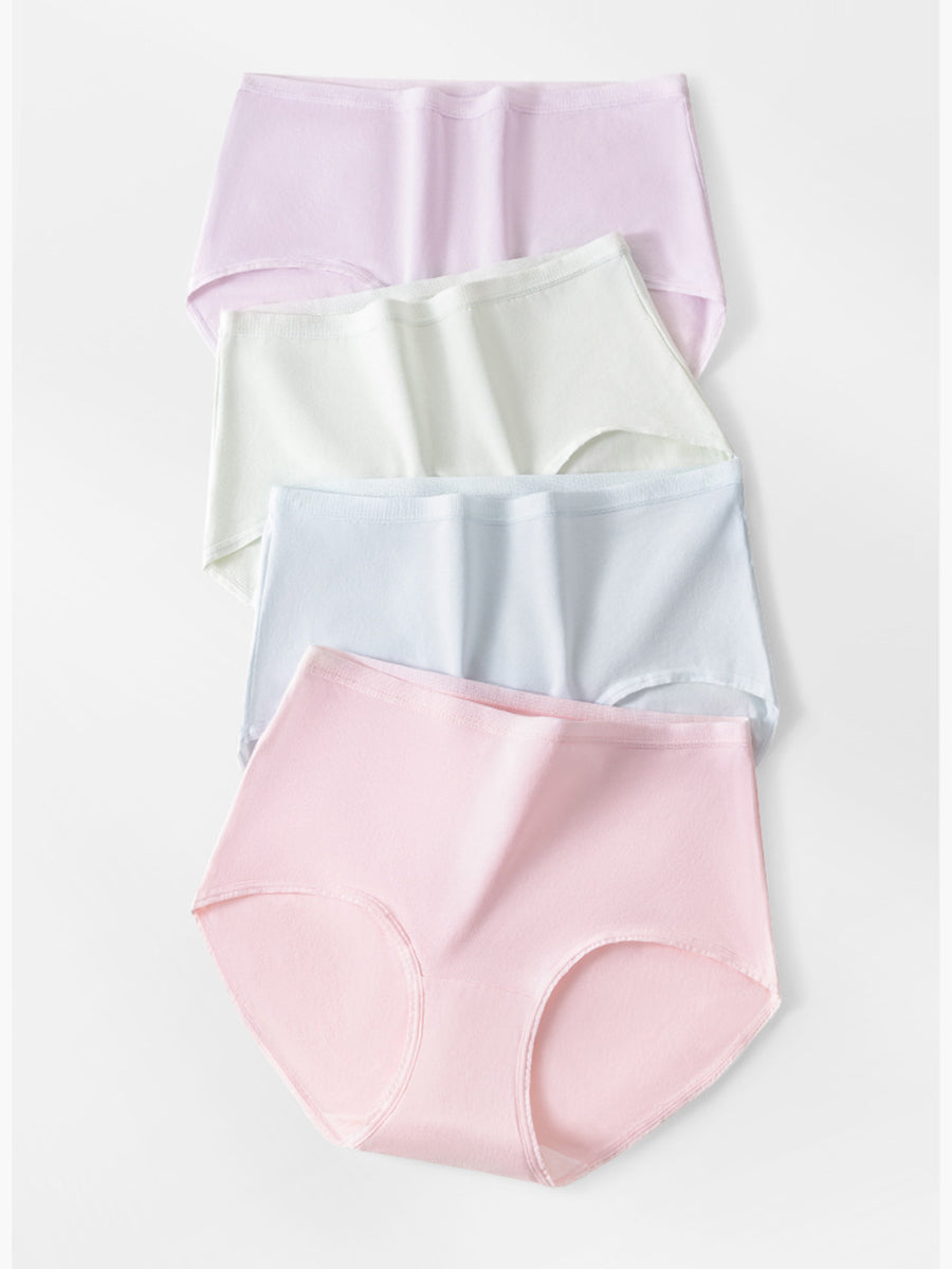 Conjunto de 4 peças de calcinhas femininas casuais de cintura alta em cor lisa.
