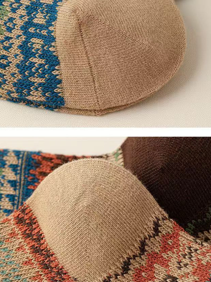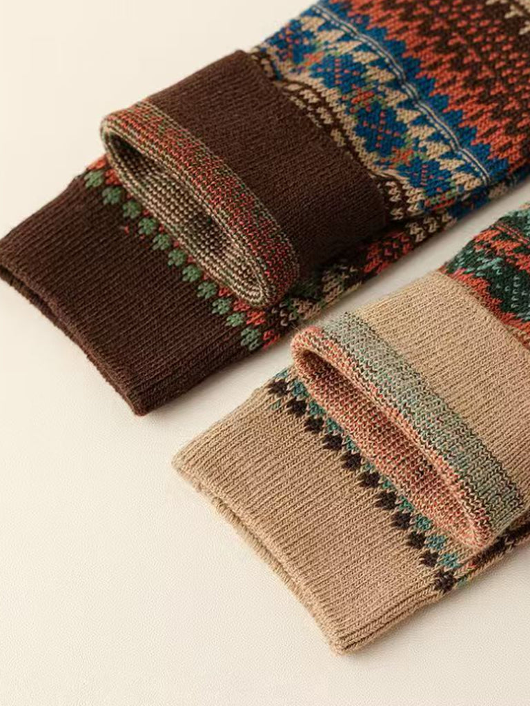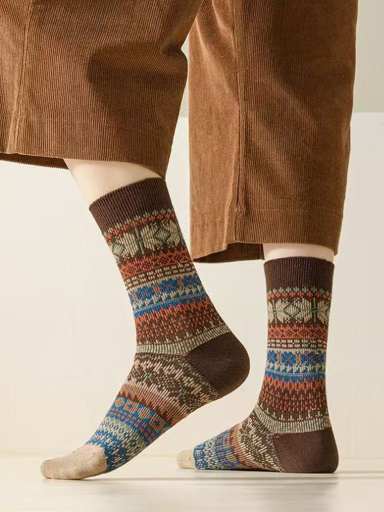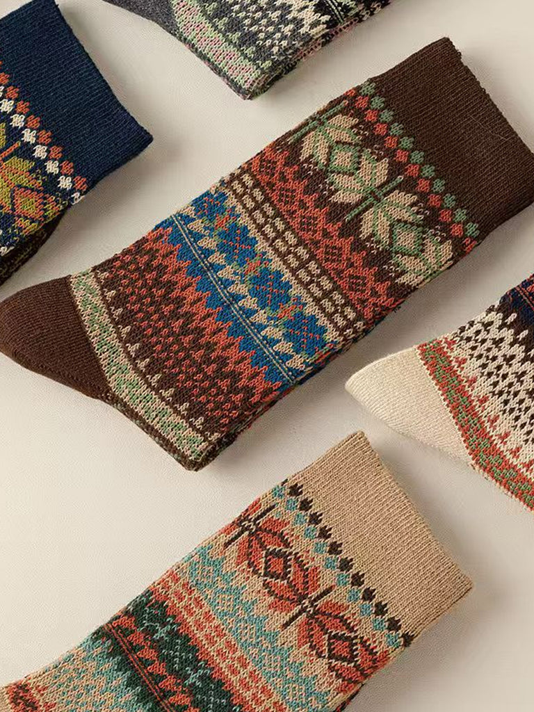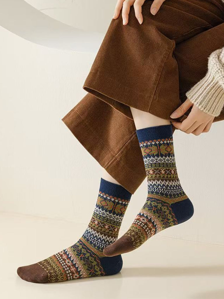 6 pares de meias femininas vintage de algodão listradas de inverno