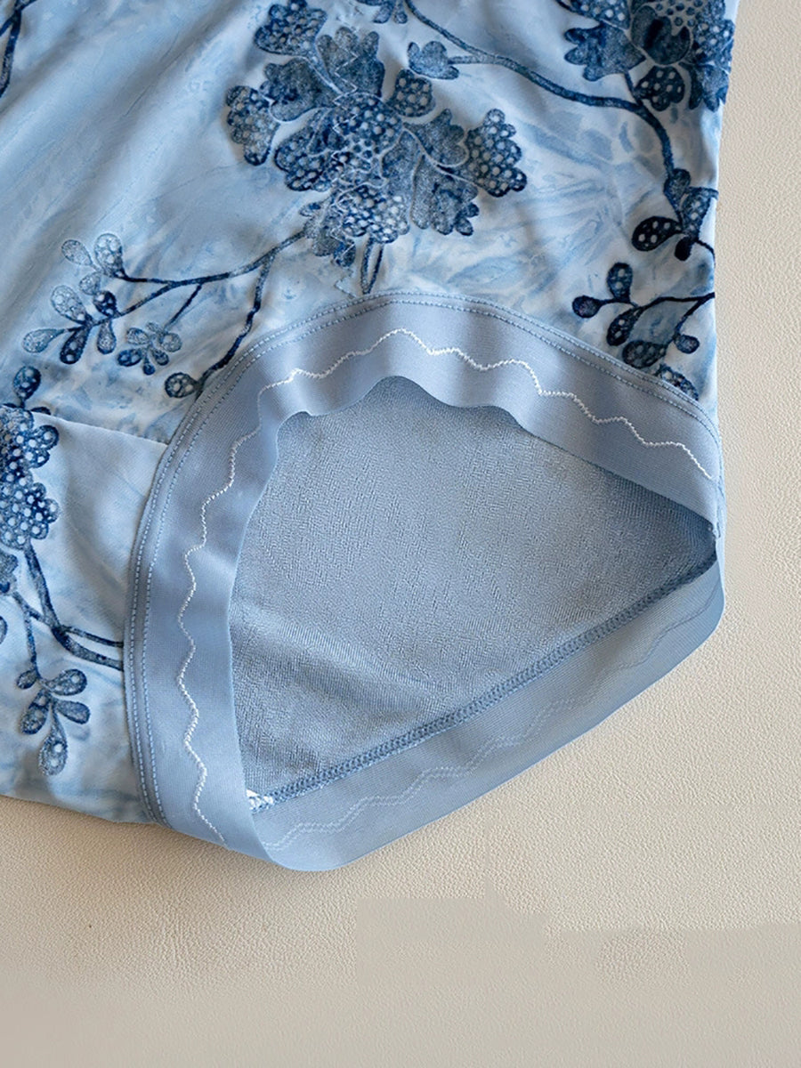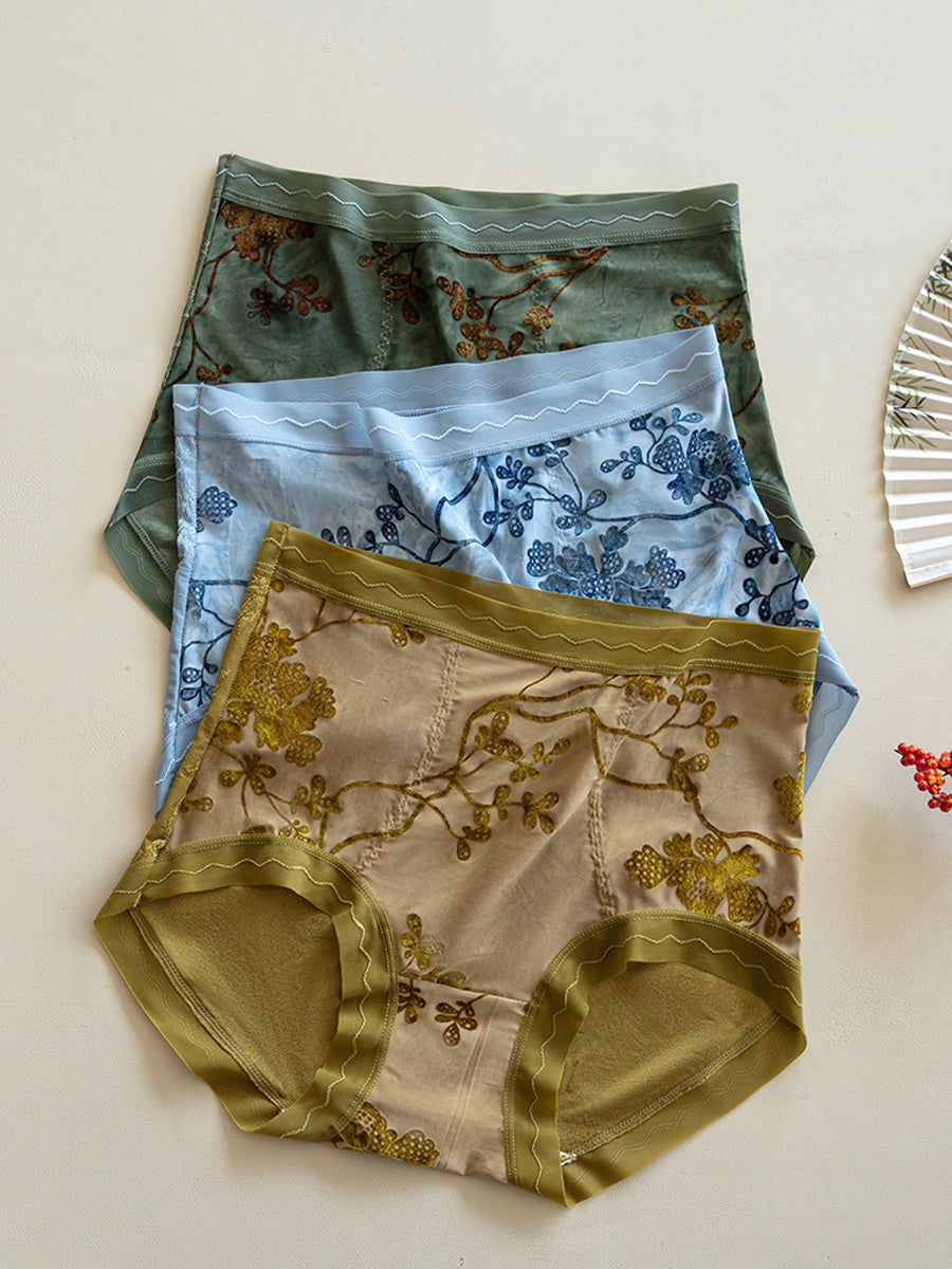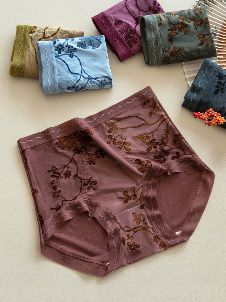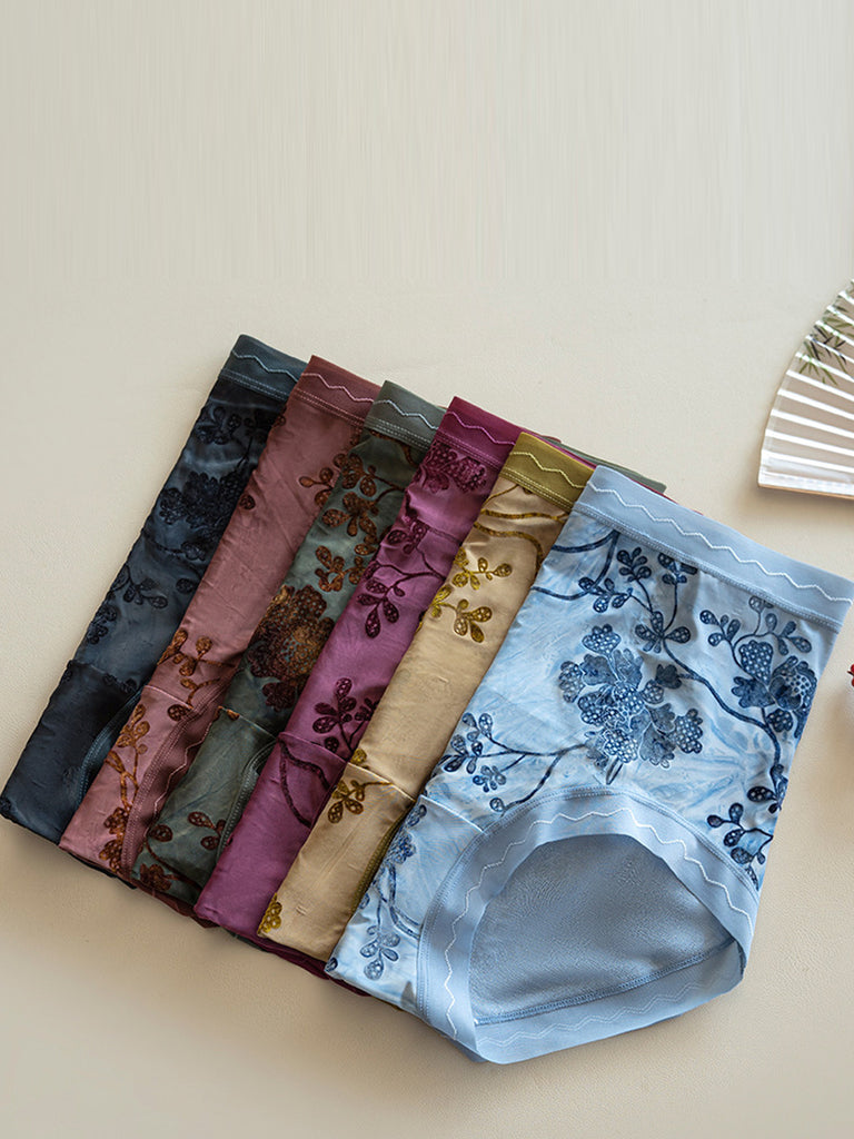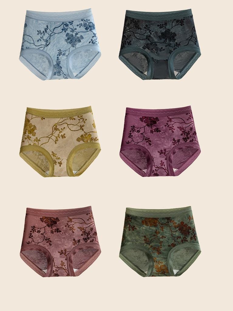 Conjunto de 6 peças de calcinhas femininas de cintura alta com estampa floral em jacquard.