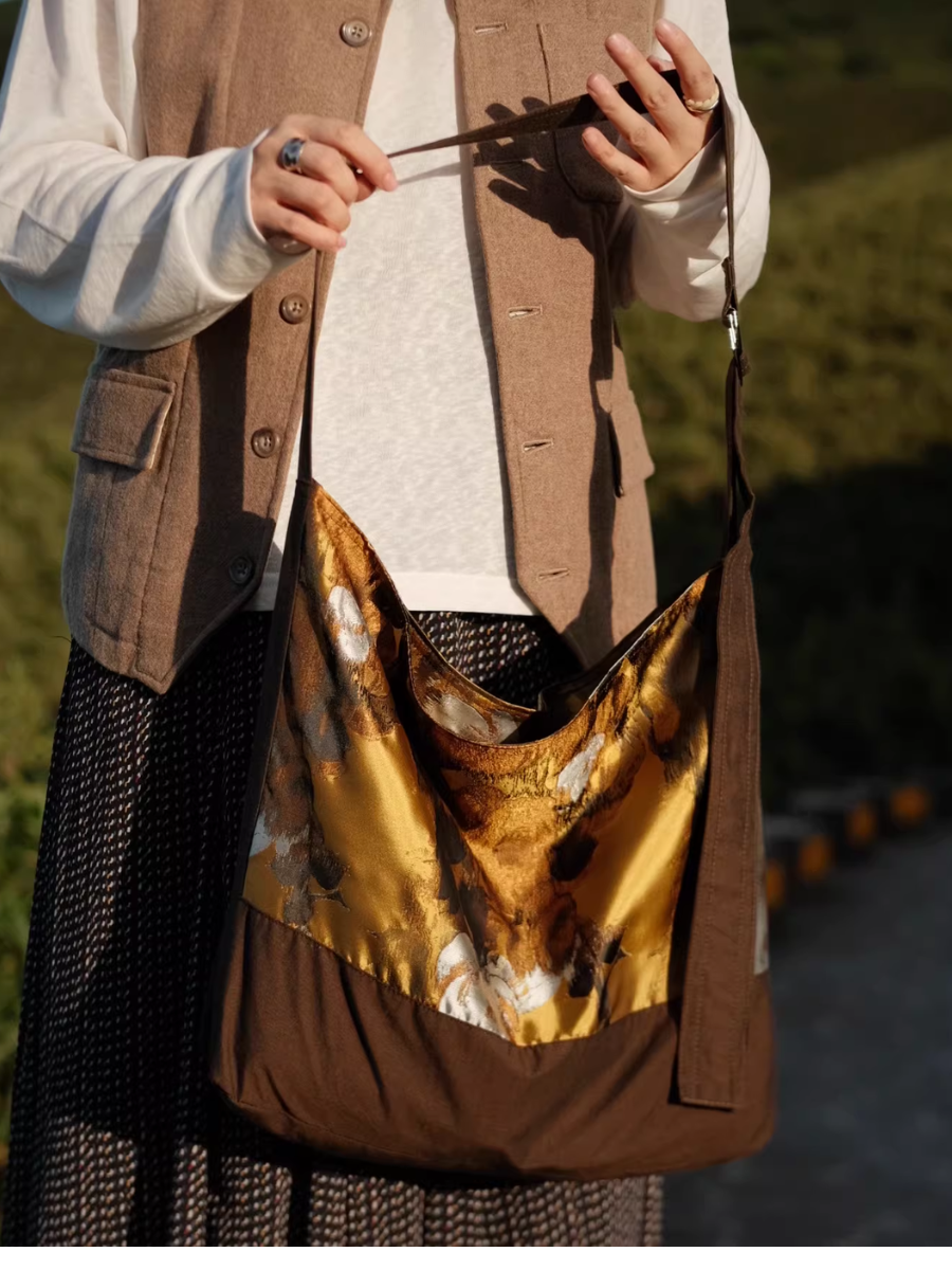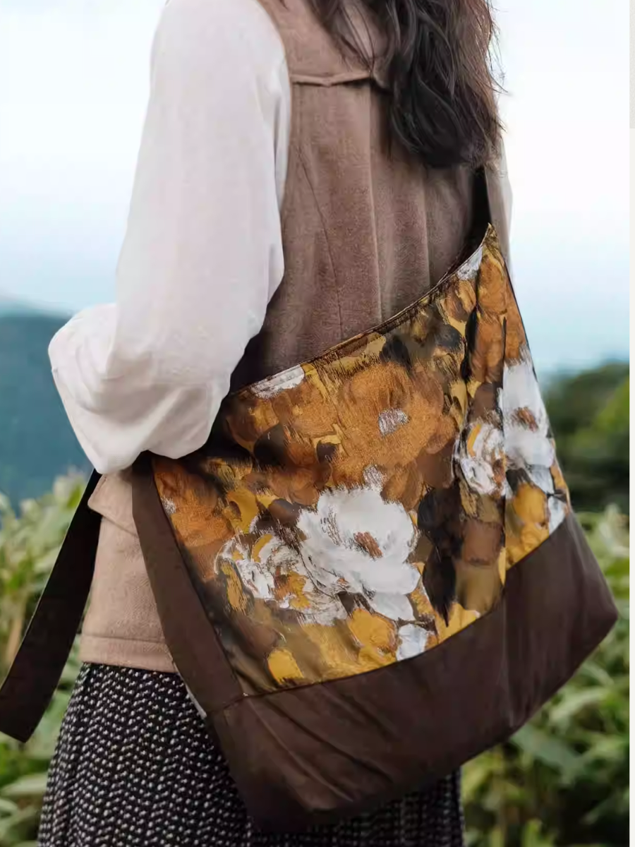 03052 Bolsa Transversal com Estampa Floral e Detalhes Recortados