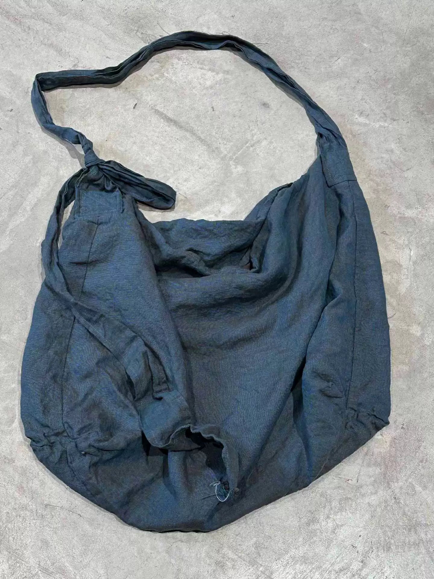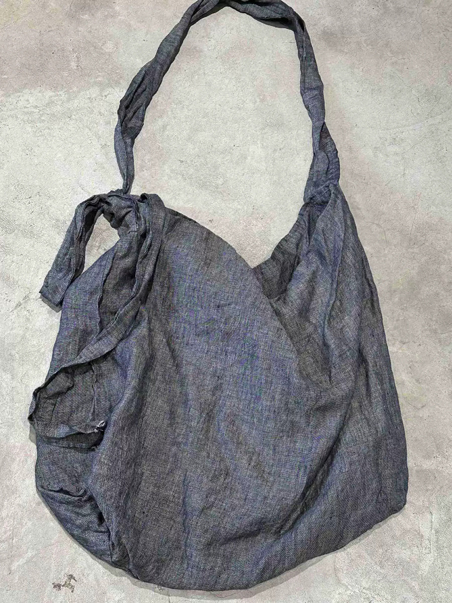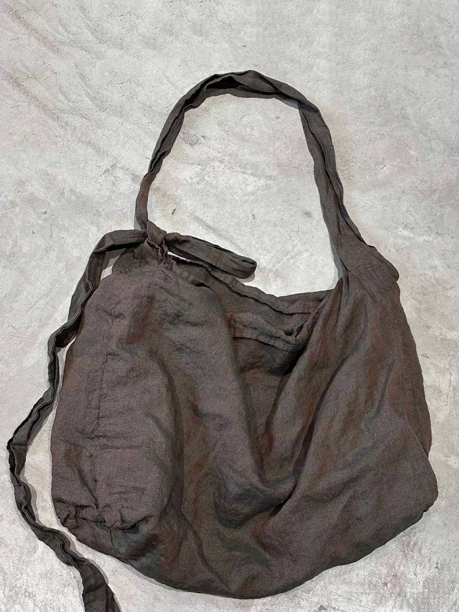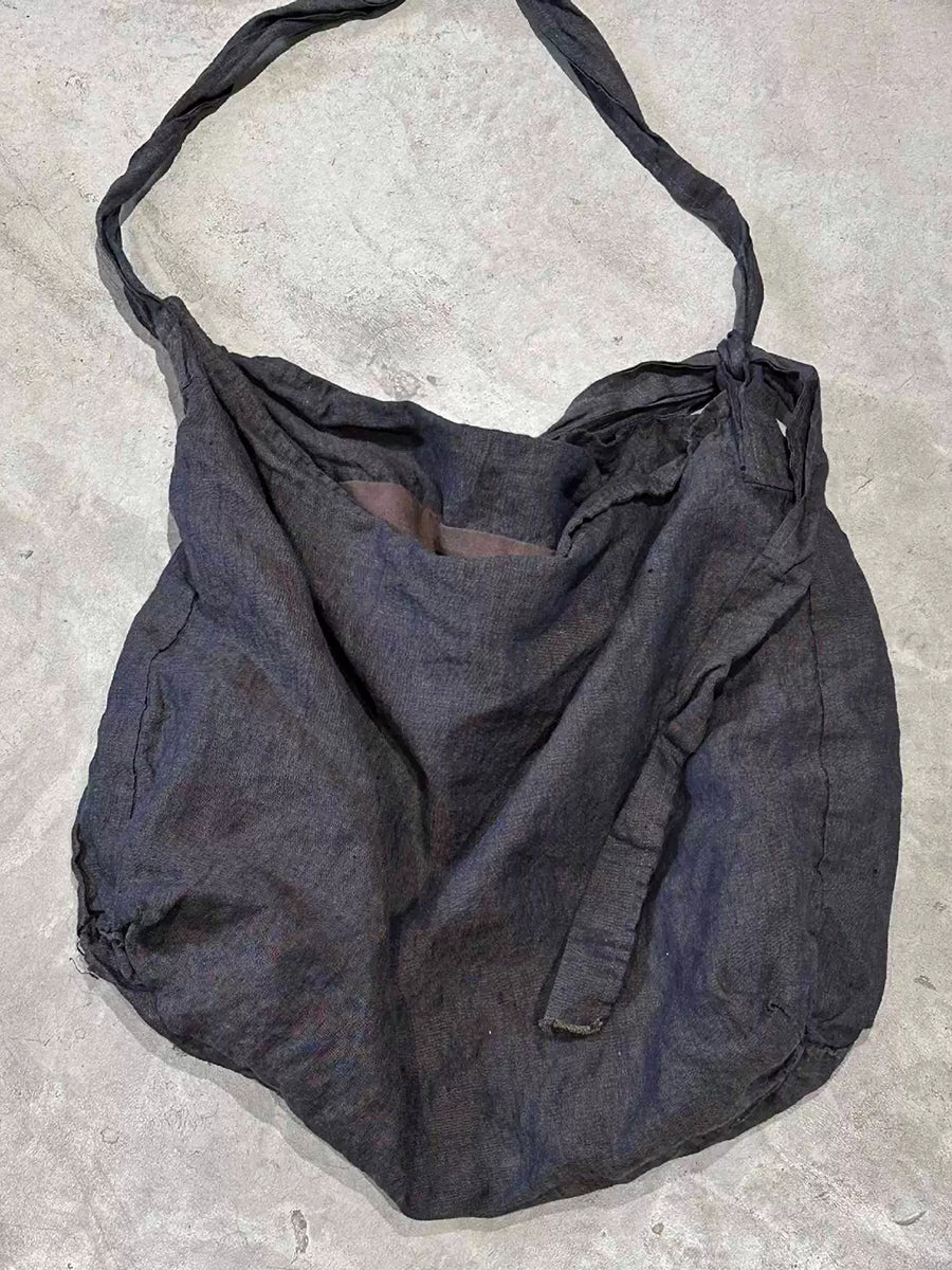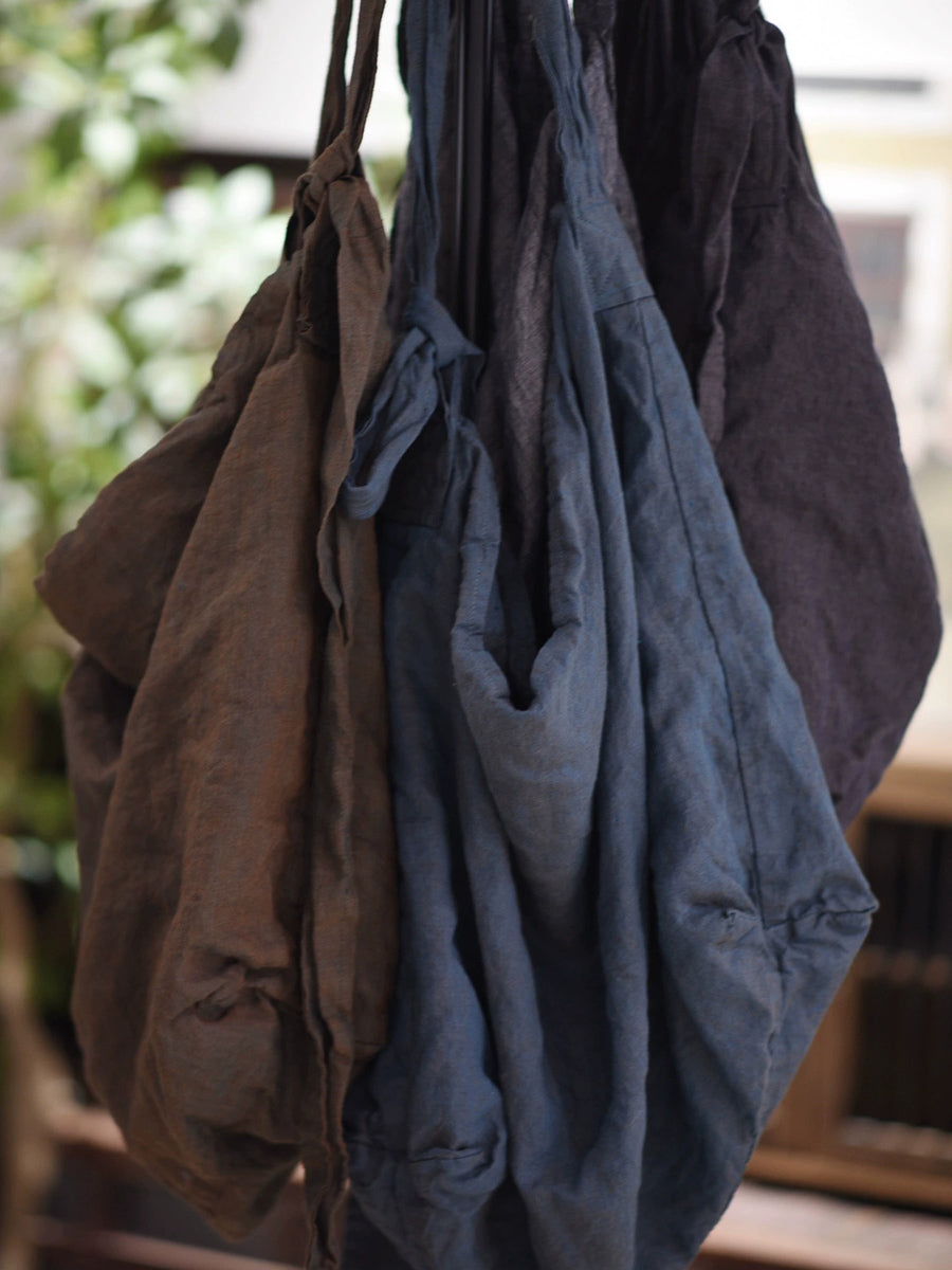 Bolsa de ombro vintage de linho com alça ajustável e grande capacidade.