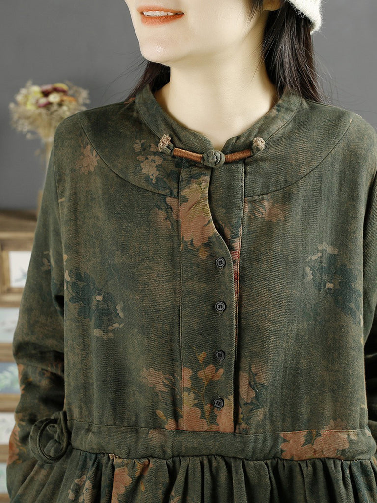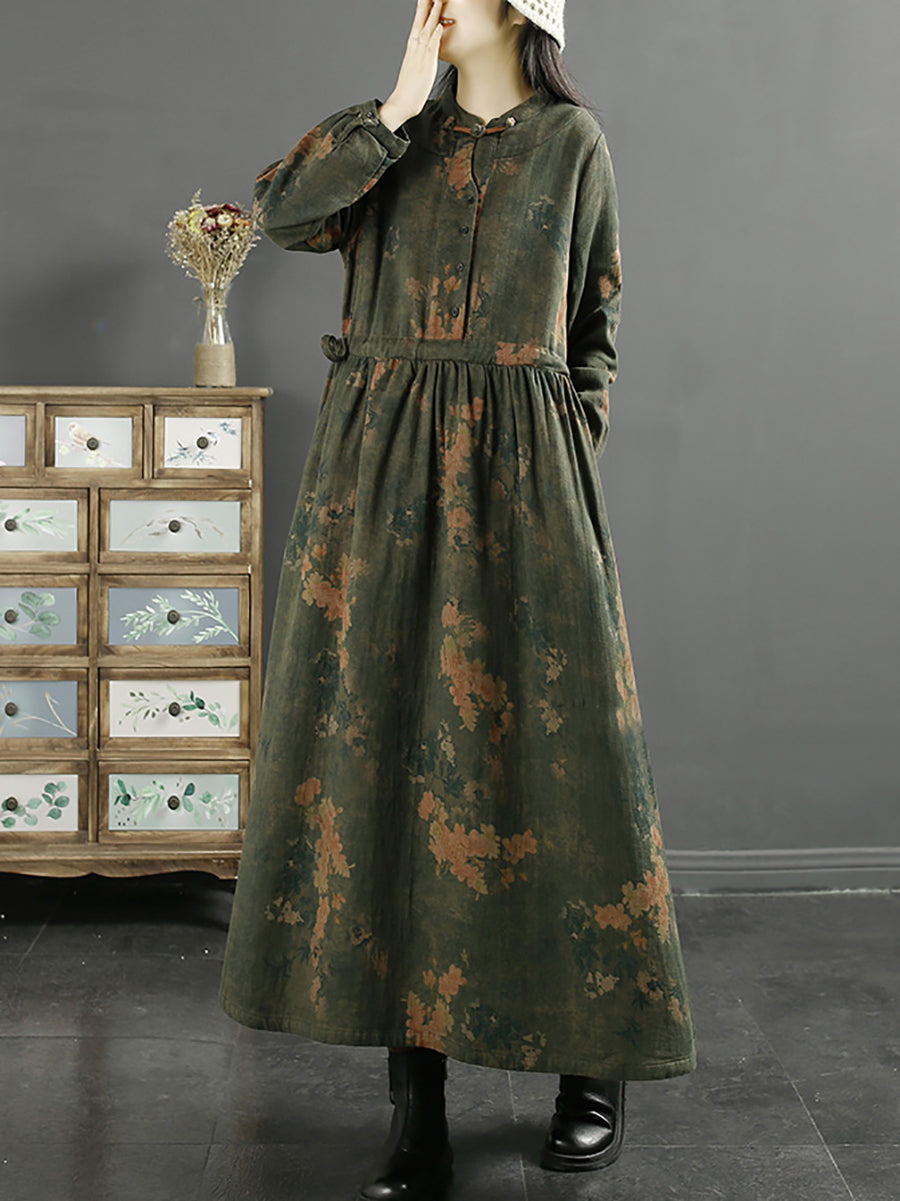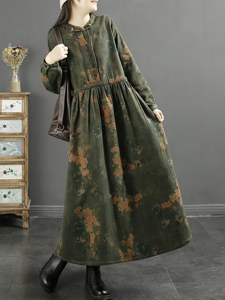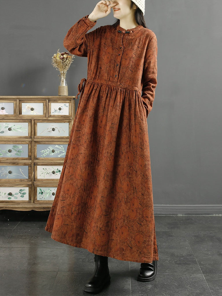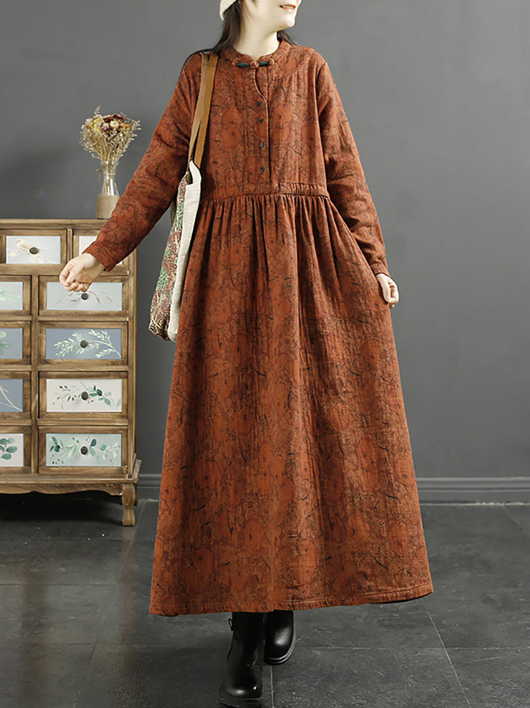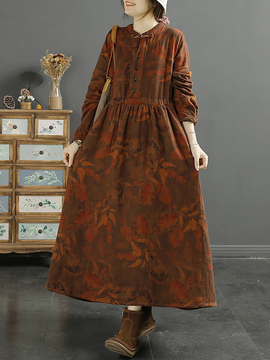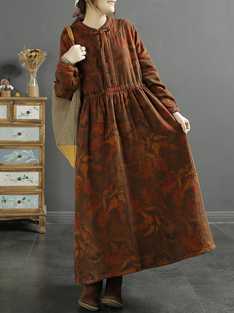 Vestido de algodão com estampa de folhas vintage de outono plus size para mulheres