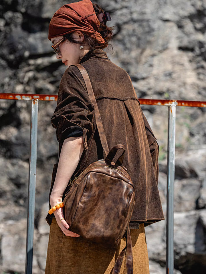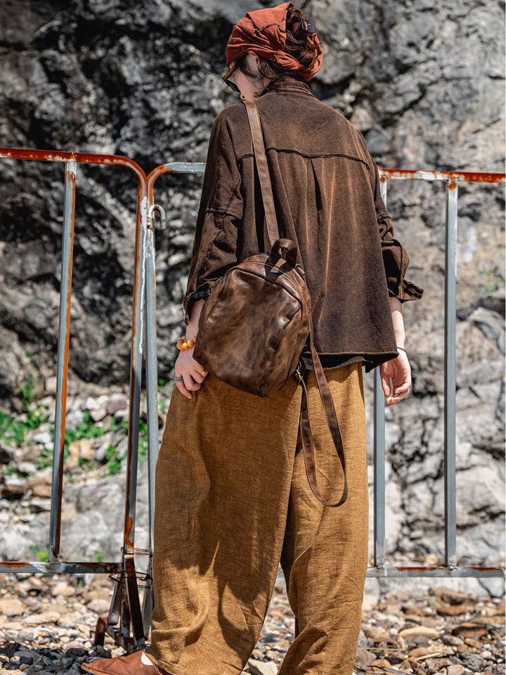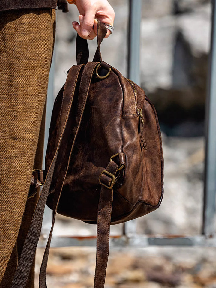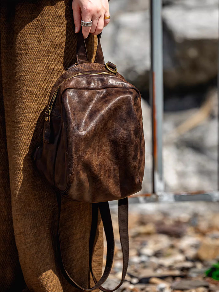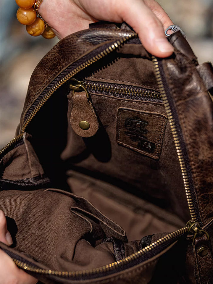 Mochila vintage artesanal em couro encerado a óleo, código 041204.