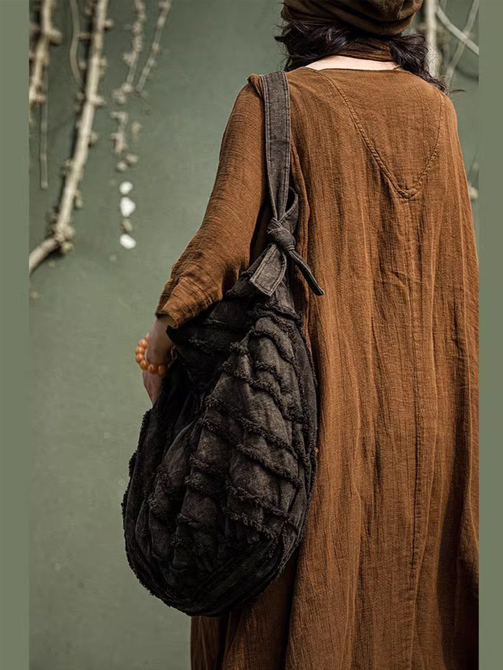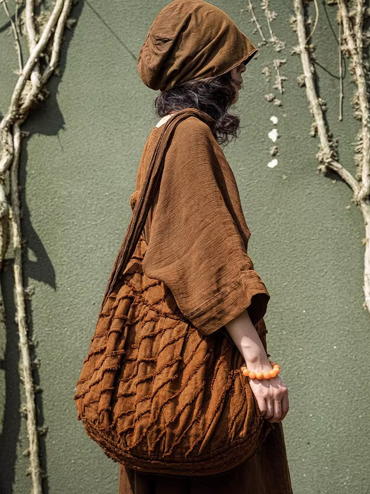 030410 Bolsa Transversal Vintage com Franjas e Grande Capacidade