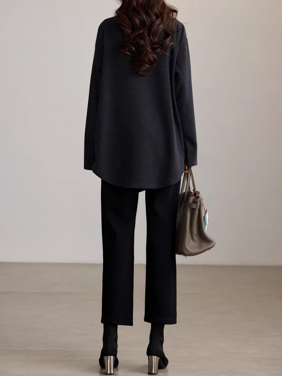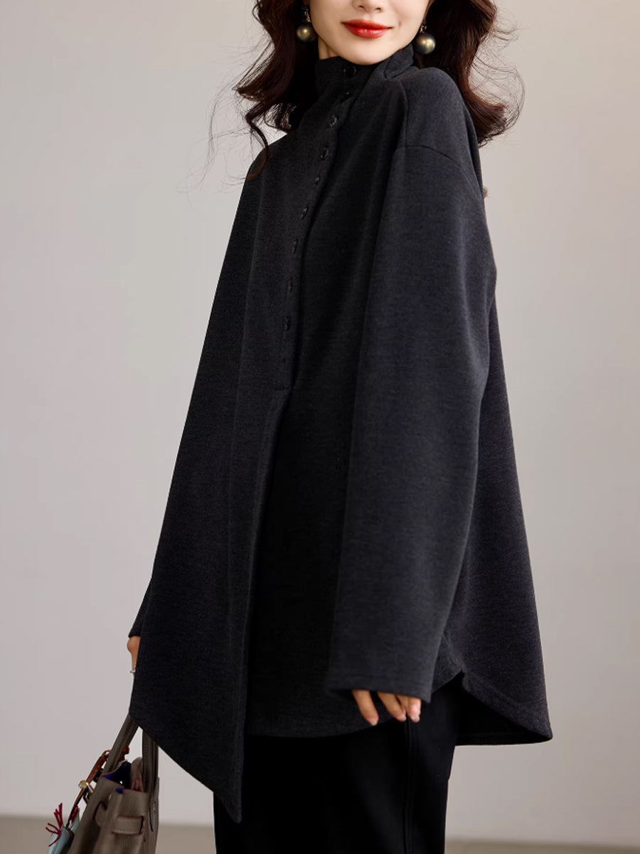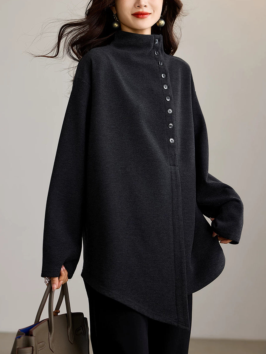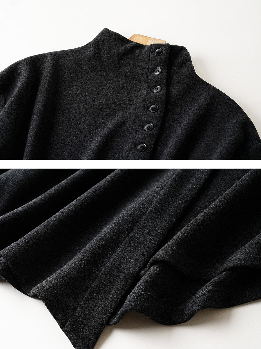 Blusa feminina de gola alta com botões, estilo artístico para o outono.
