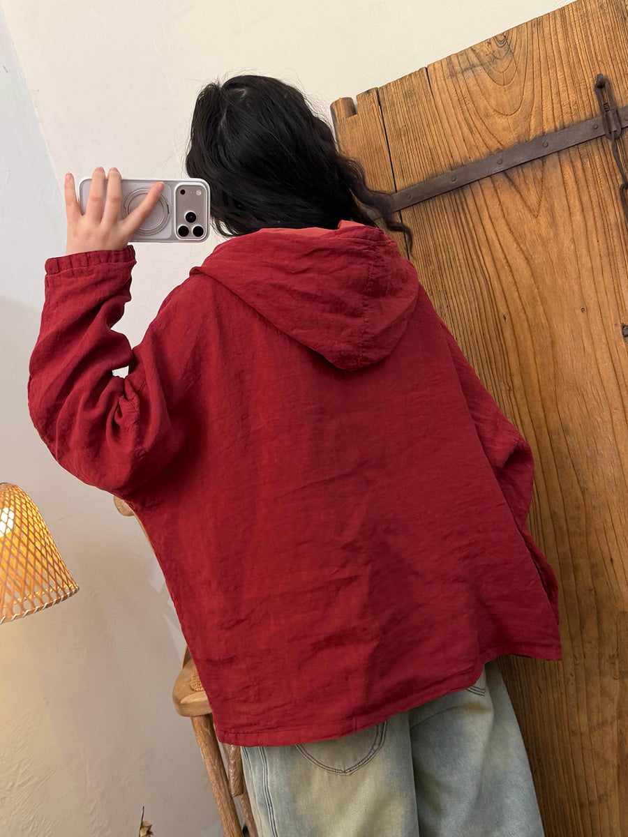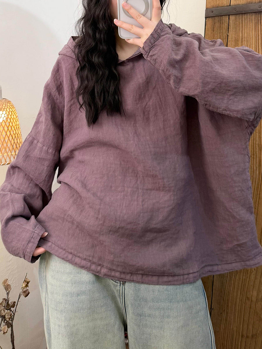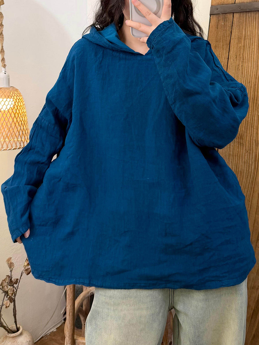 Moletom feminino Artsy Autumn em linho de cor pura com capuz.