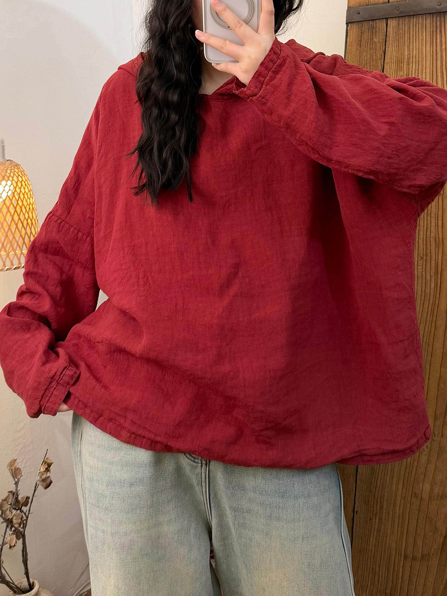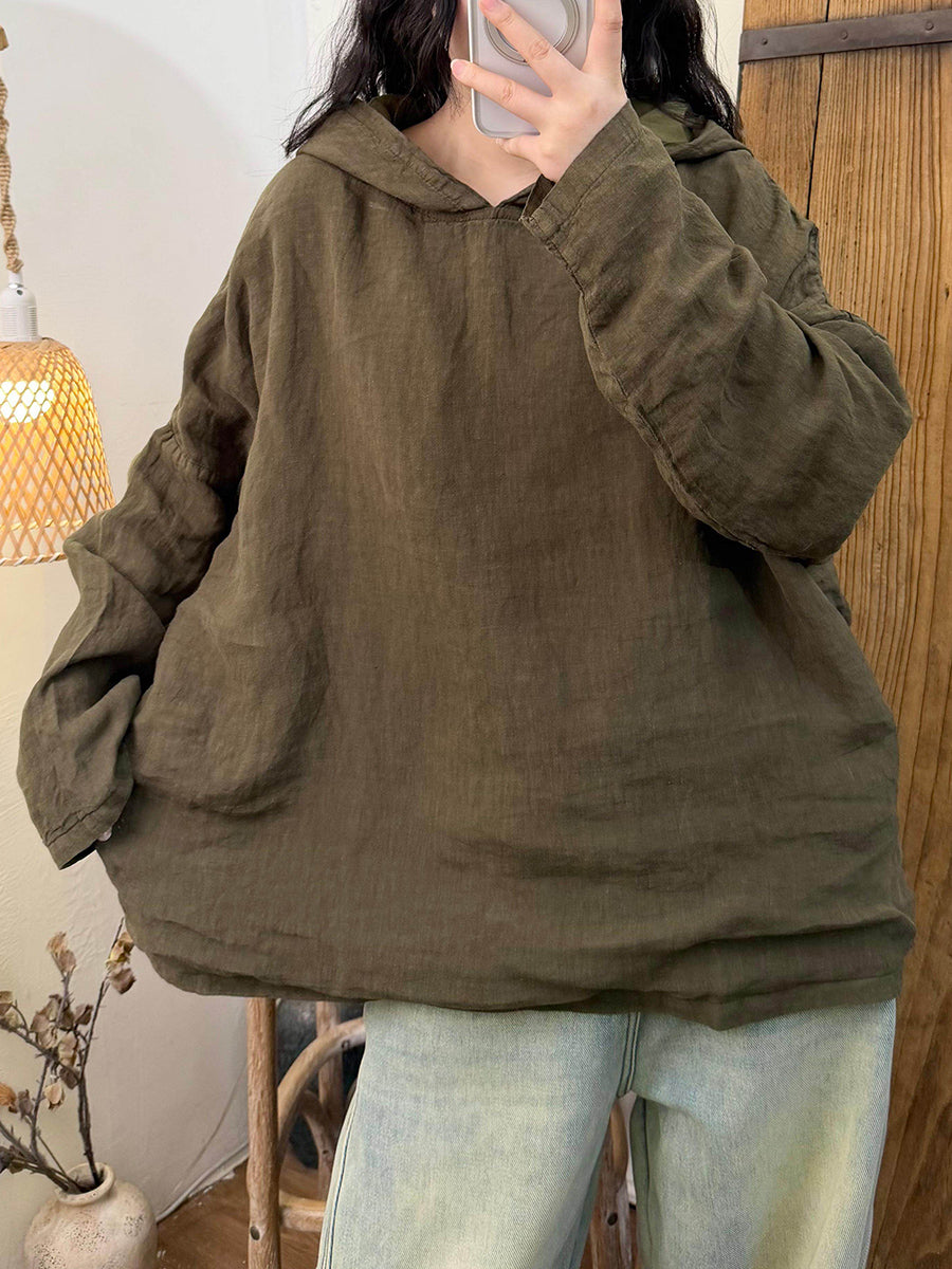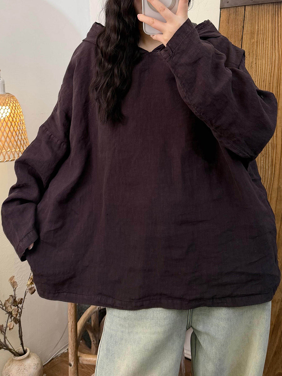 Moletom feminino Artsy Autumn em linho de cor pura com capuz.
