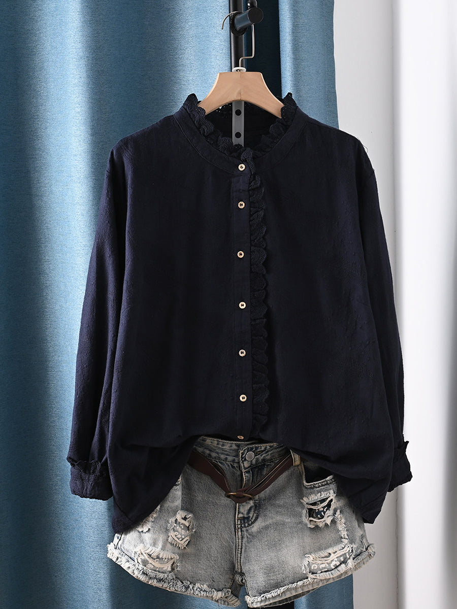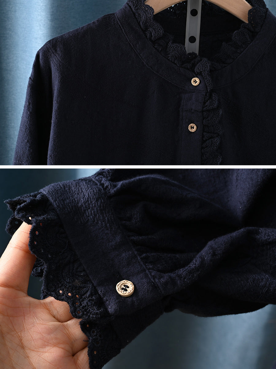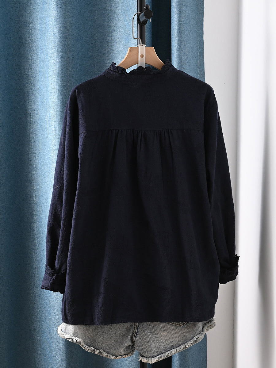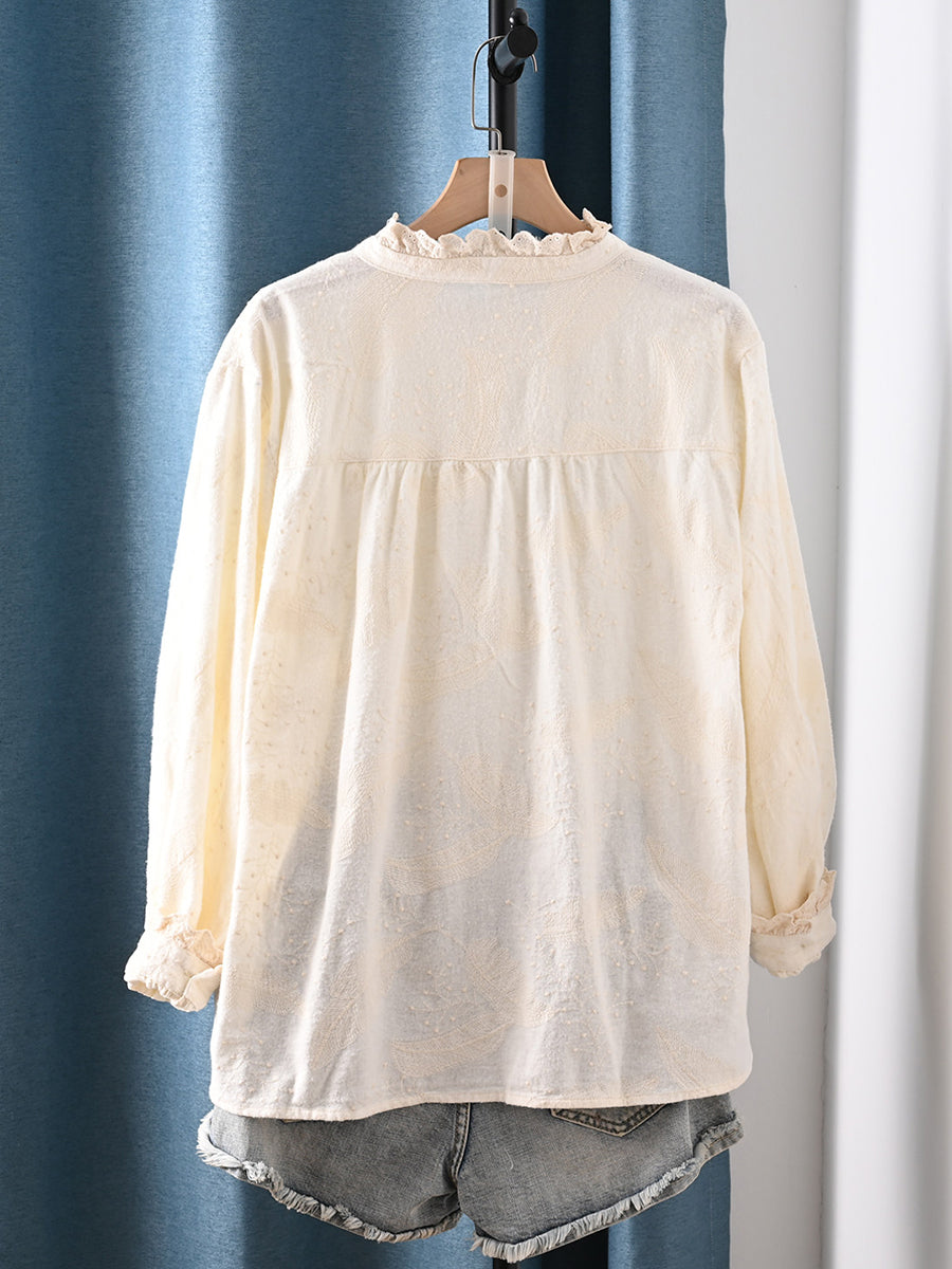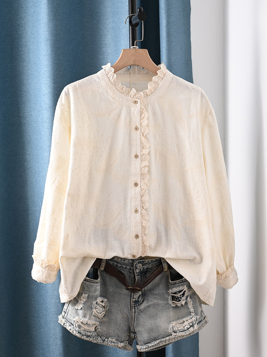 Camisa feminina Artsy Spring com bordado em renda, 100% algodão.