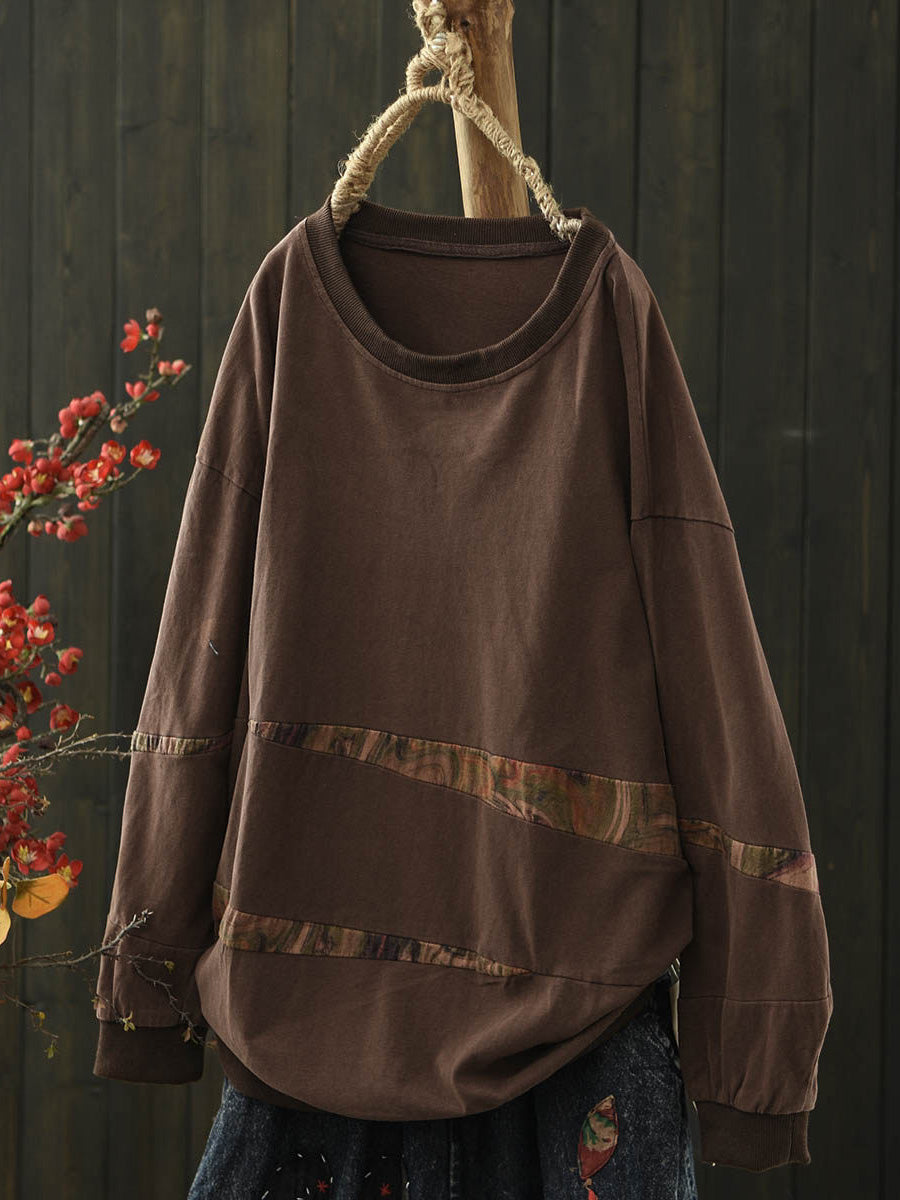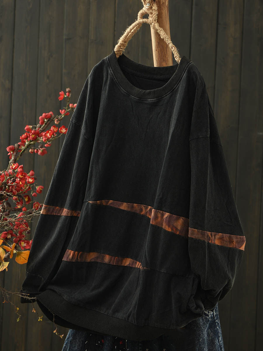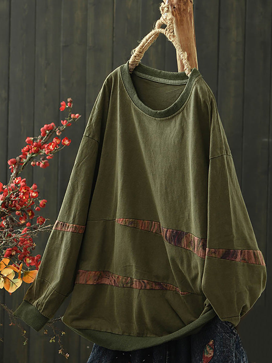 Camisa feminina Artsy Spring com listras e gola dobrável em algodão.