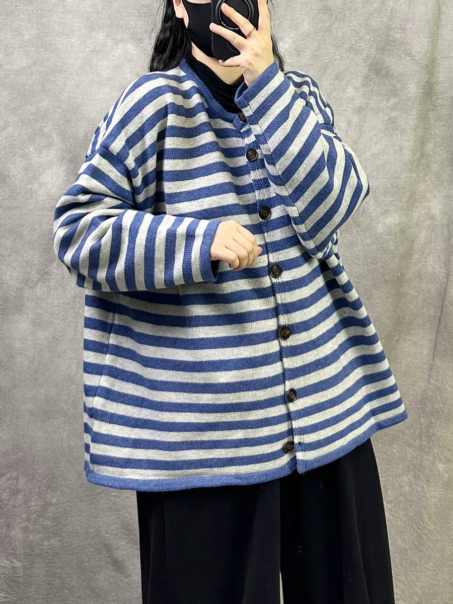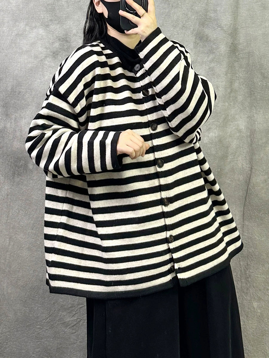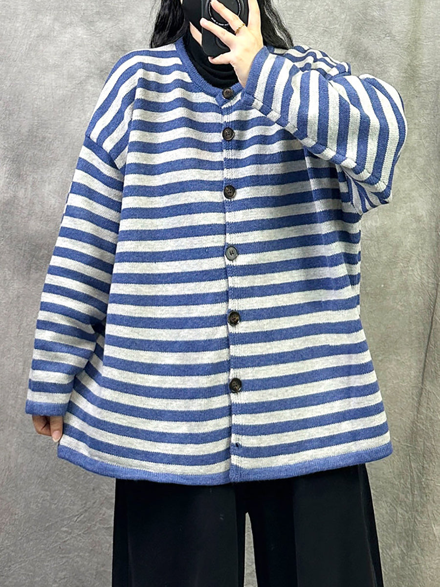 Casaco feminino Artsy Spring com listras e gola redonda em algodão.