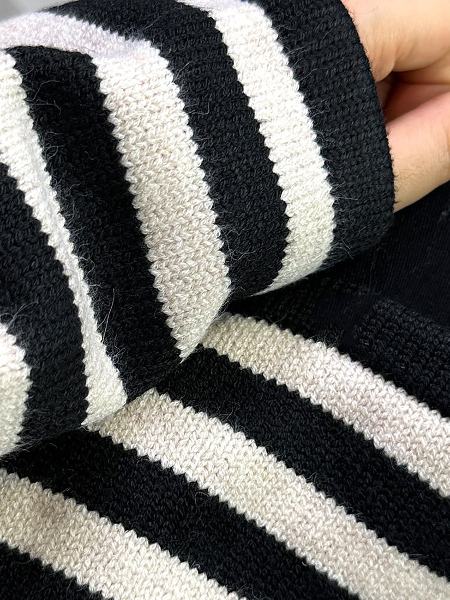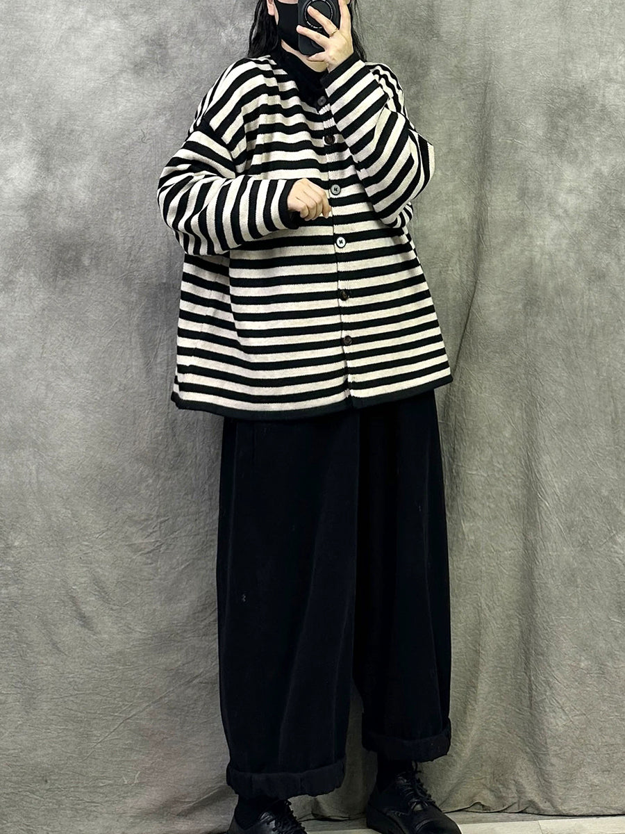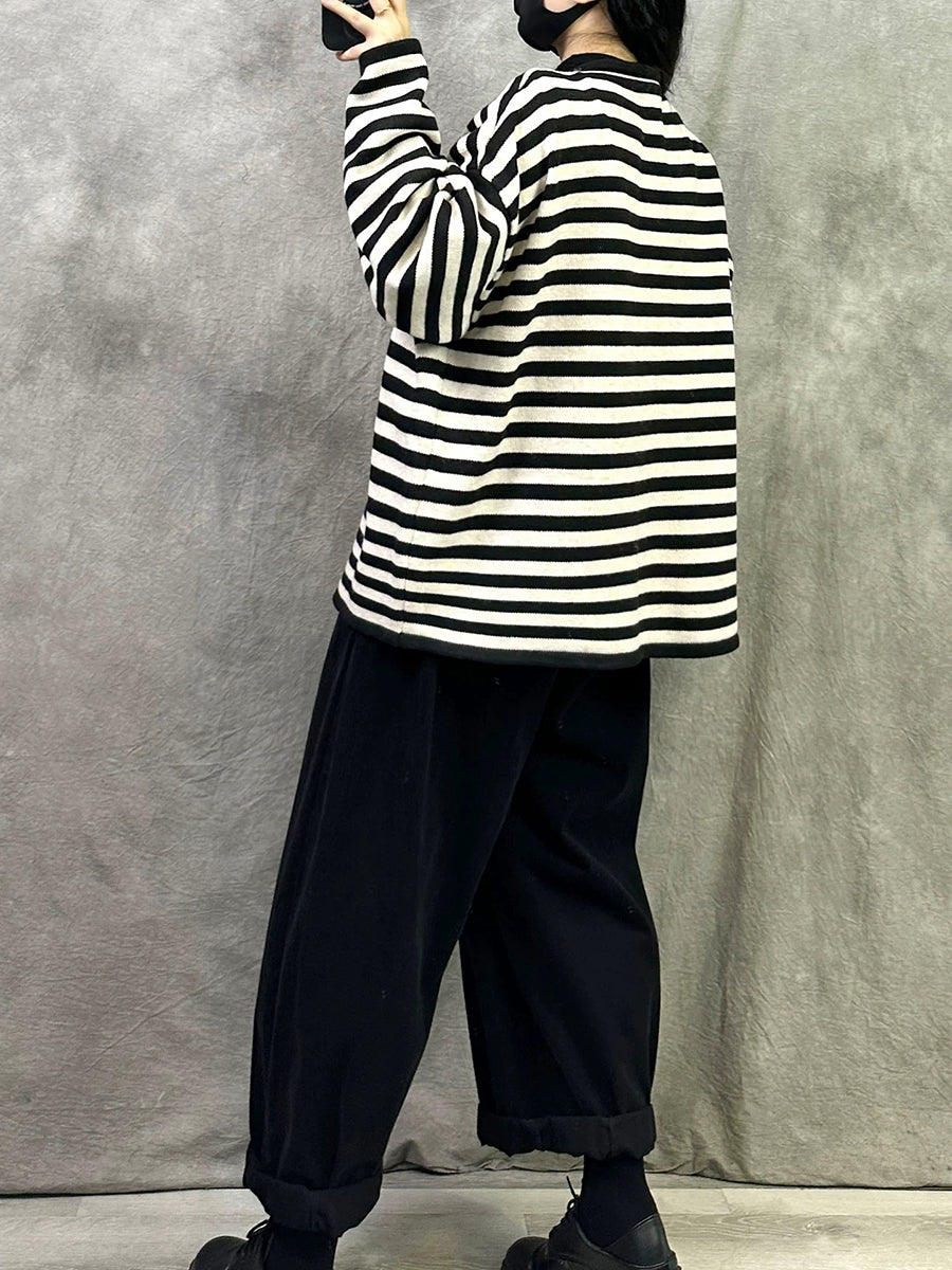 Casaco feminino Artsy Spring com listras e gola redonda em algodão.