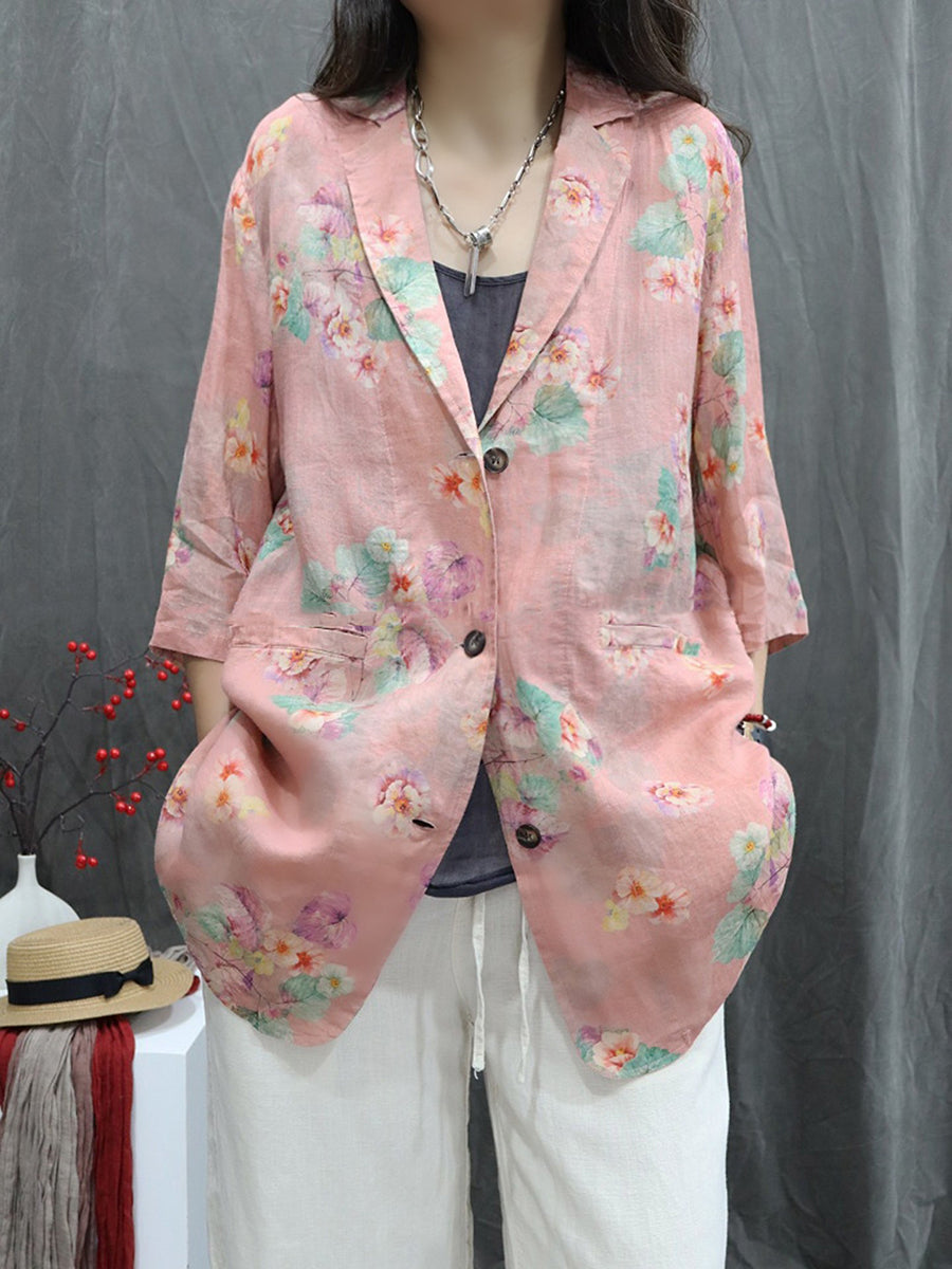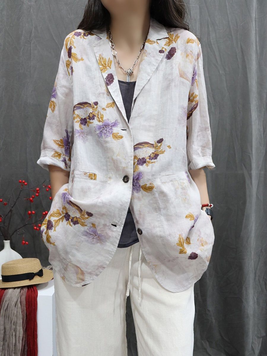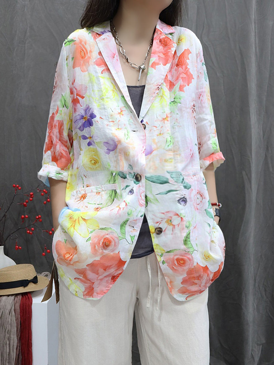 Casaco feminino de verão com estampa floral artística, 100% rami.