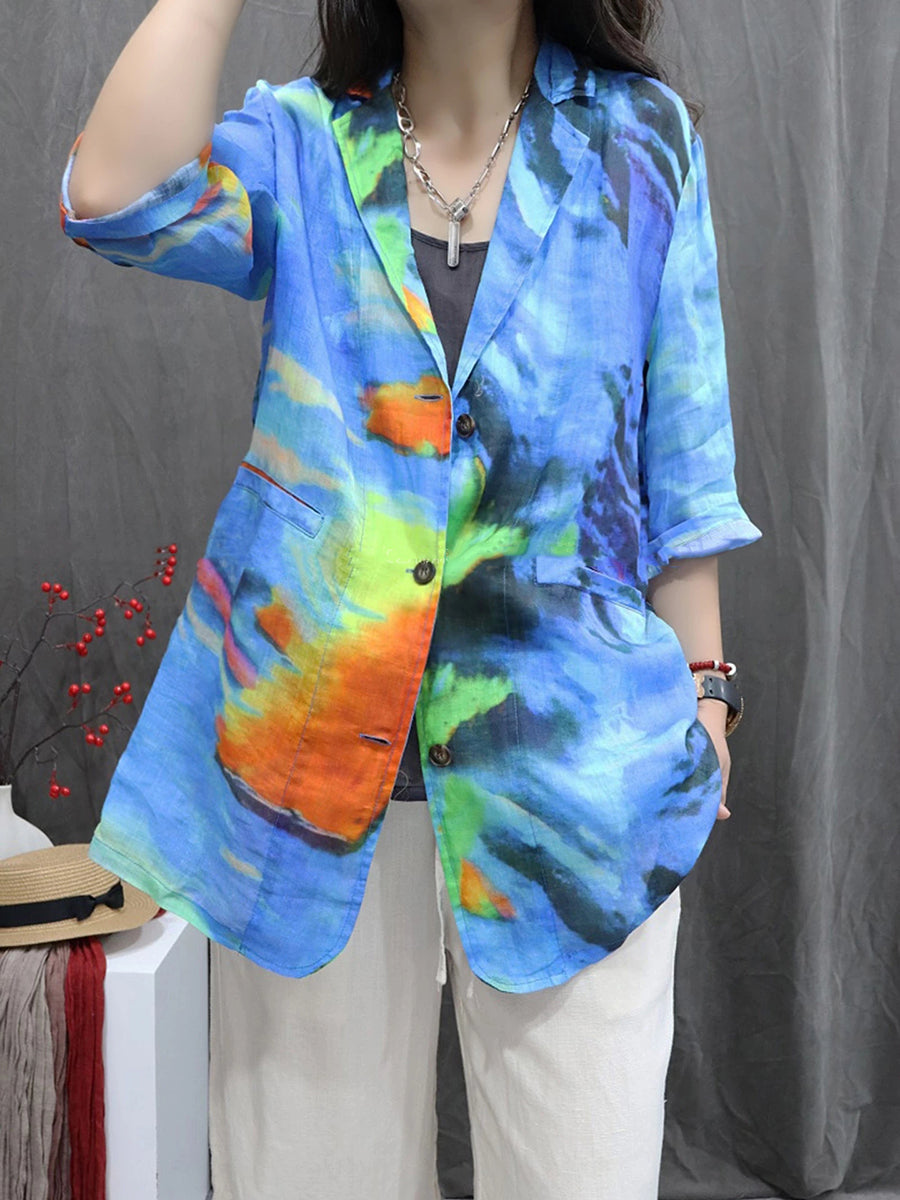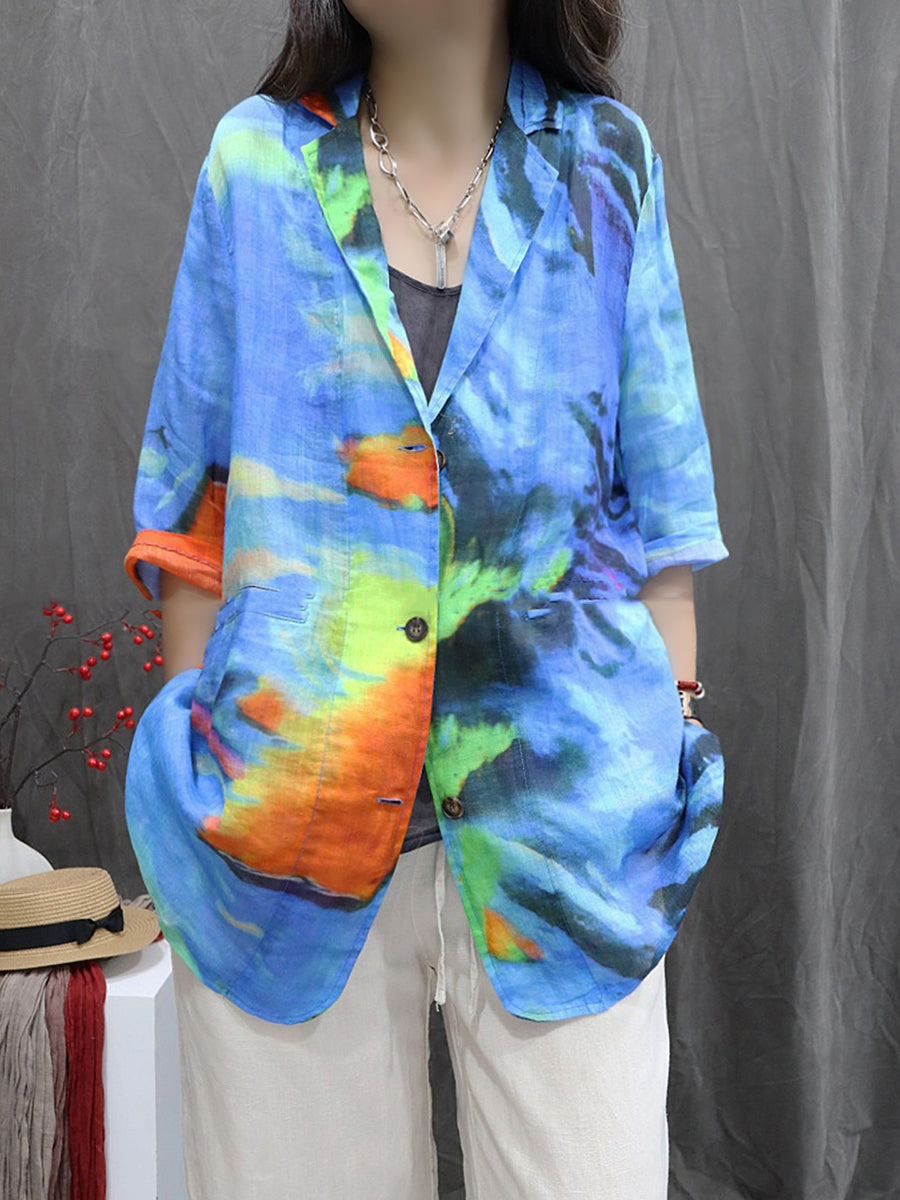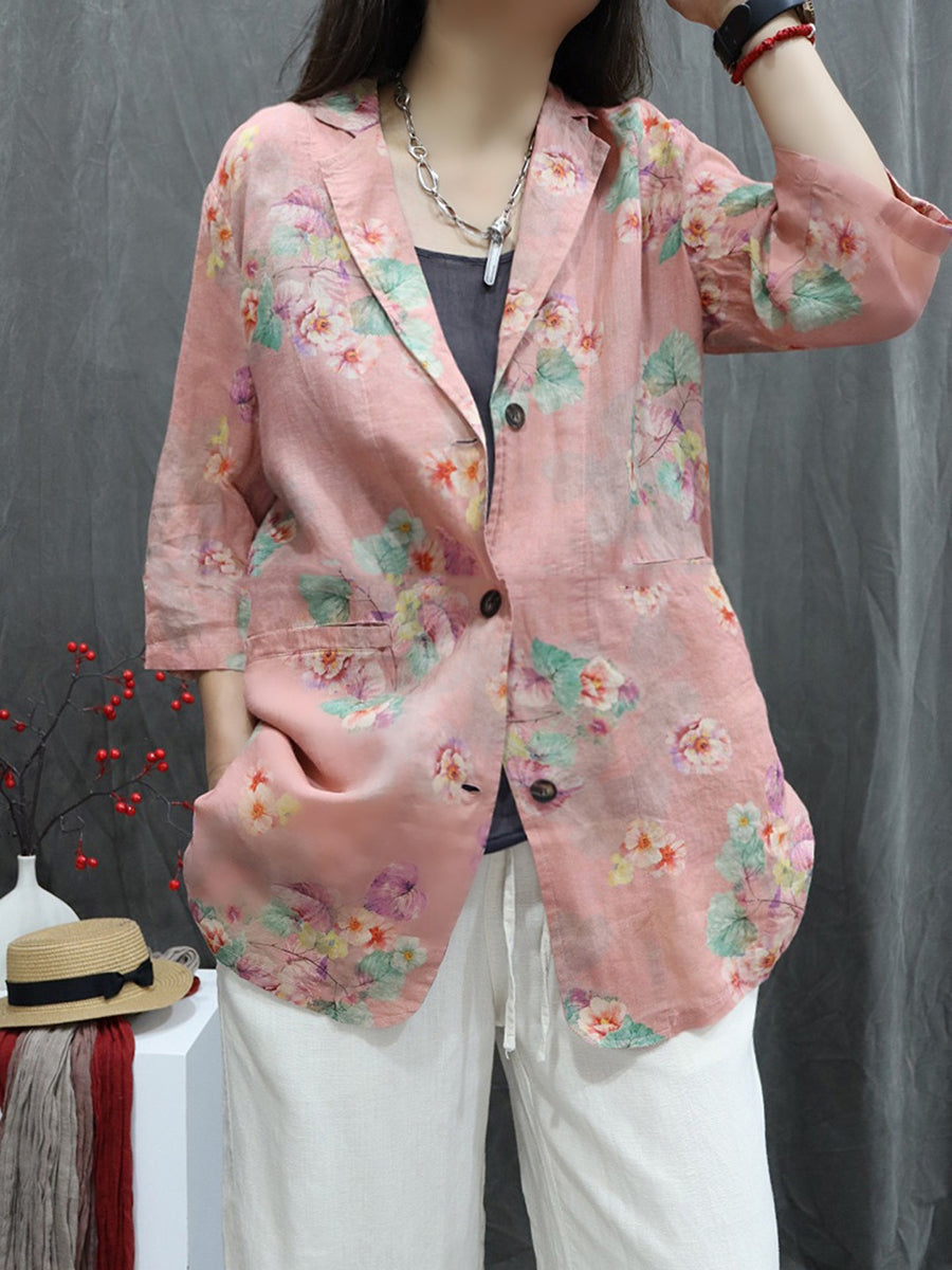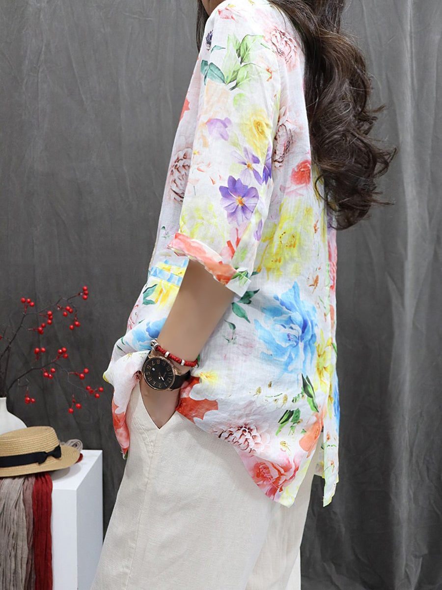 Casaco feminino de verão com estampa floral artística, 100% rami.