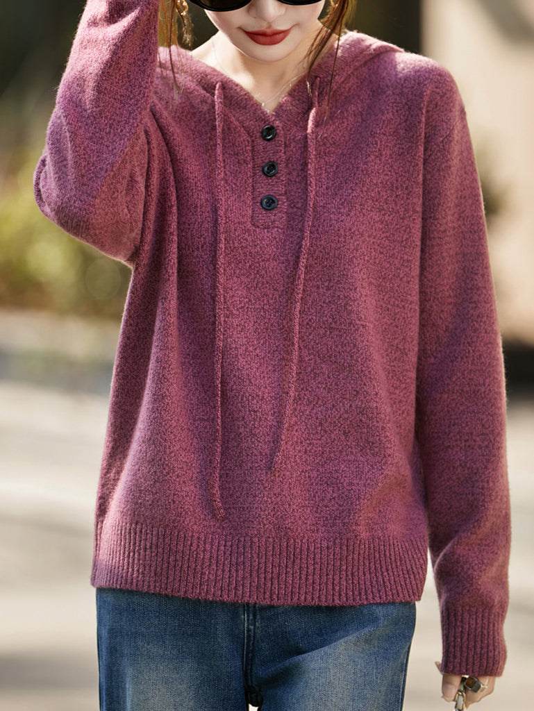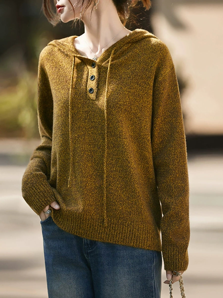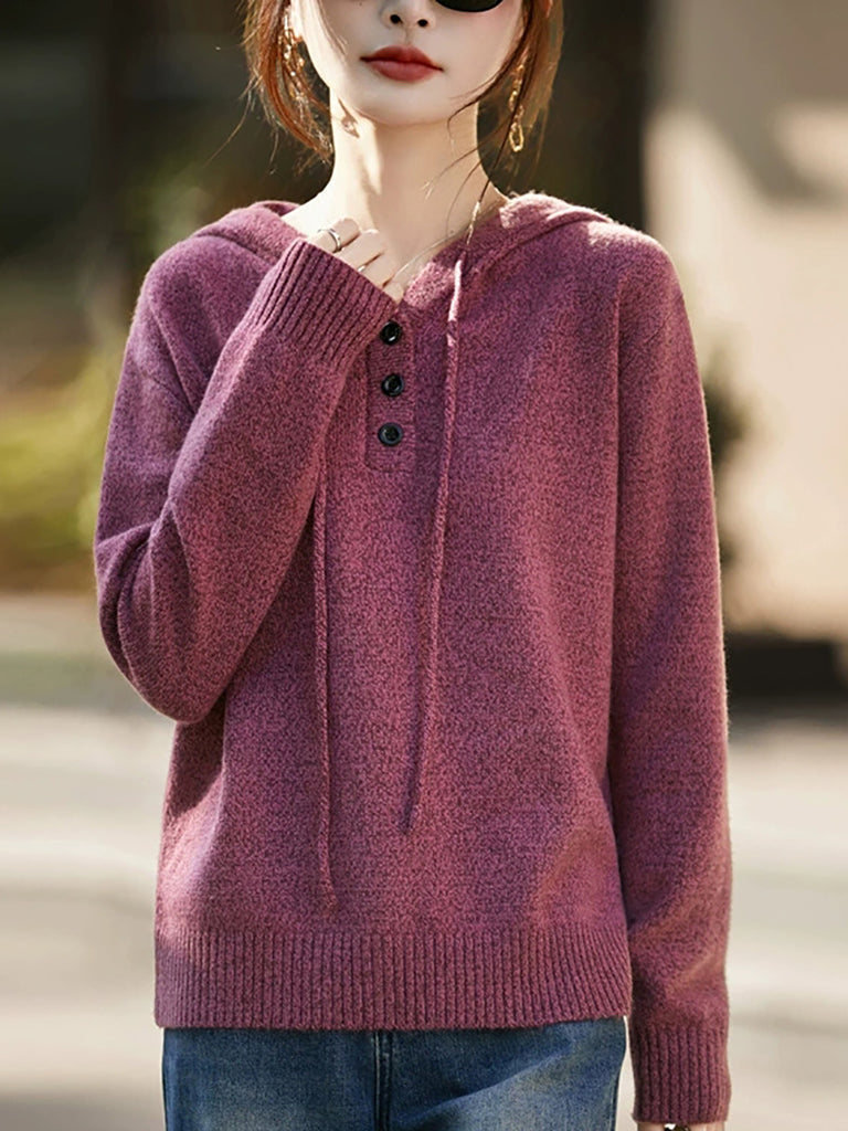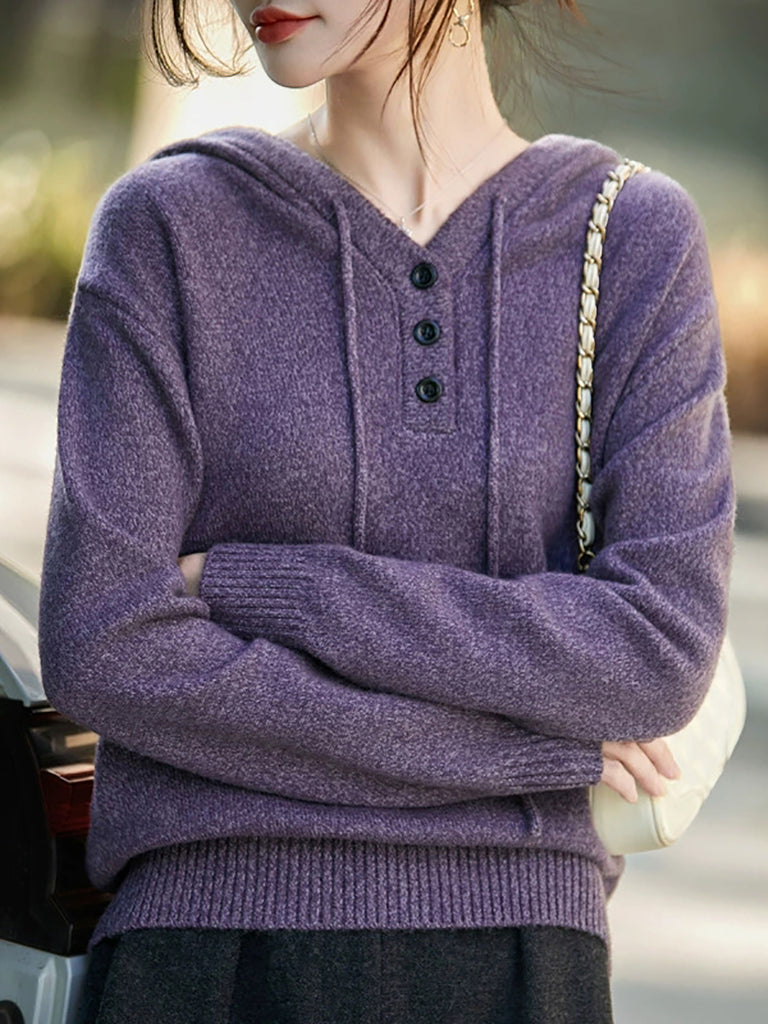 Suéter feminino com capuz em cores puras e estilo artístico para o outono.