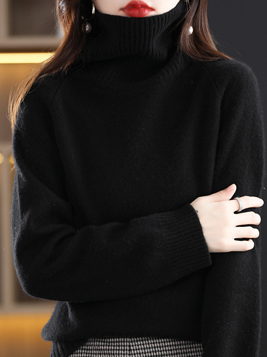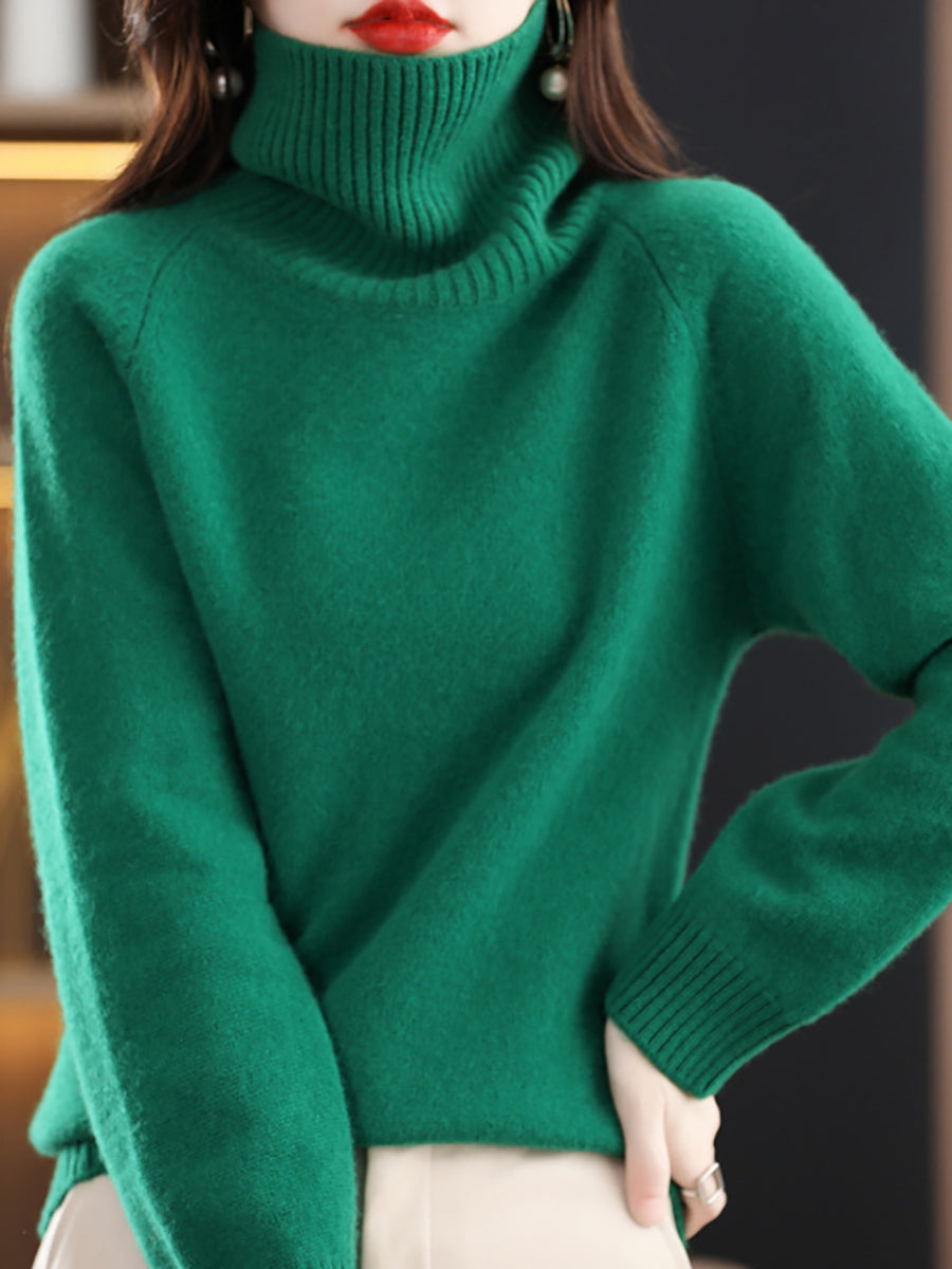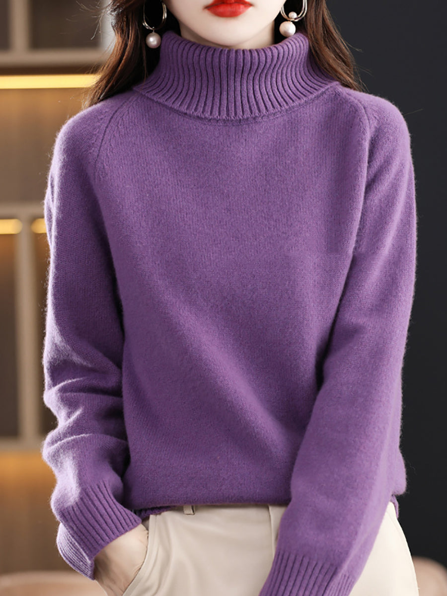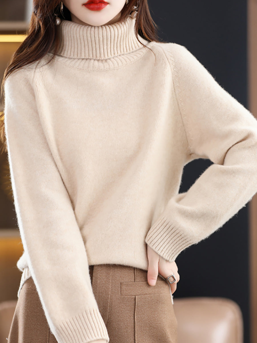 Suéter feminino de gola alta em cores lisas e estilo artístico para o outono.