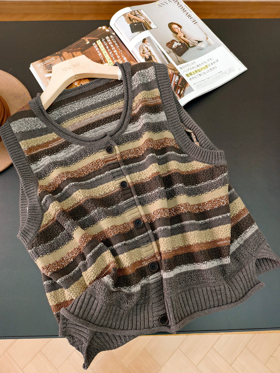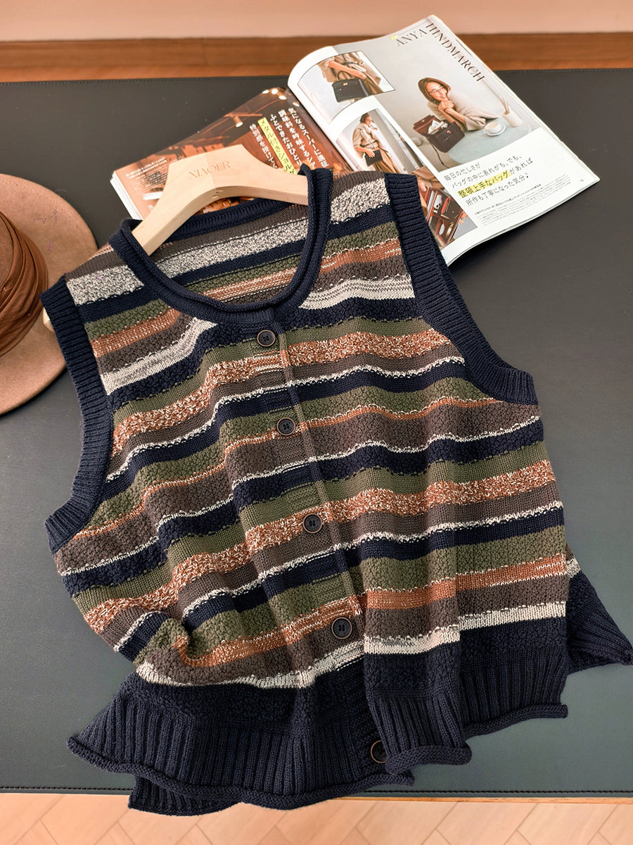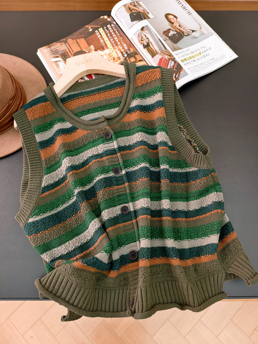 Colete feminino listrado artístico de gola redonda para o outono